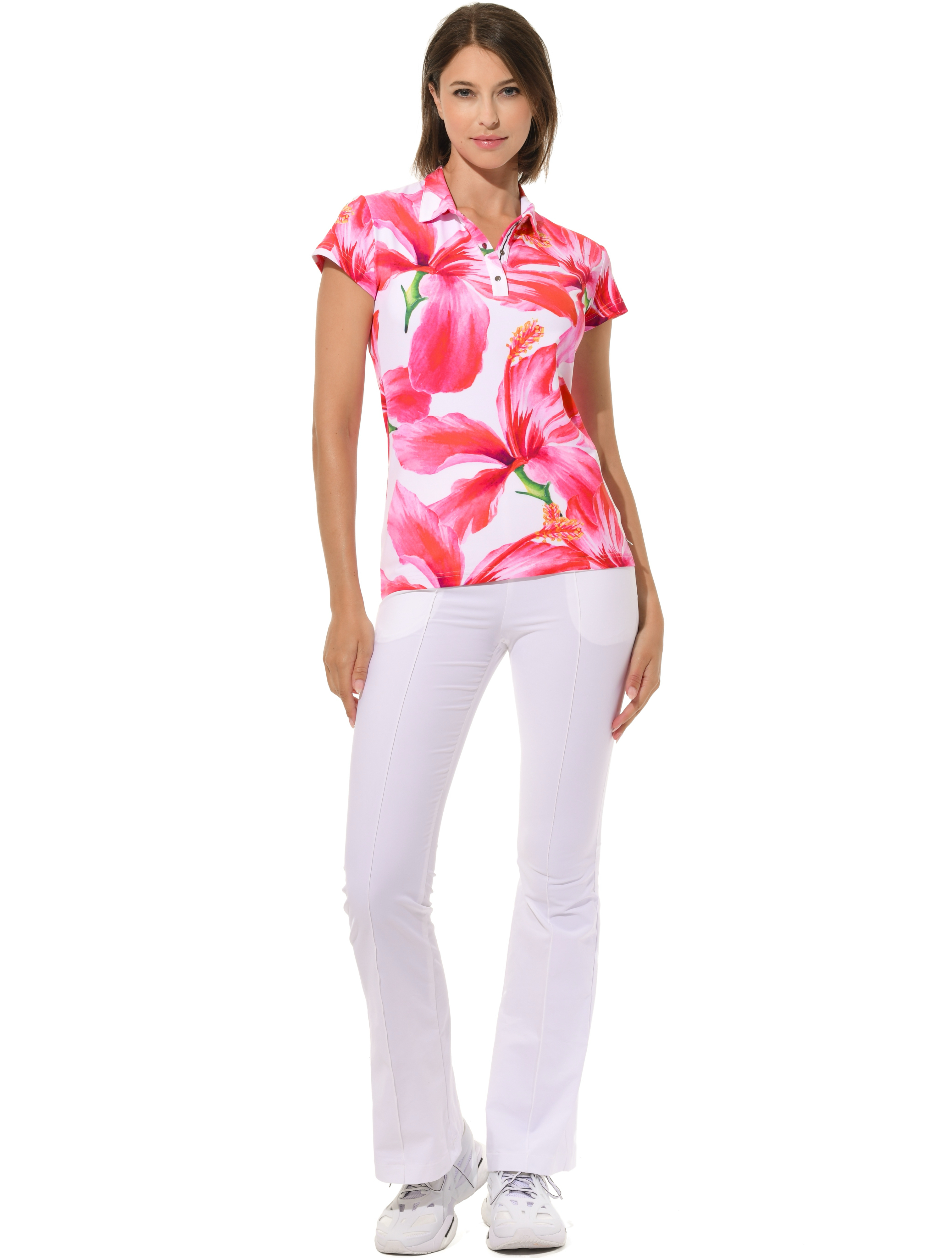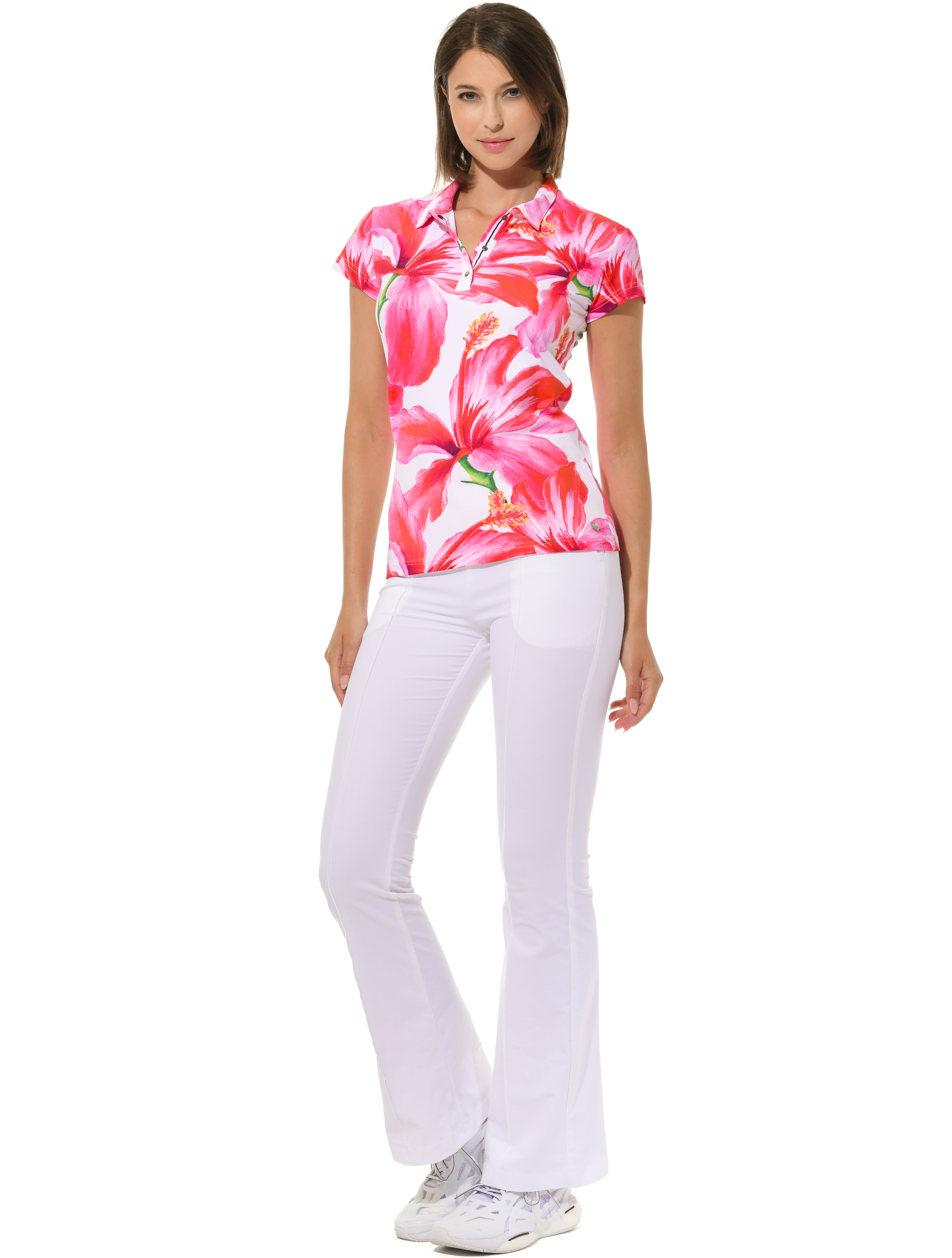 | bi-elastische, höher geschnittene lange Boot Cut Golfhose mit seitlichem Reißverschluss 54% Polyamid 37% Baumwolle 9% Elasthan Seitenlänge 110 cm |