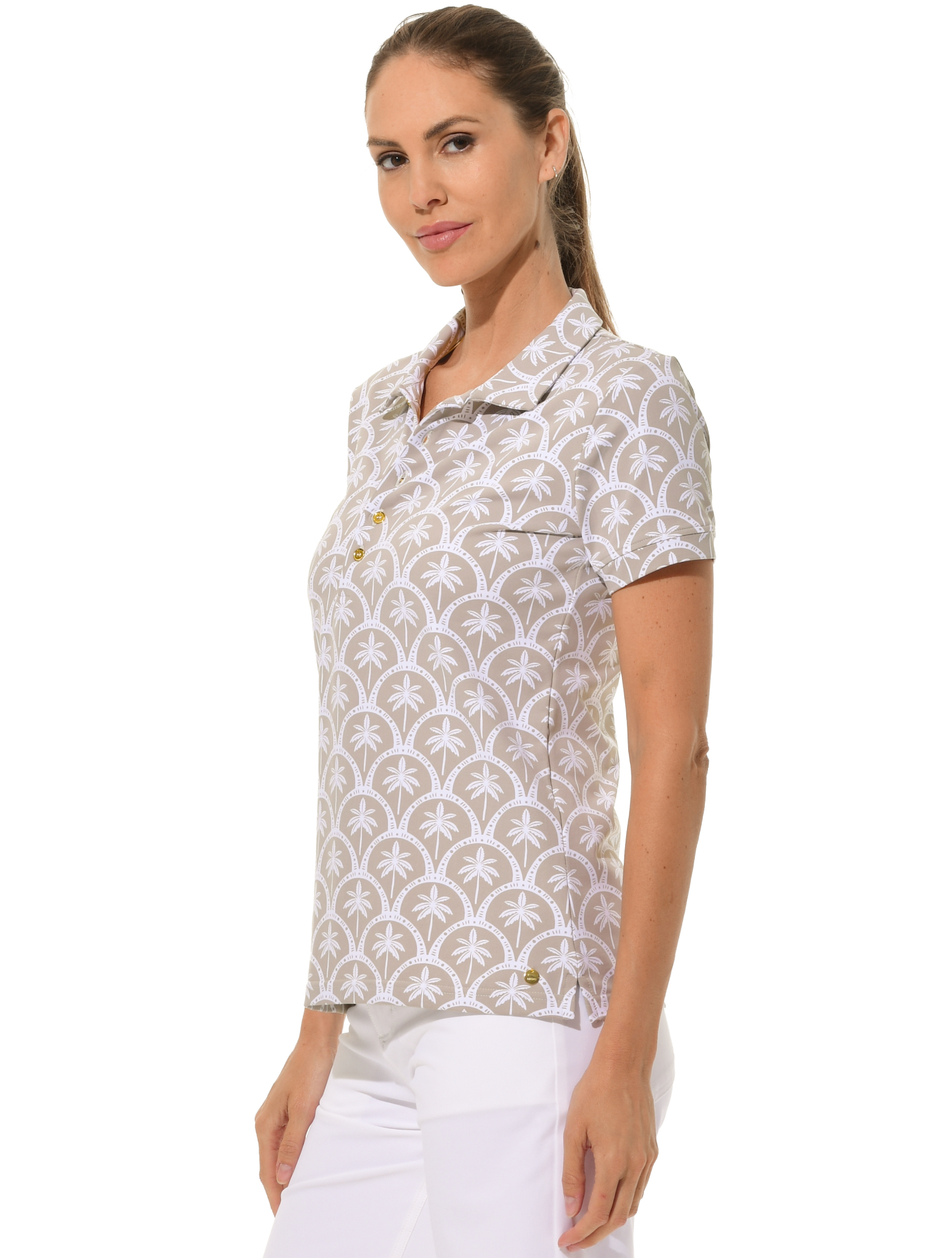 Barbados Print Golf Poloshirt light taupe
