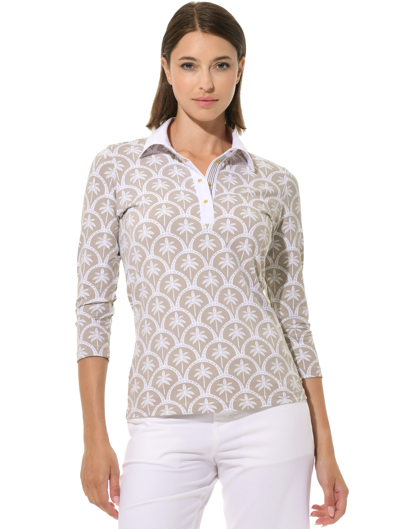 Barbados Print Golf Poloshirt light taupe