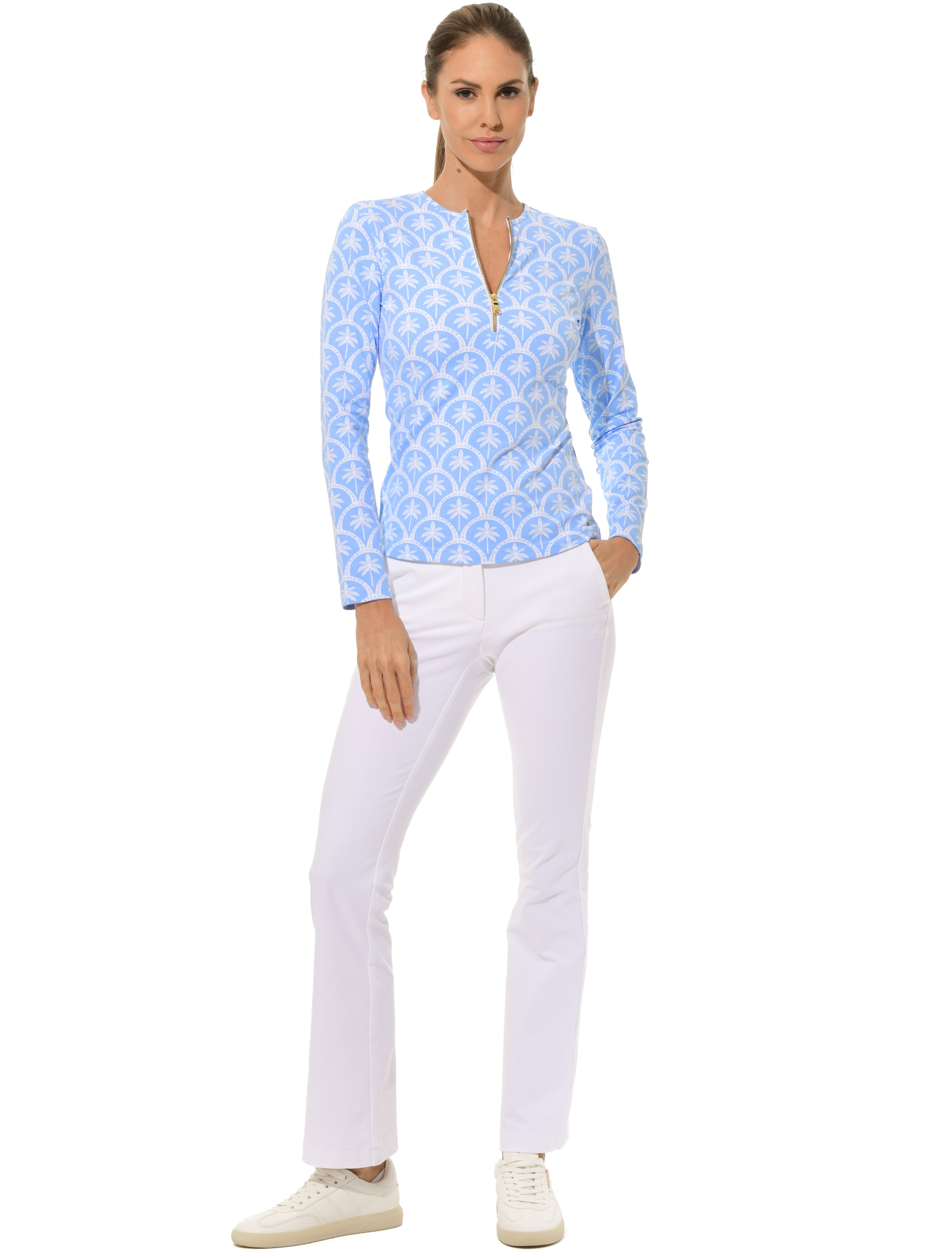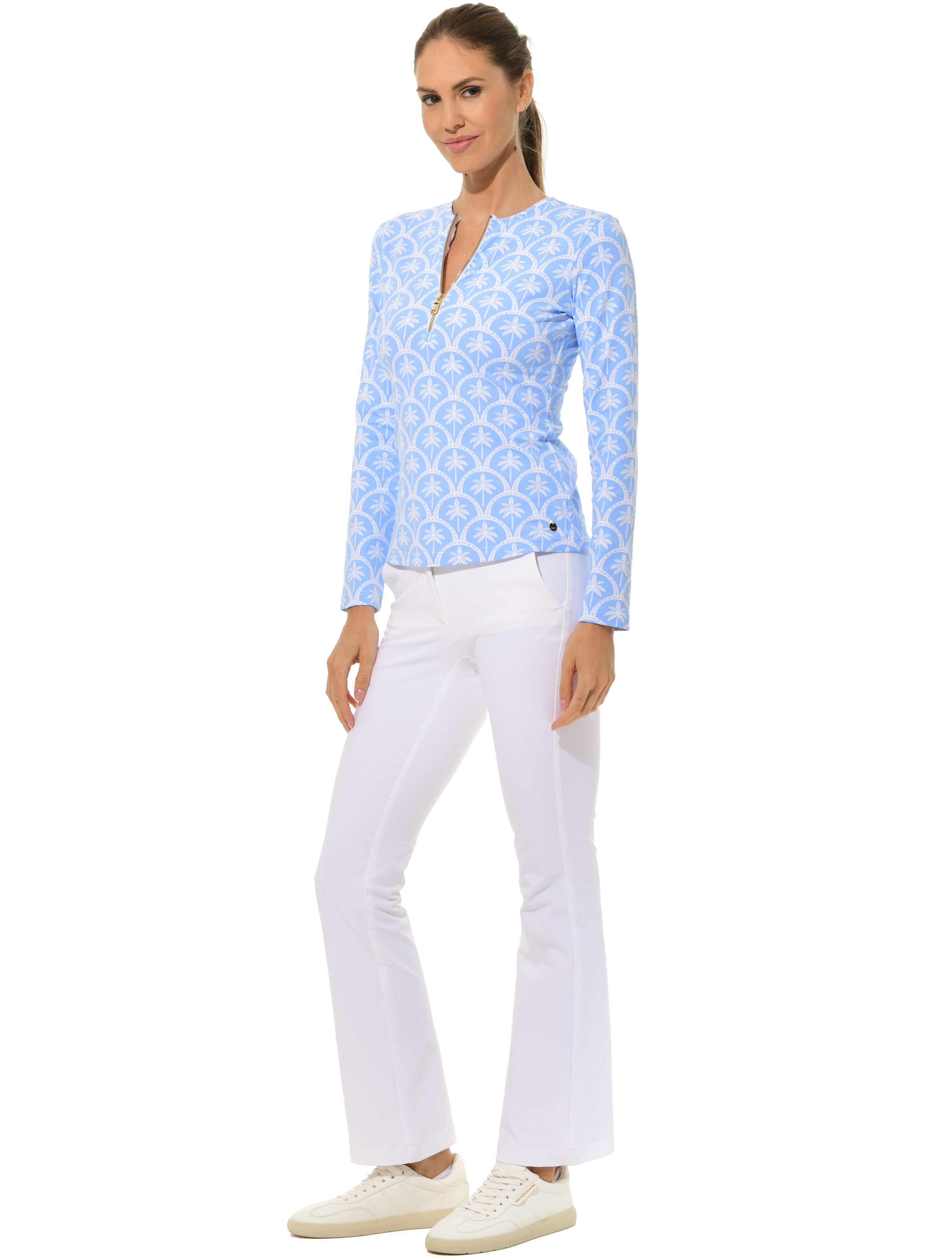Barbados Print Zip Longsleeve baby blue