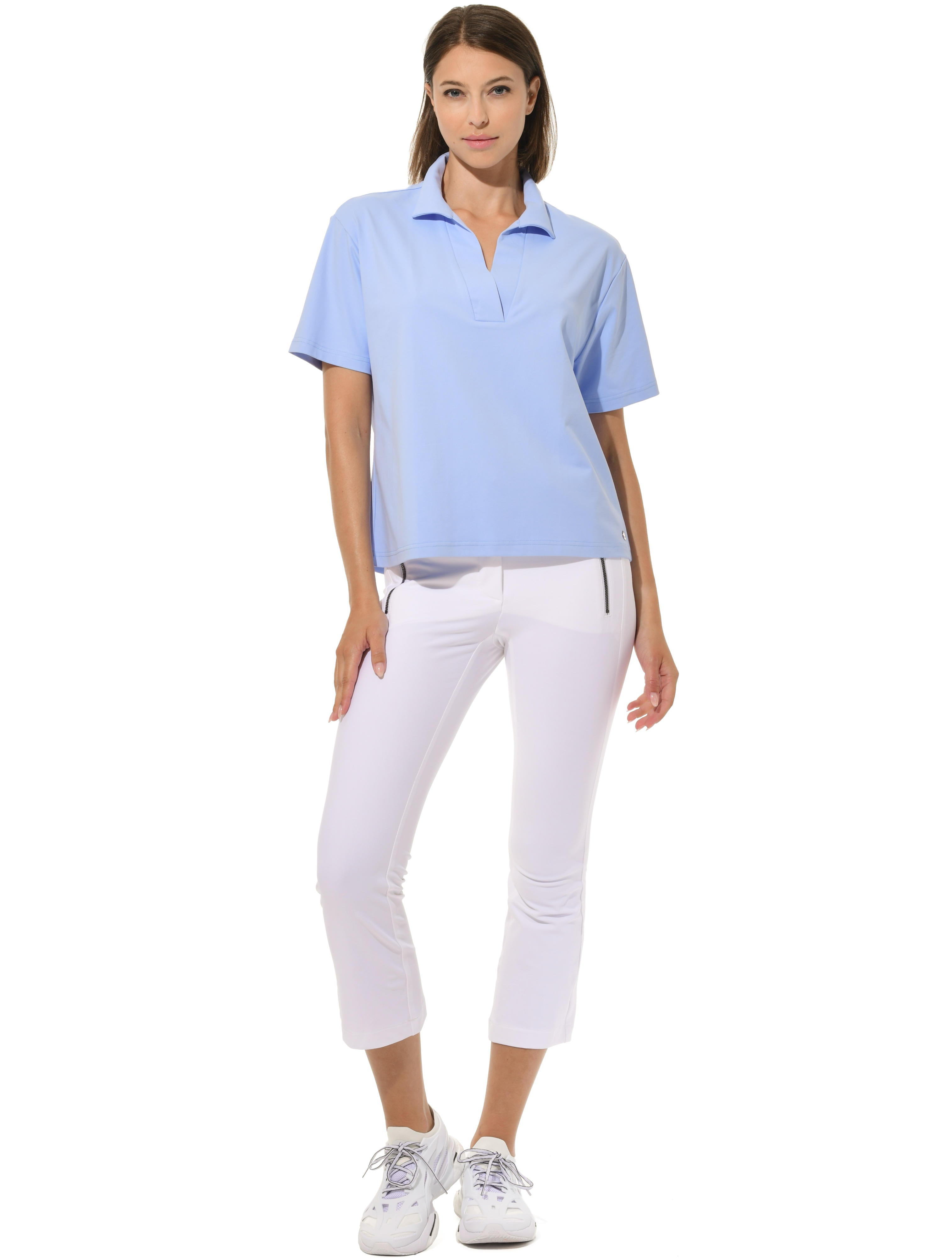| atmungsaktive Bi-Stretch Gabardine Boot Cut Golfhose in 7/8 Länge 47% Baumwolle 46% Polyamid 7% Elasthan Seitenlänge 88 cm |