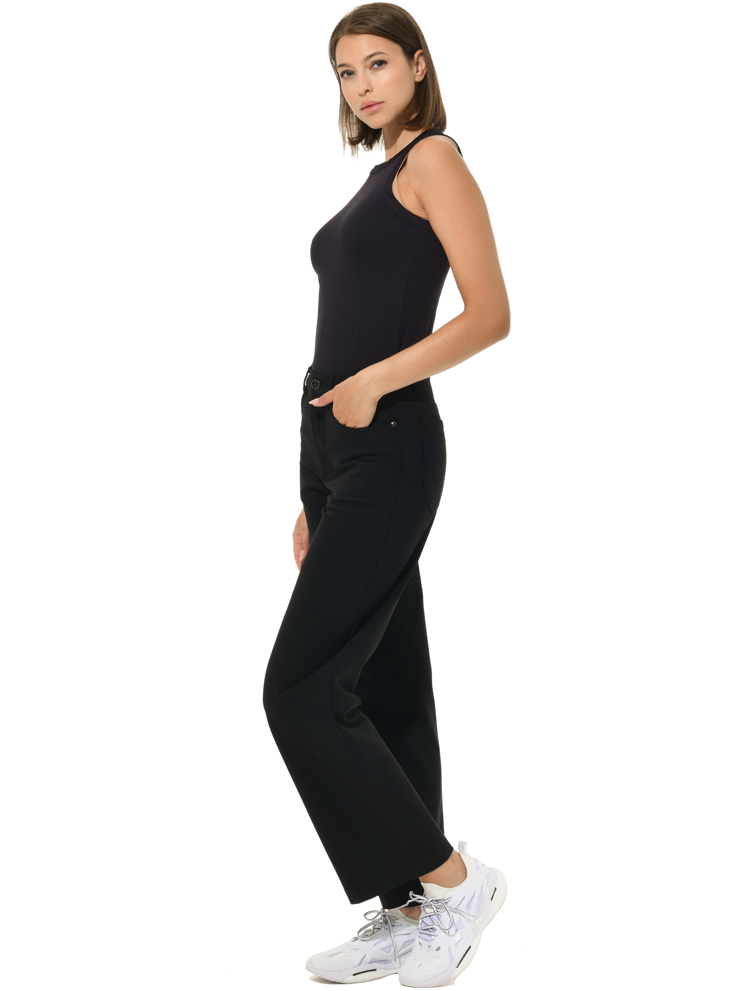 Bi-Stretch Gabardine Wide Leg Pants black