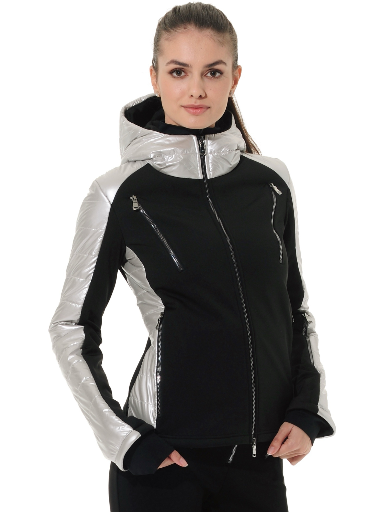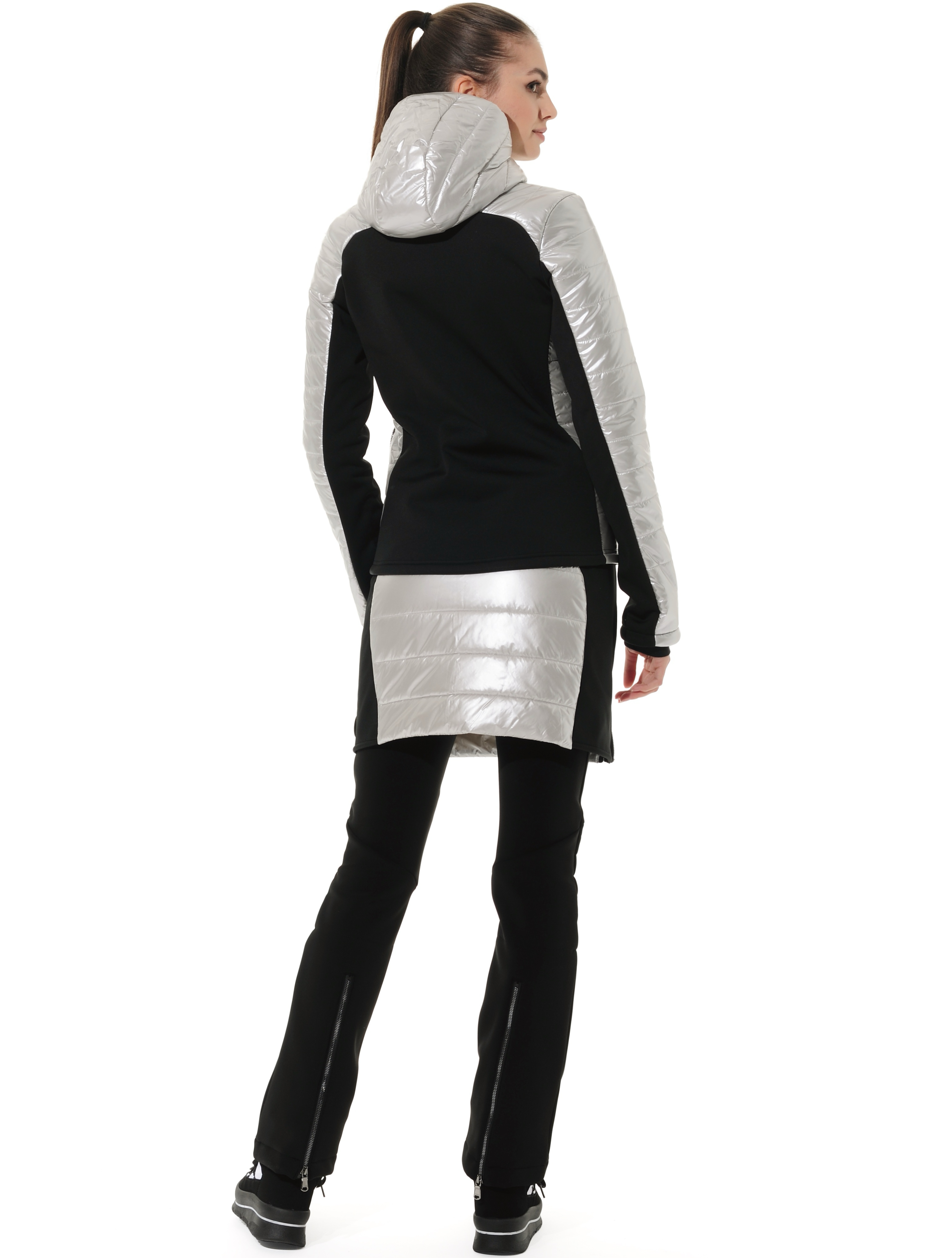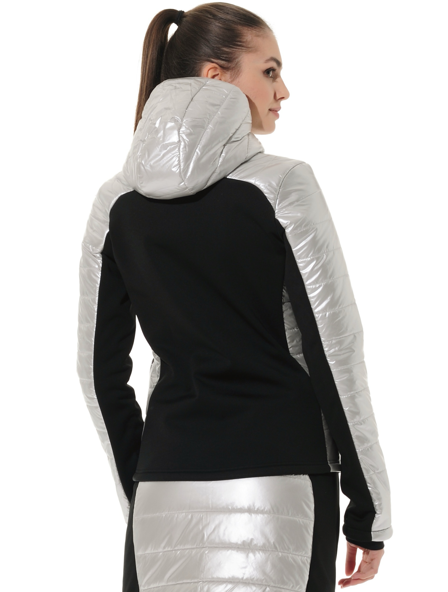 | wärmende, atmungsaktive Power Stretch Hybridjacke mit wasserdichter Klimamembrane wattierte Kapuze gesteppte Webwareneinsätze weiche Meryl Ärmelbündchen fünf Reißverschlusstaschen 70% Polyamid 20% Polyester 10% Polyurethan Länge 62 cm (Größe 36) |