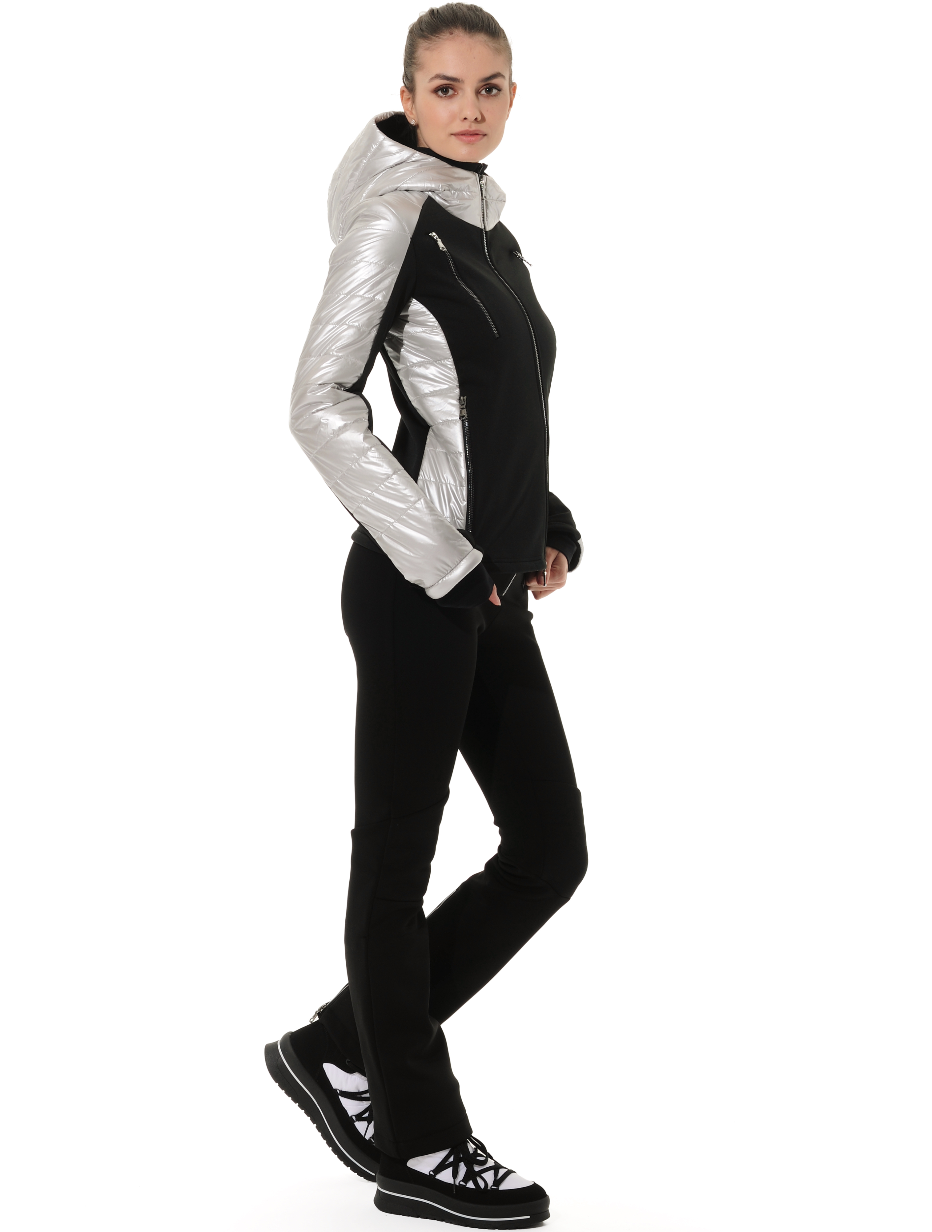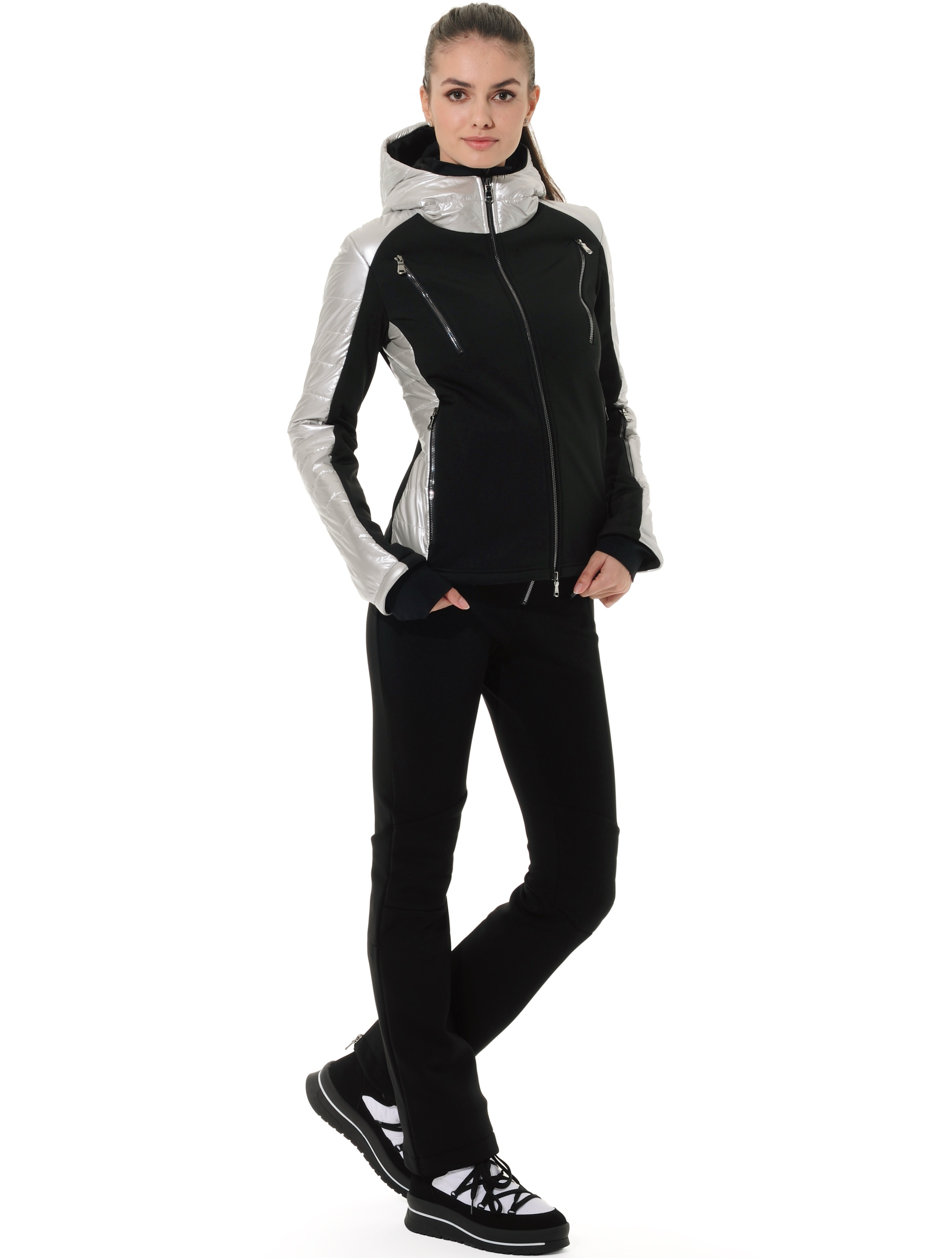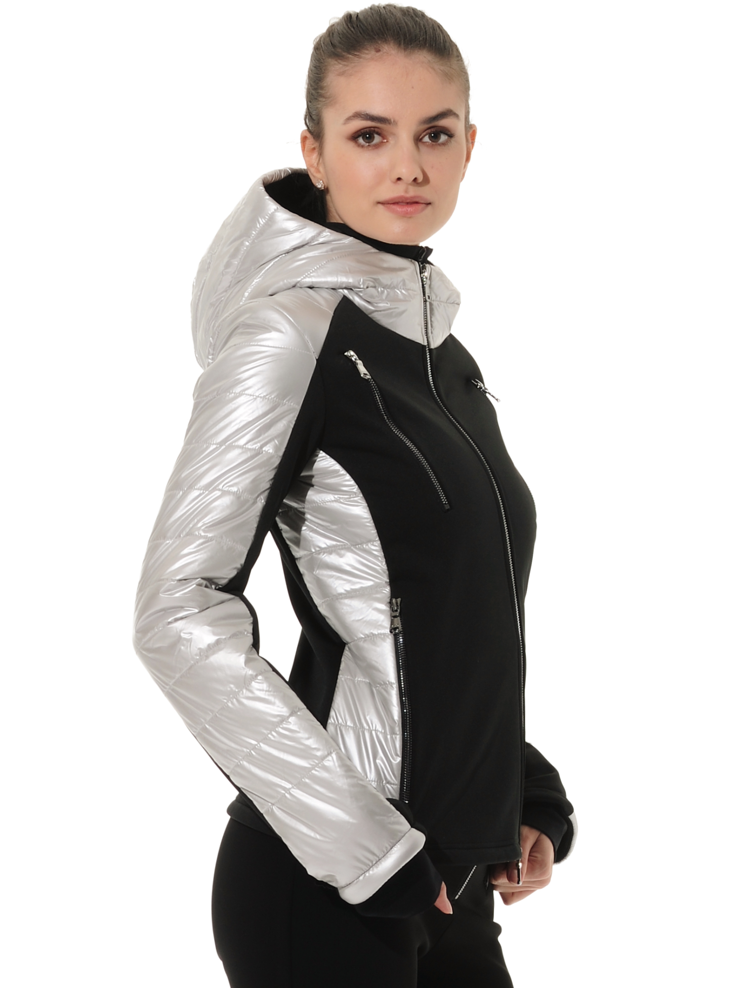 | wärmende, atmungsaktive Power Stretch Hybridjacke mit wasserdichter Klimamembrane wattierte Kapuze gesteppte Webwareneinsätze weiche Meryl Ärmelbündchen fünf Reißverschlusstaschen 70% Polyamid 20% Polyester 10% Polyurethan Länge 62 cm (Größe 36) |
