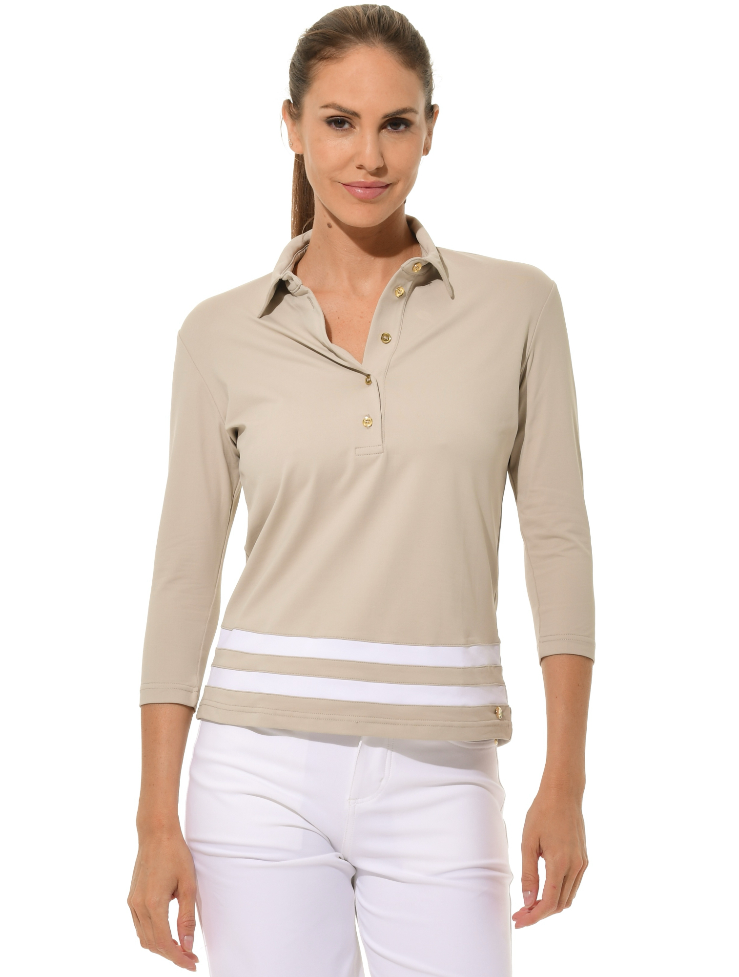 3/4 Arm Jersey Golf Poloshirt mit Knopfleiste 90% Polyamid 10% Elasthan Länge 65 cm (Größe 36) |