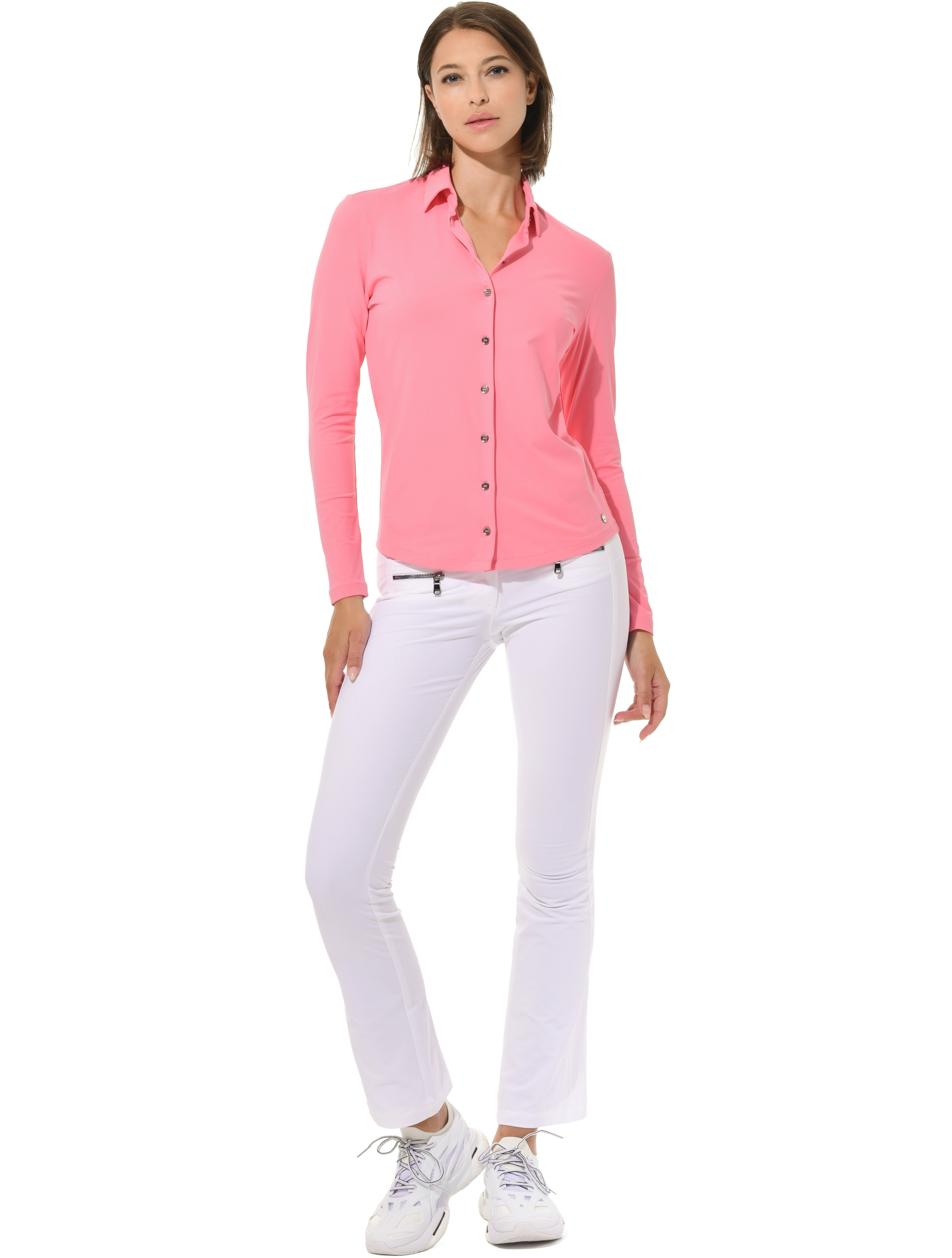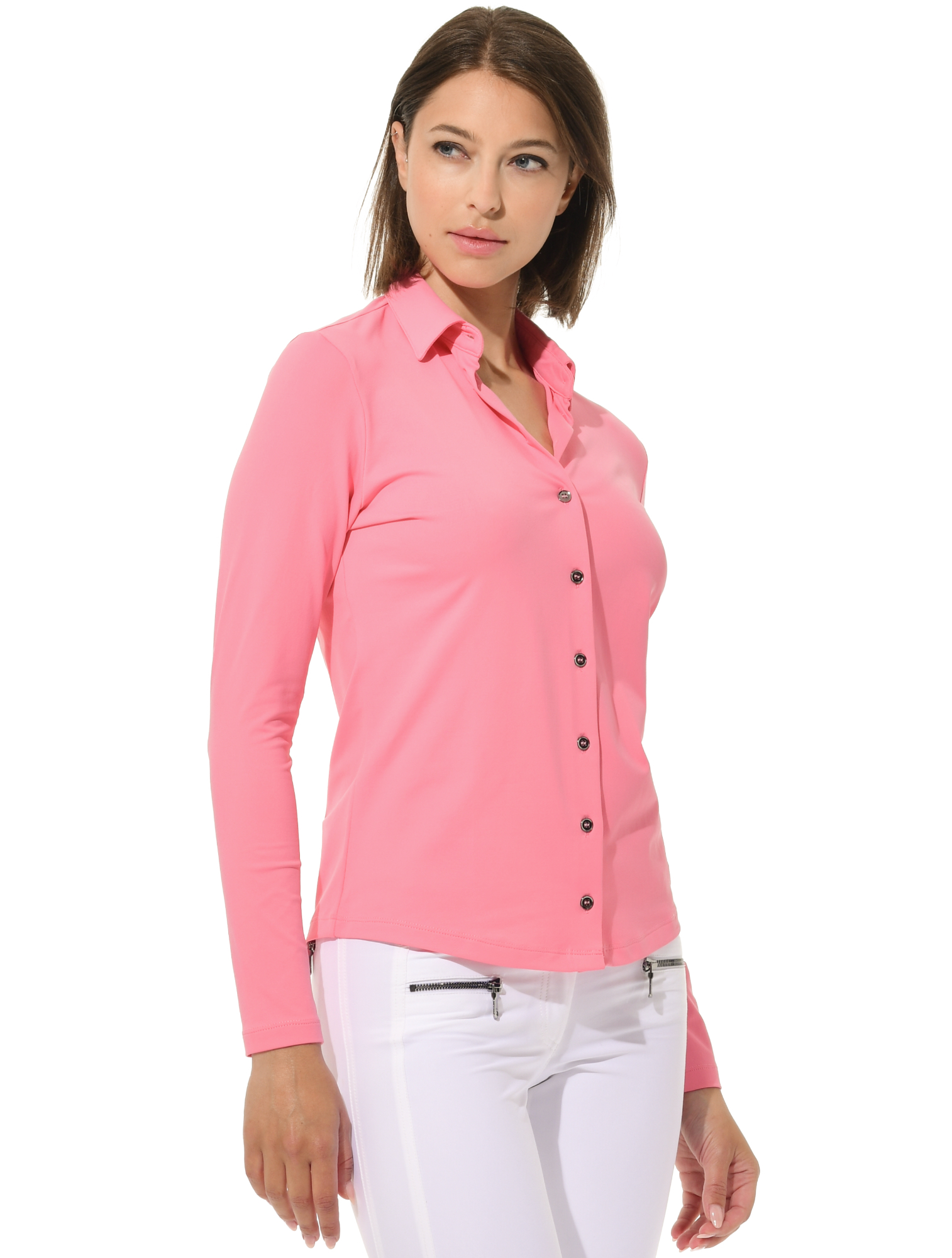 Langarm Button Down Jersey Golf Poloshirt 90% Polyamid 10% Elasthan Länge 65 cm (Größe 36) |