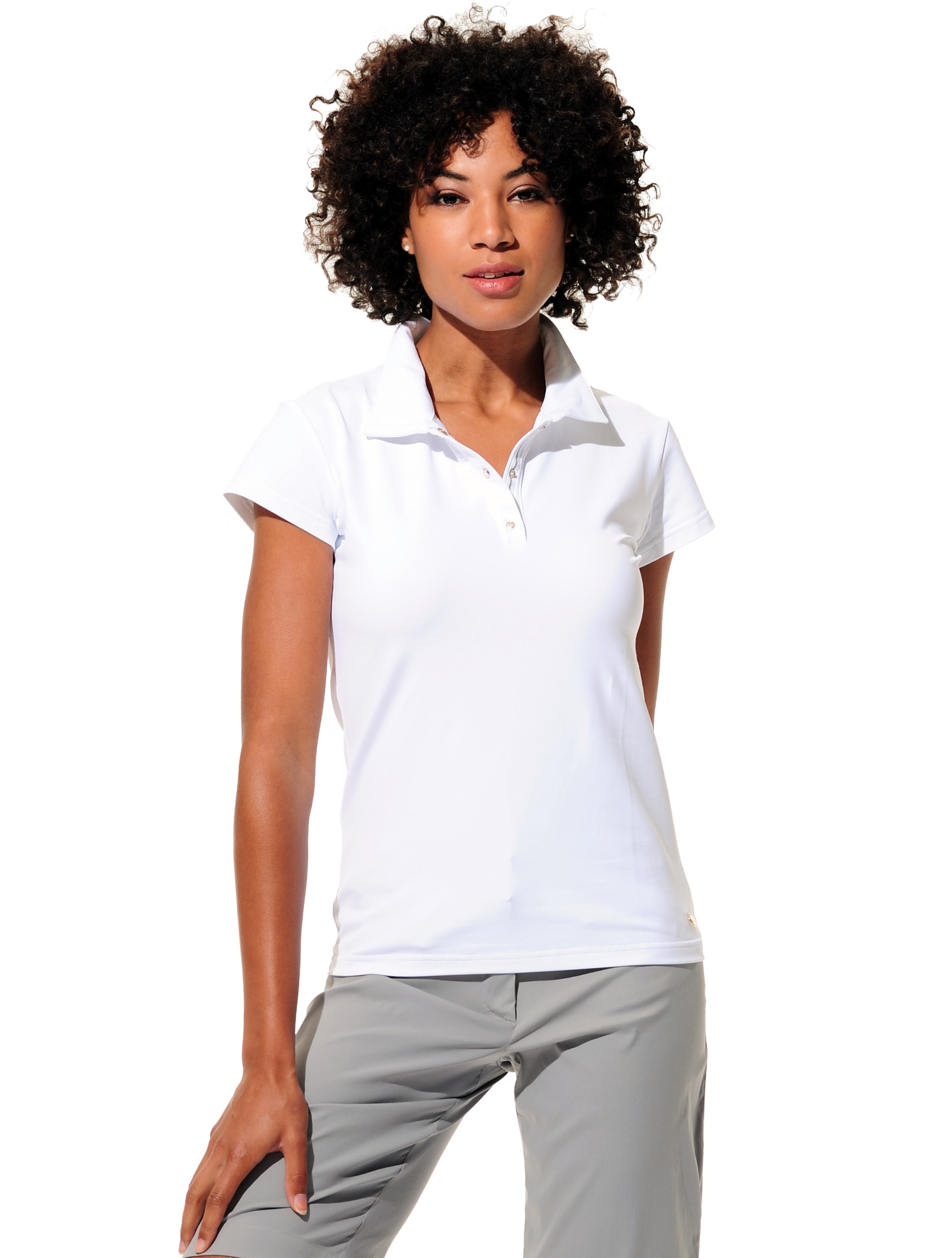 Cap Sleeve Meryl Poloshirt mit Swarovski® #PEACE 90% Polyamid 10% Elasthan Länge 62 cm (Größe 36) | ![]() |