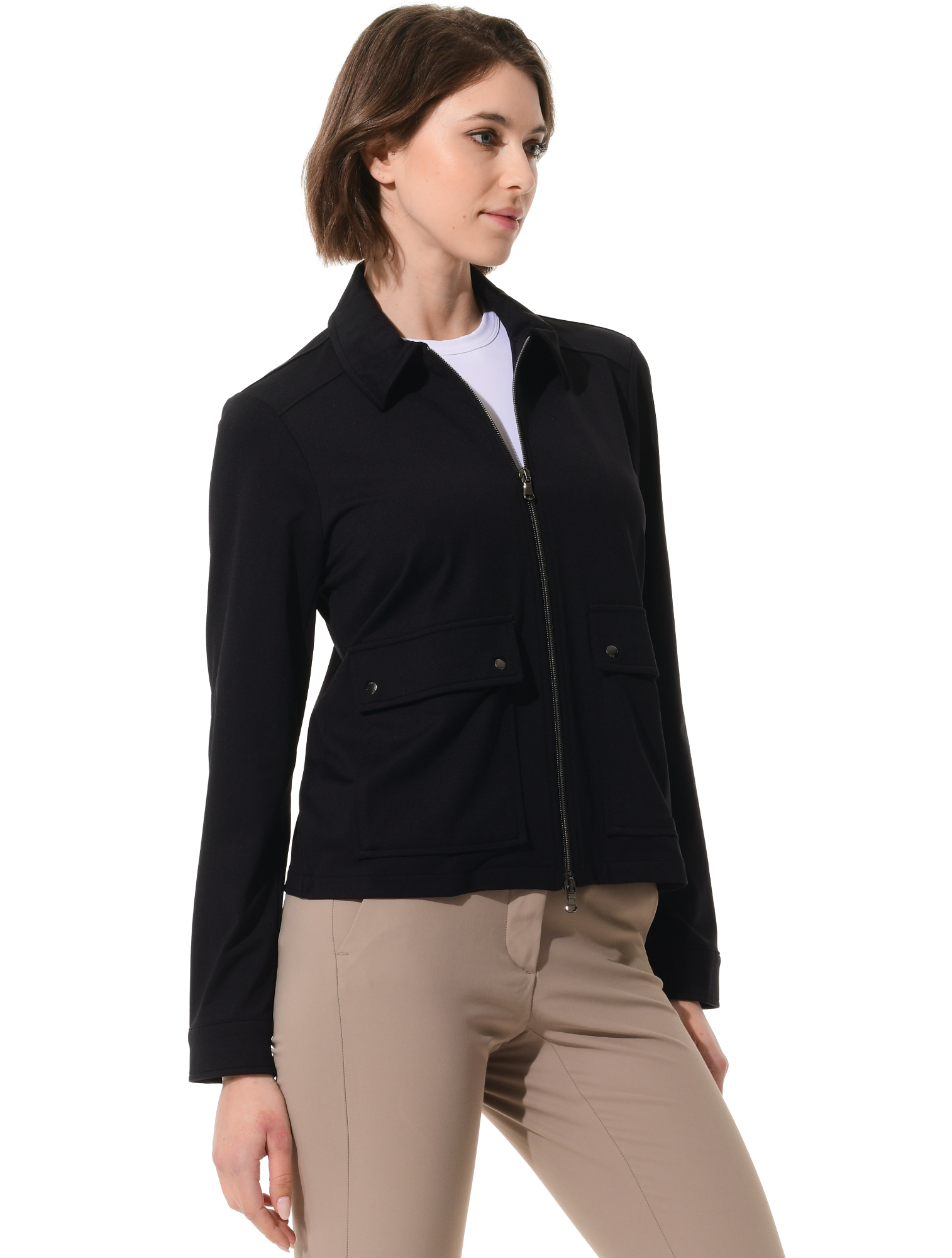 atmungsaktive Jersey Jacke mit aufgesetzten Taschen 90% Polyamid 10% Elasthan Länge 58 cm (Größe 36) | ![]() |