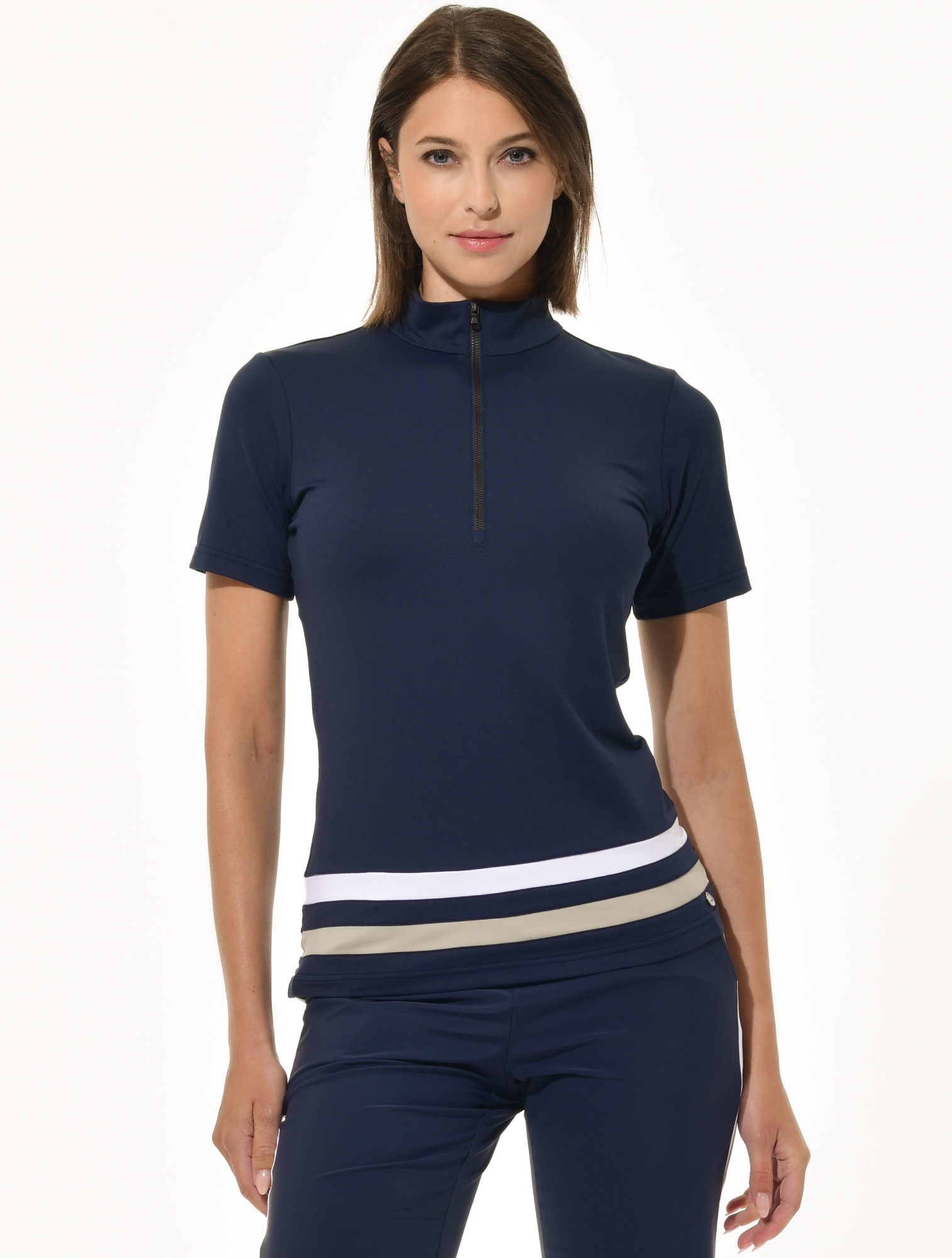 atmungsaktives Halbarm Jersey Zip Poloshirt mit Stehkragen