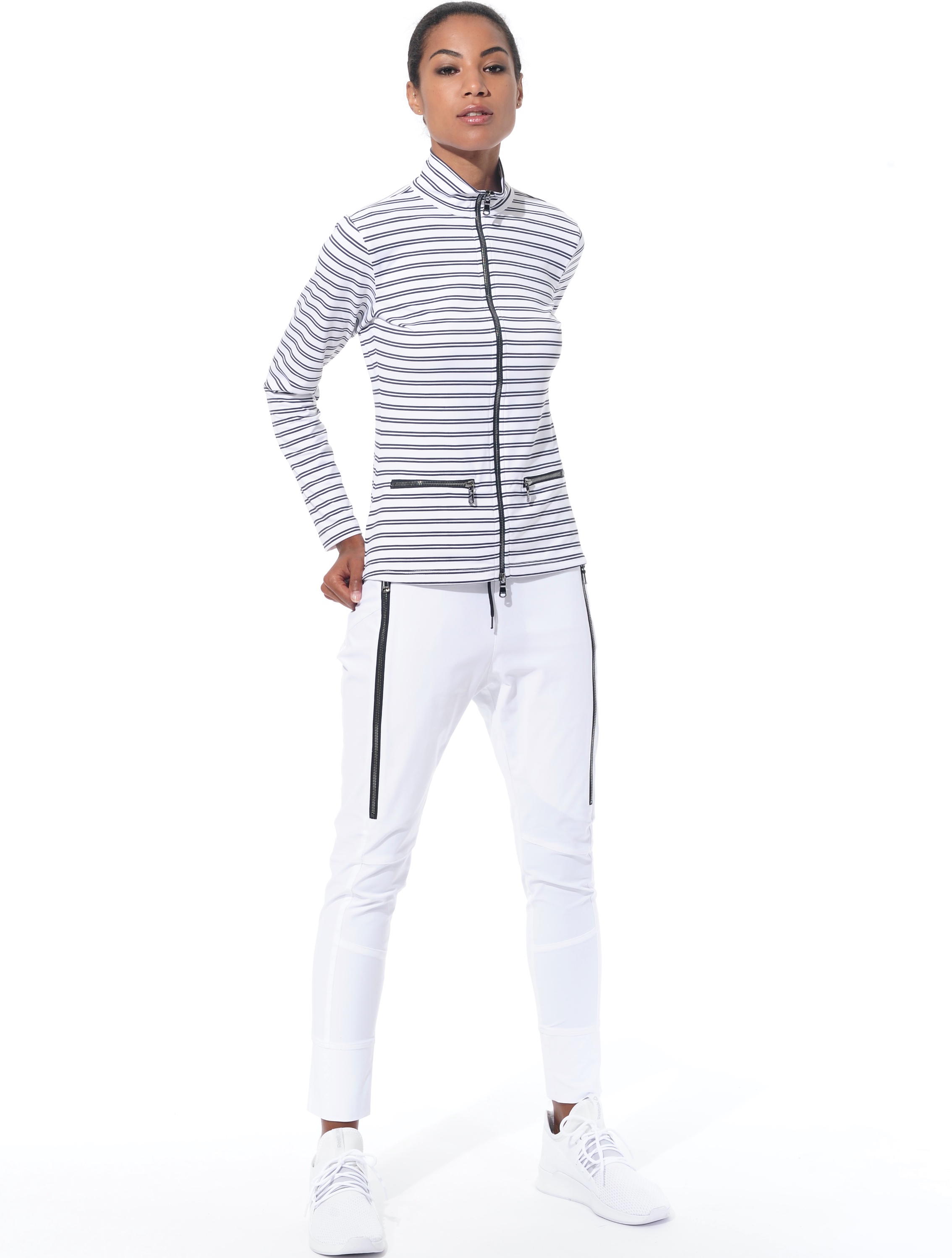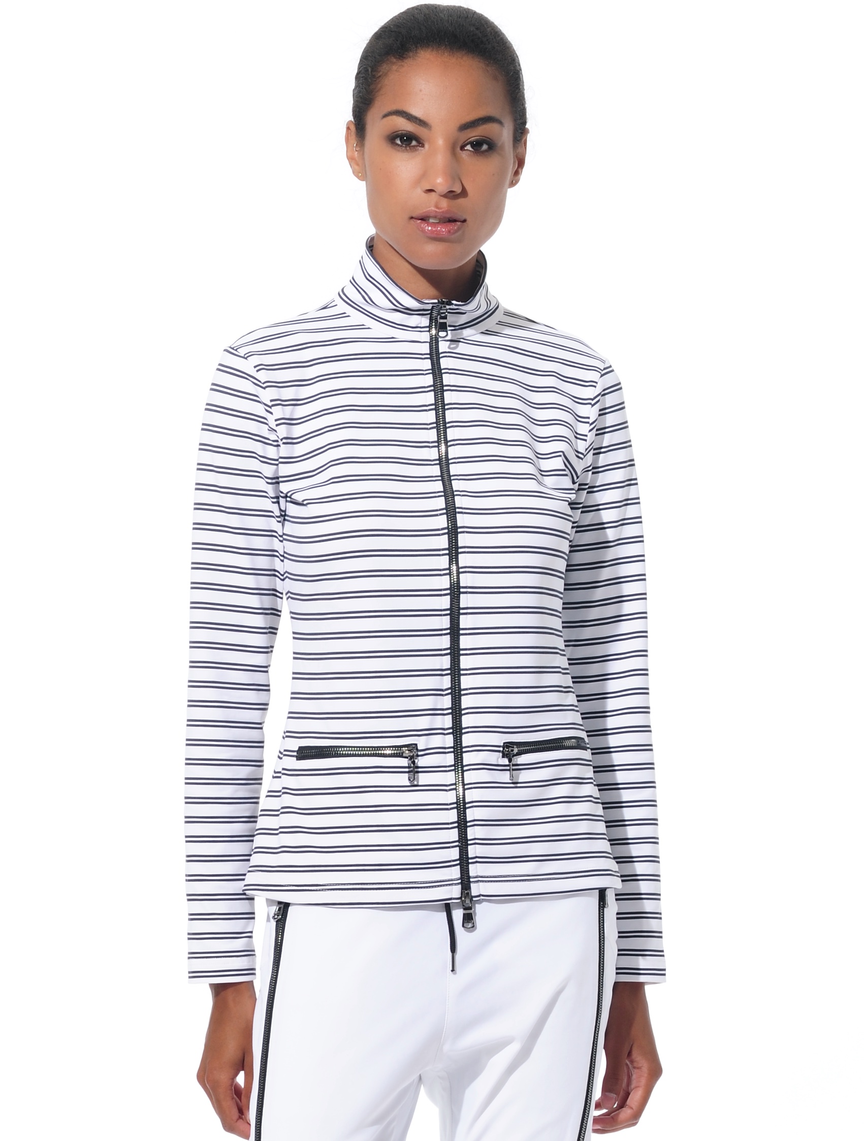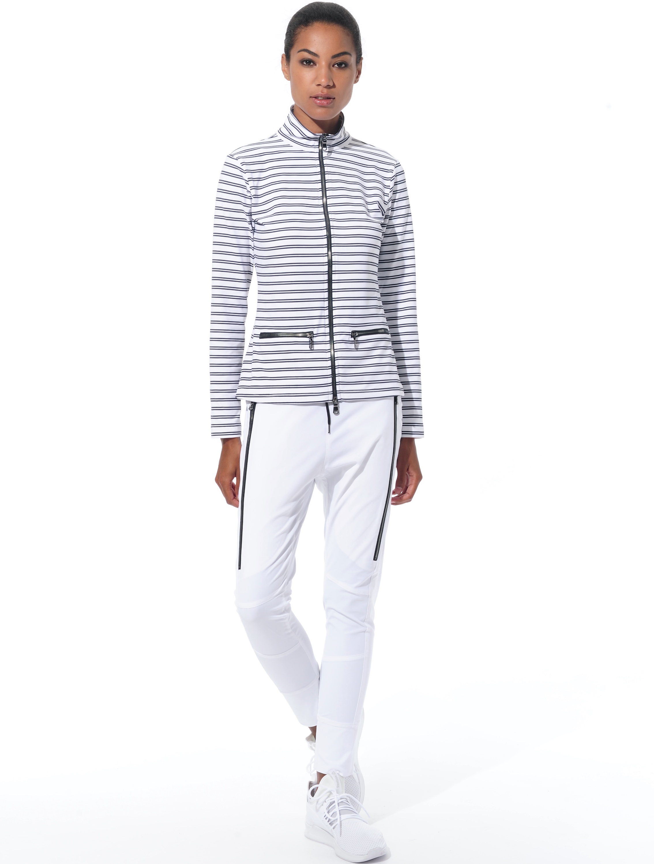 | atmungsaktive Meryl Print Sweatjacke mit Reißverschlusstaschen 90% Polyamid 10% Elasthan Länge 62 cm (Größe 36) |