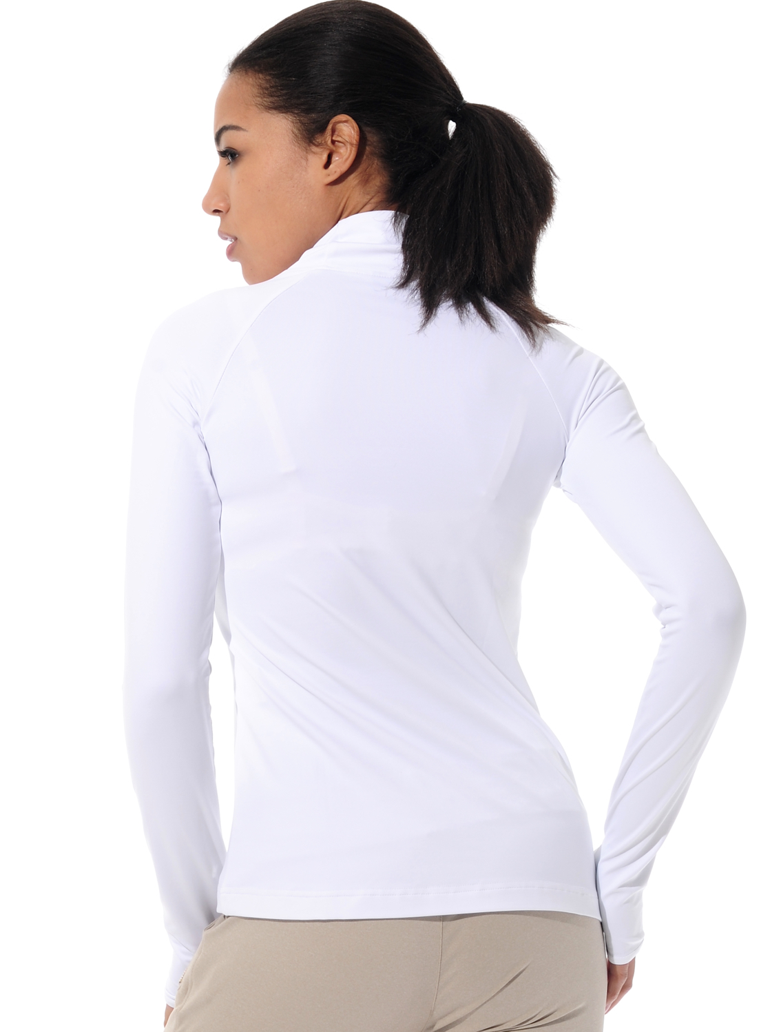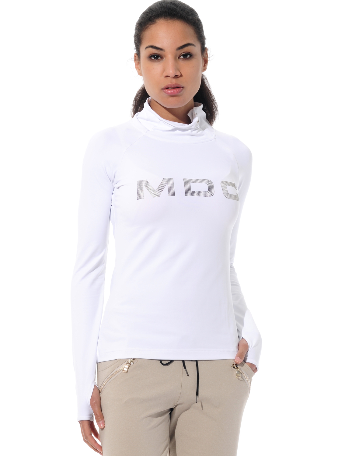 atmungsaktives Meryl Langarmshirt mit seitlichem Reißverschluss, Daumenlöchern und Swarovski® #MDC 90% Polyamid 10% Elasthan Länge 63 cm (Größe 36) | ![]() |