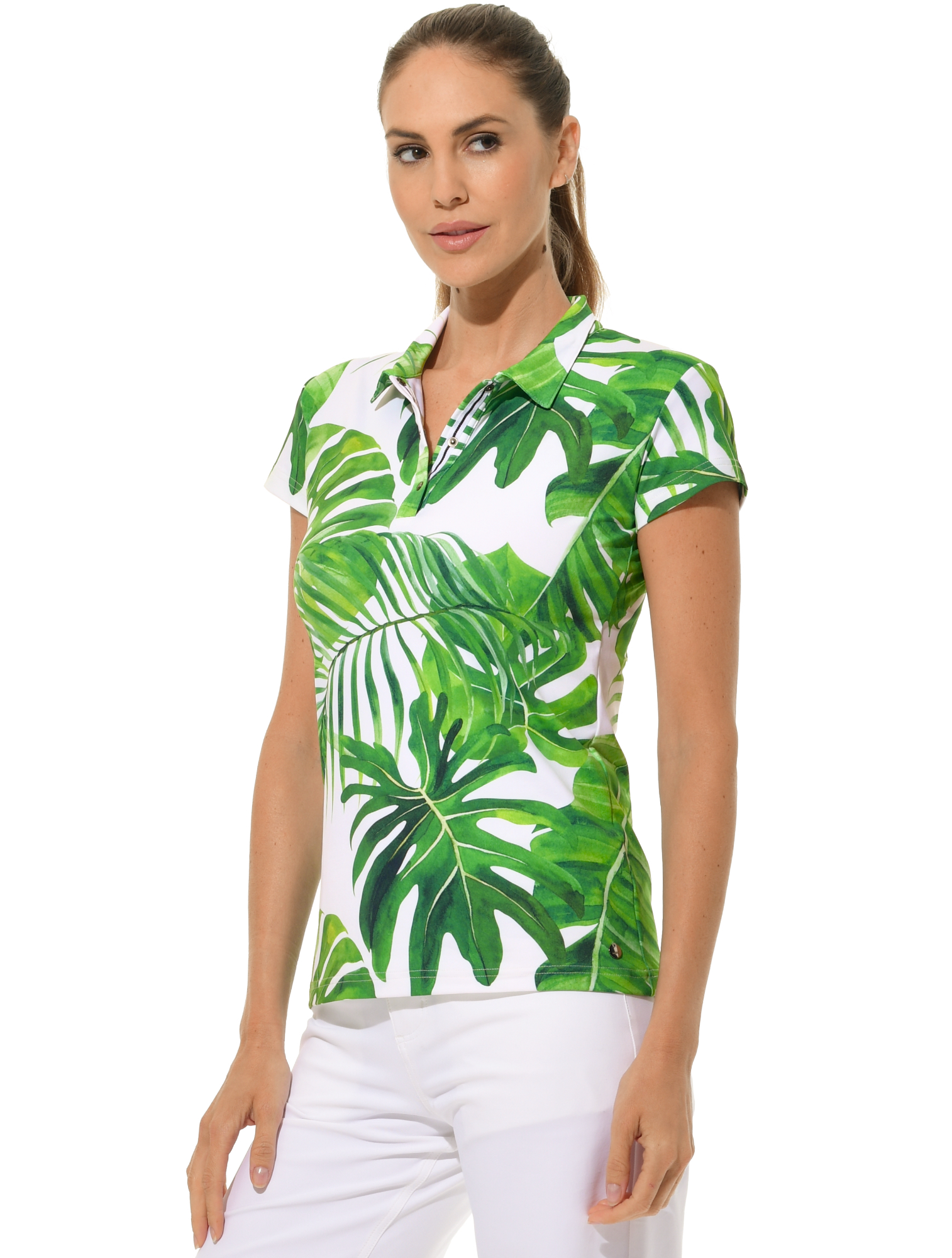 | Cap Sleeve Jersey Print Golf Poloshirt 90% Polyamid 10% Elasthan Länge 62 cm (Größe 36) |