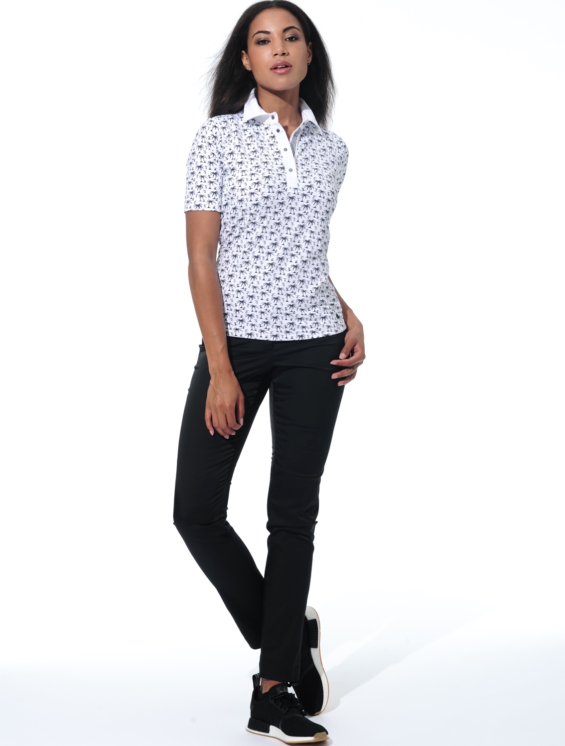 Palm Trees Print Polo white/black