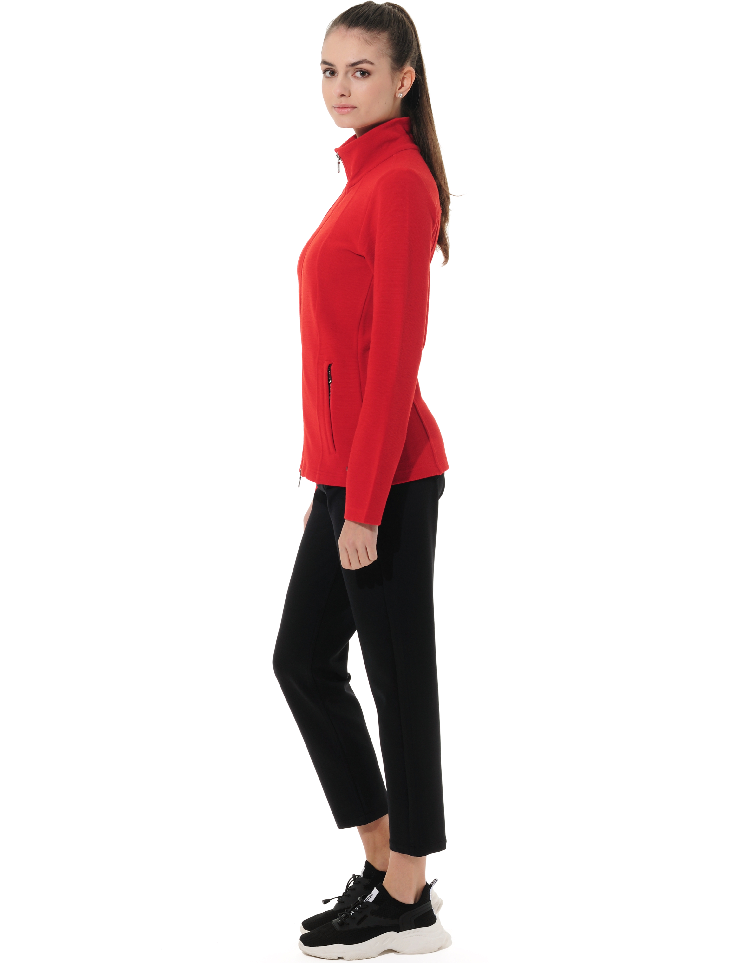 wärmende Viskose Ottoman Rib Jersey Full Zip Jacke mit Reißverschlusstaschen 66% Viskose 18% Polyester 13% Polyamid 3% Elasthan Länge 66 cm (Größe 36) |