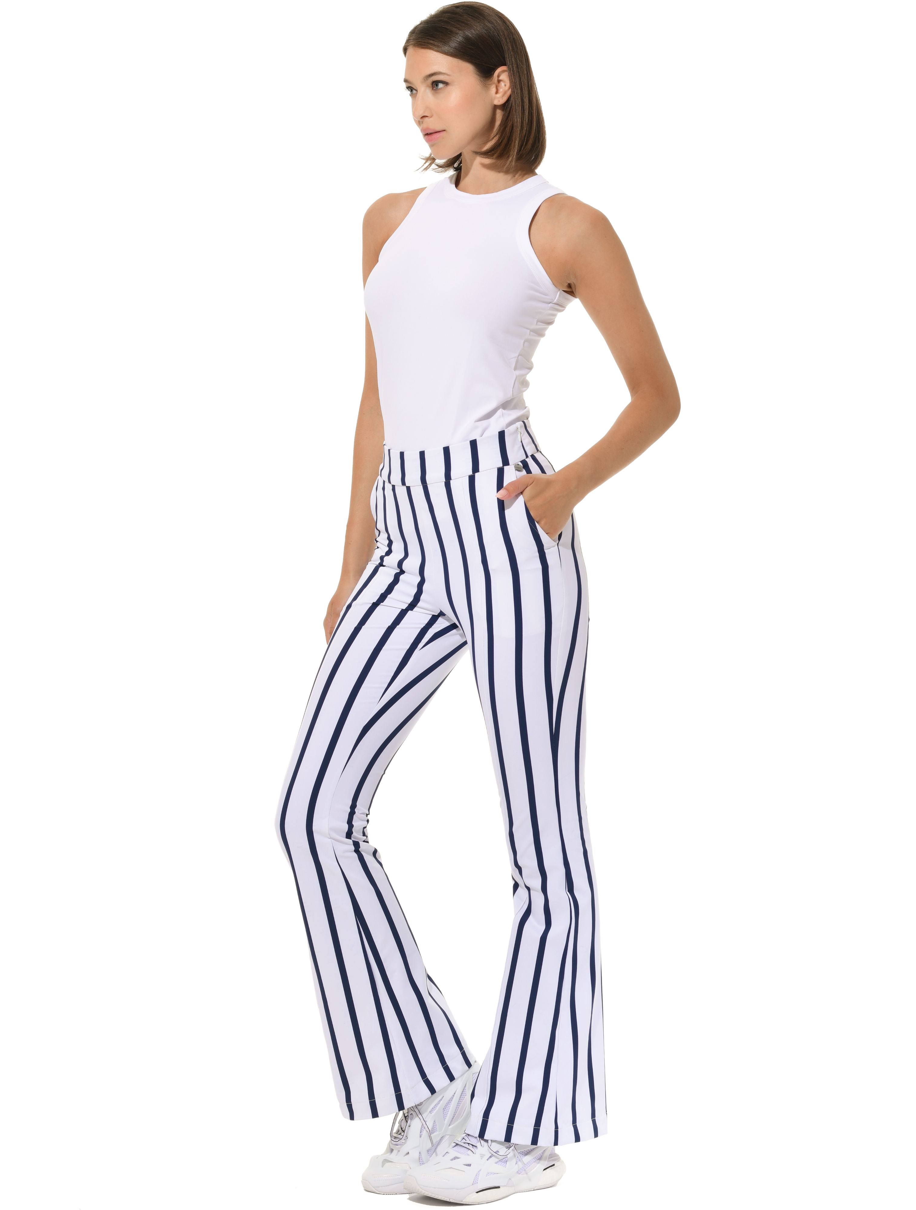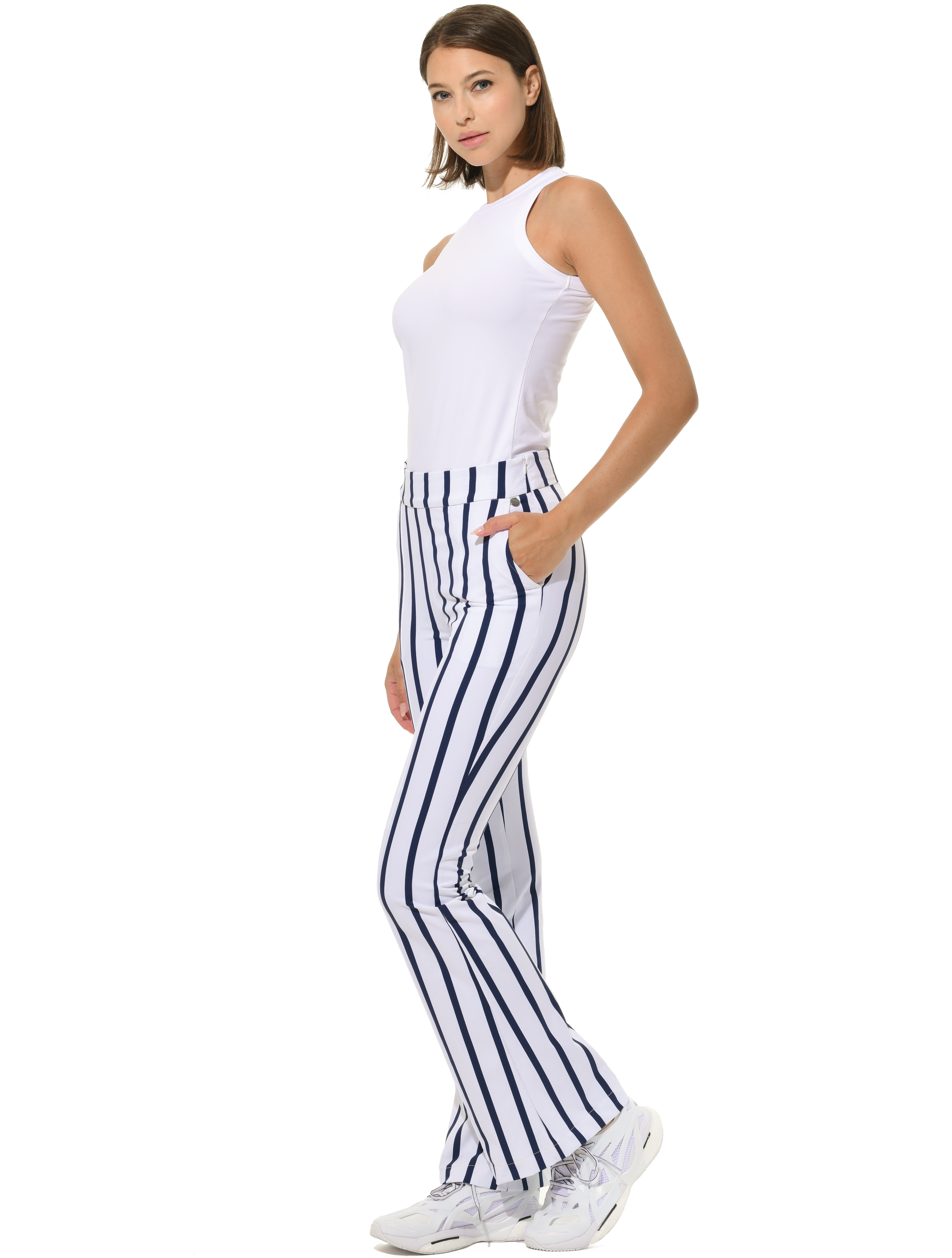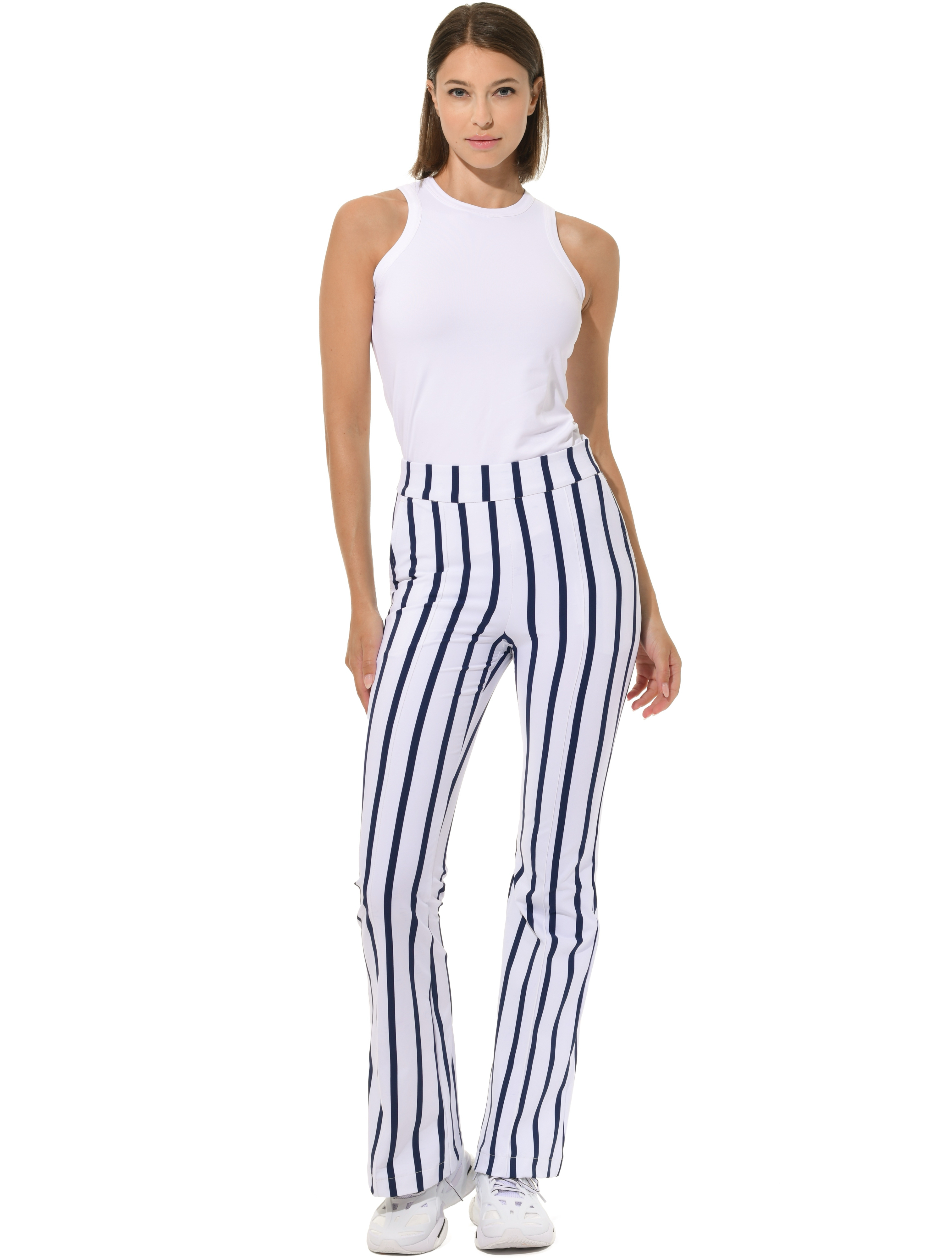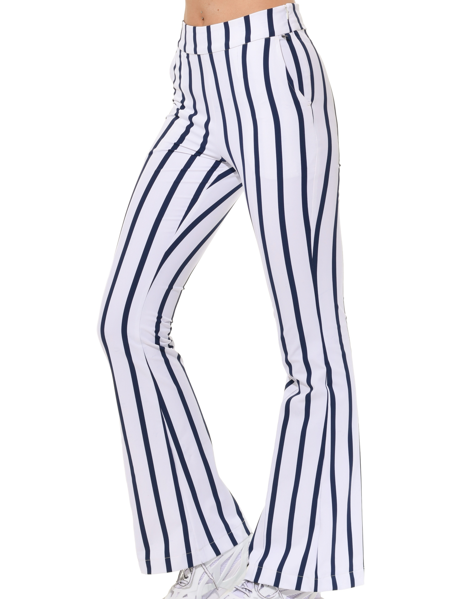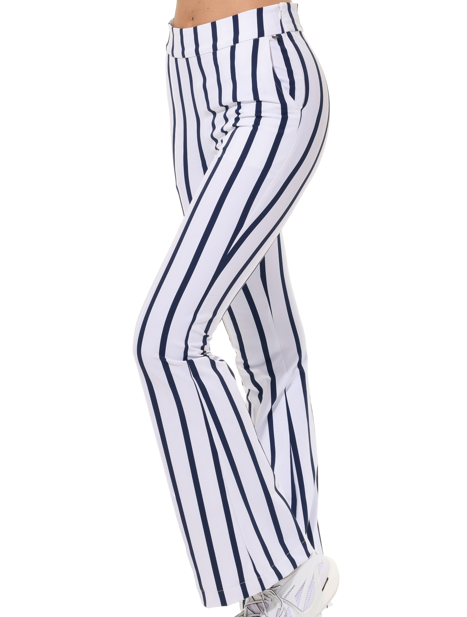 | bi-elastische, höher geschnittene lange Boot Cut Hose mit seitlichem Reißverschluss 90% Polyamid 10% Elasthan Seitenlänge 110 cm |