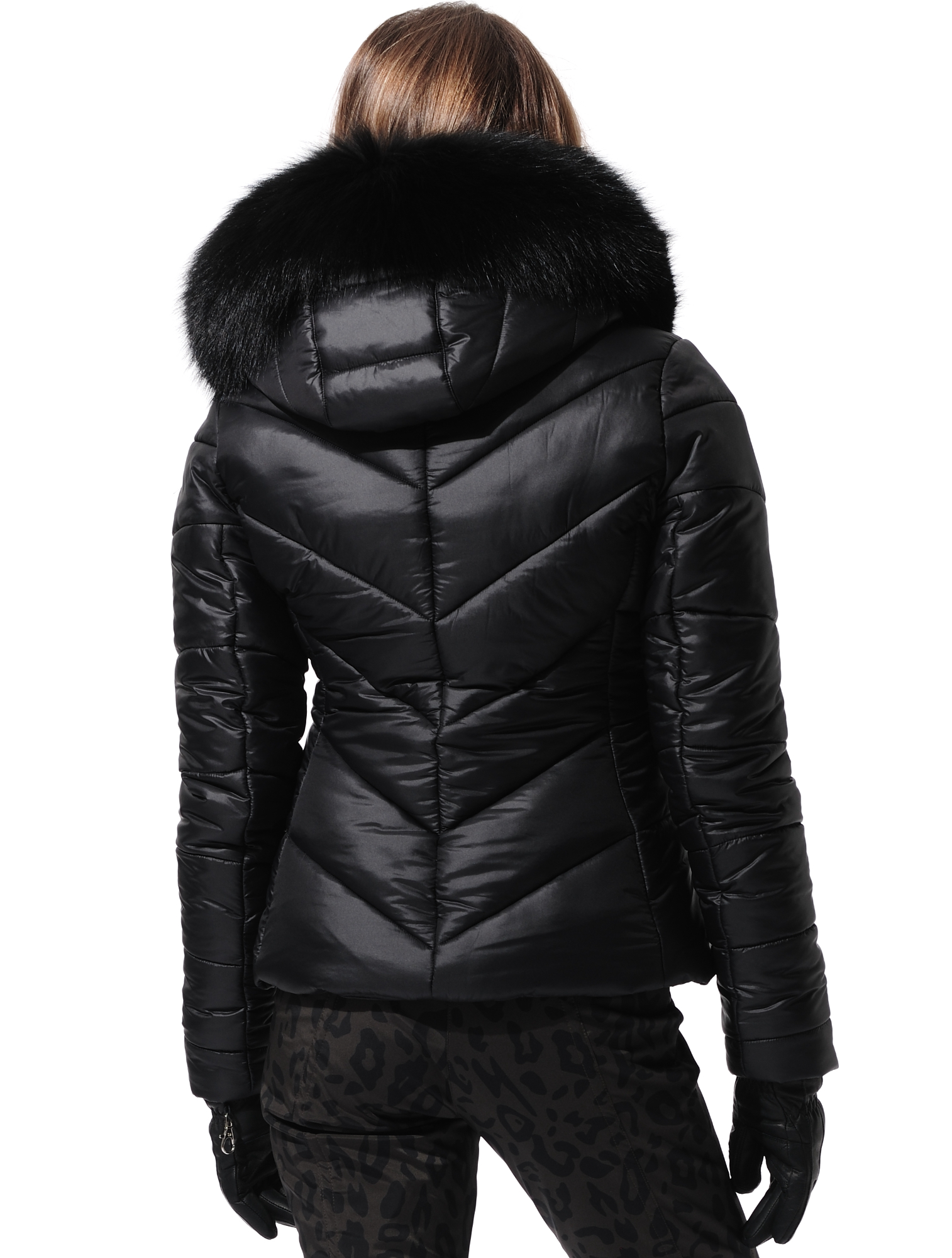 | funktionelle ultraleichte Skijacke hoher funktioneller Kragen fünf Reißverschluss-Taschen inklusive Liftpasstasche abnehmbare, verstellbare Kapuze mit verdeckten Druckern für optionale Pelzverbrämung funktionelles Innenleben mit wind- und wasserdichtem Schneefang, Schneefanggarage, Handstulpen und zwei Reißverschluss-Taschen 70% Polyamid 20% Polyester 10% Polyurethan Länge 63 cm (Größe 36) |
