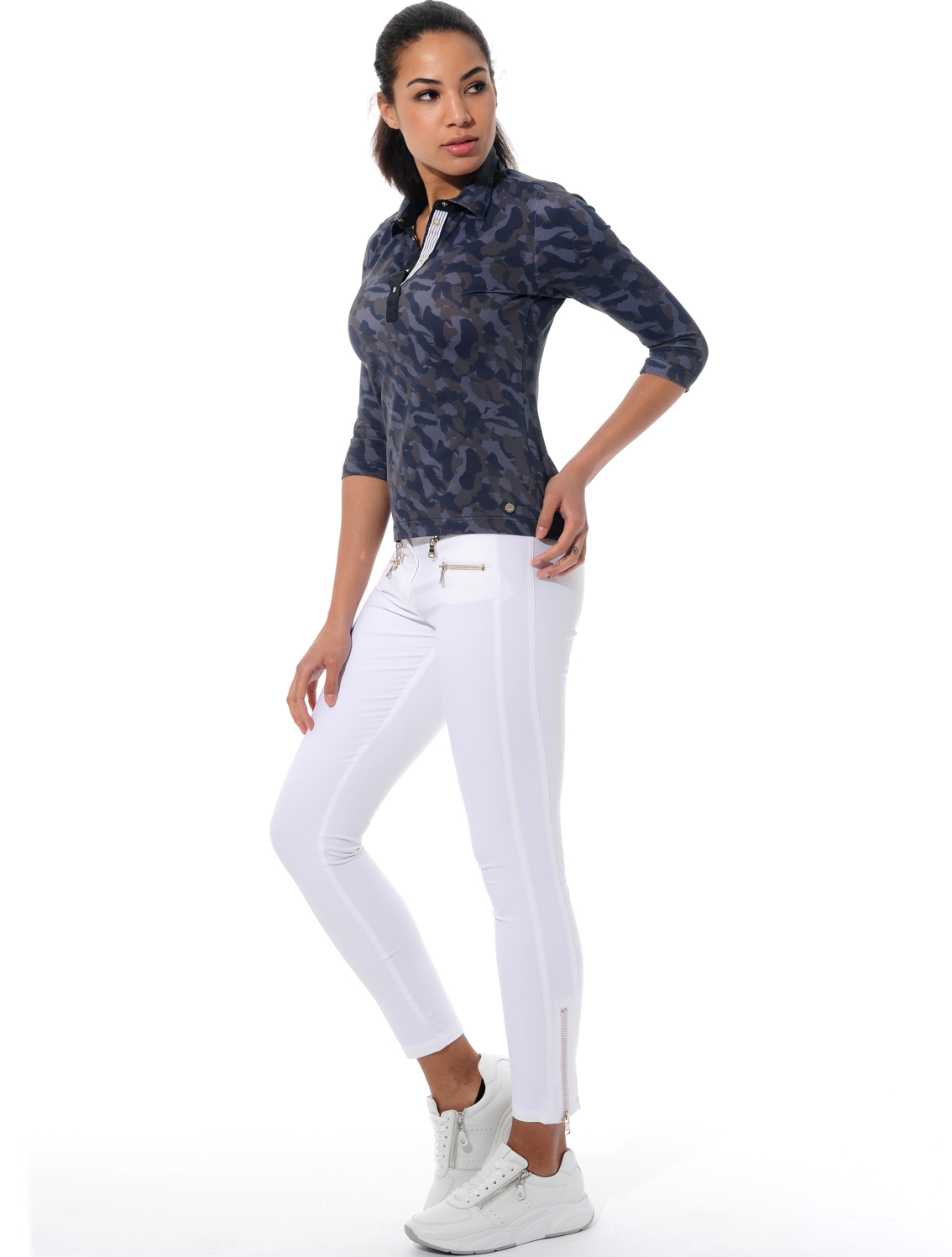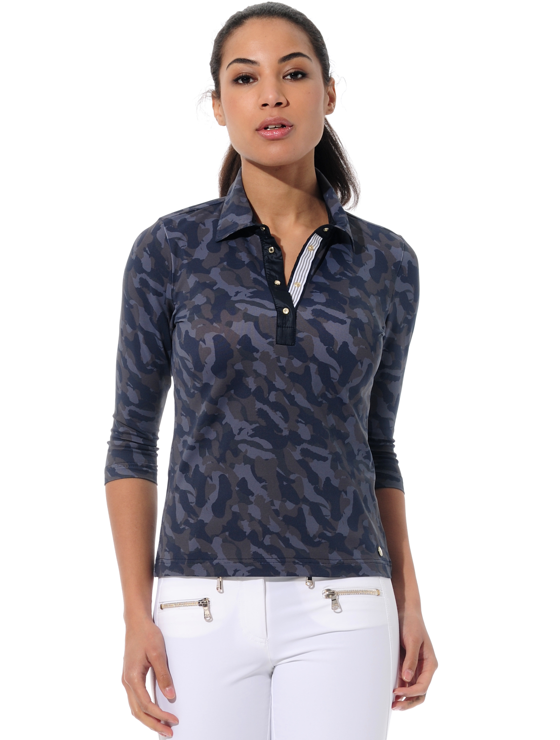 | 3/4 seeve Meryl print golf polo shirt 90% polyamide 10% elasthane length 62 cm / 24" (EU size 36 / US size 4) |