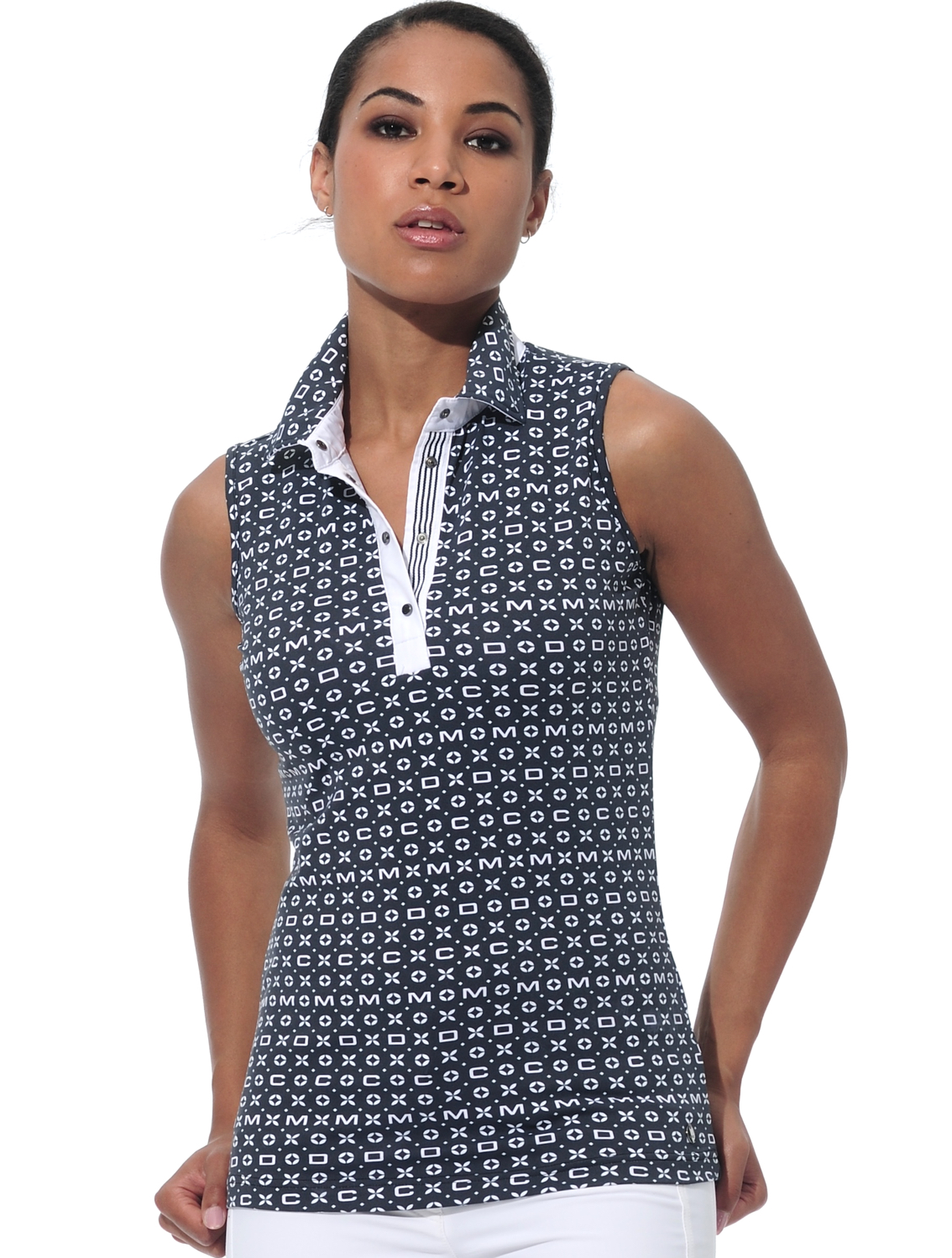 | sleeveless Meryl print golf polo shirt 90% polyamide 10% elasthane length 62 cm / 24" |