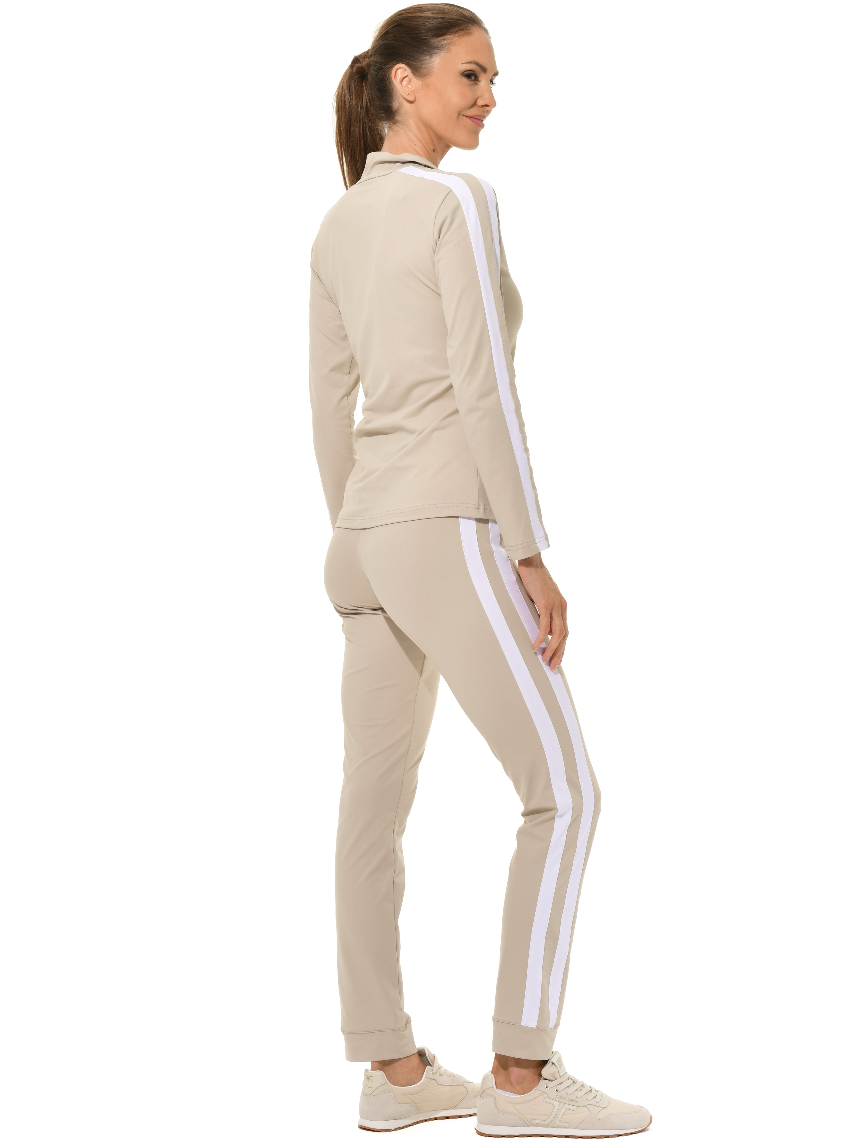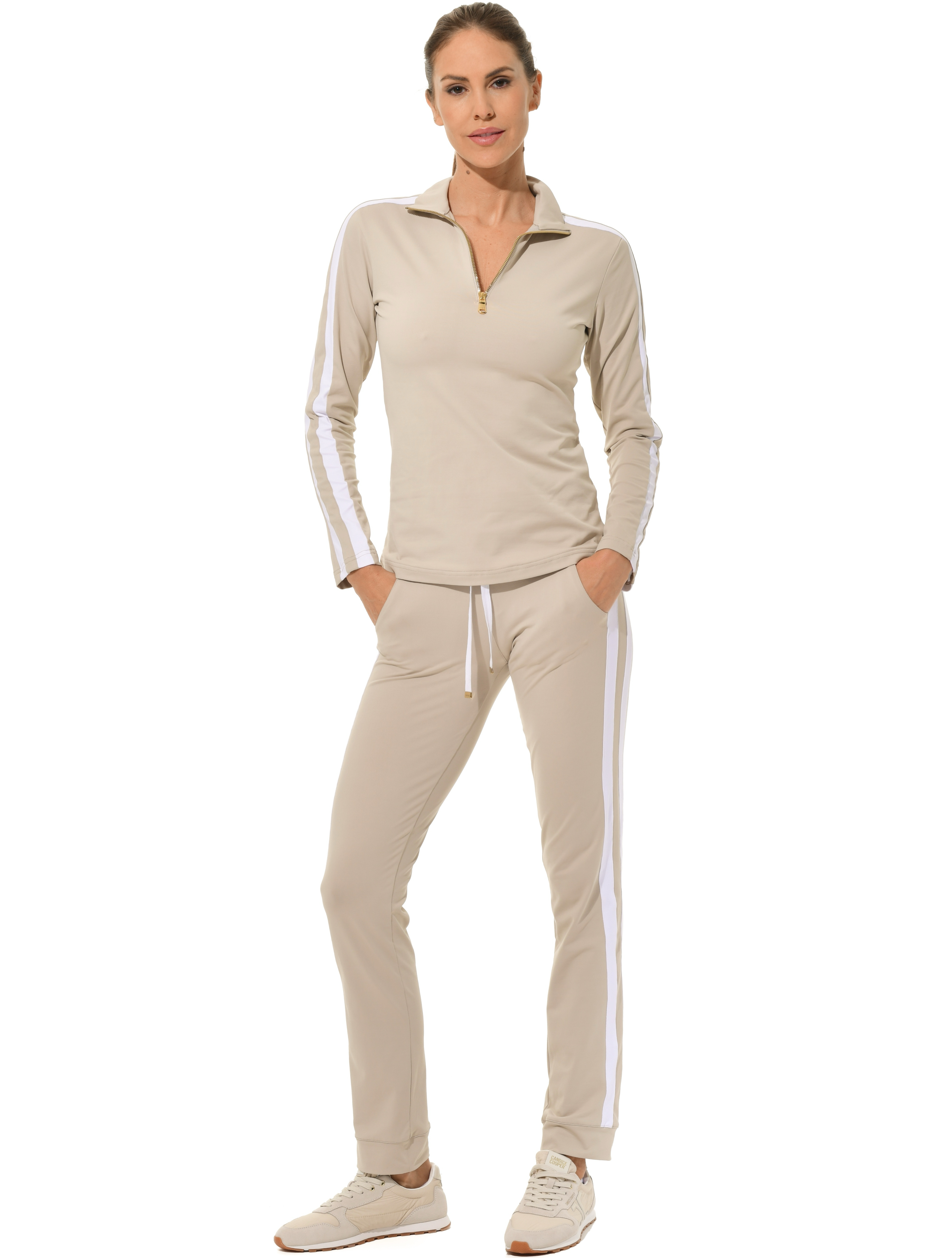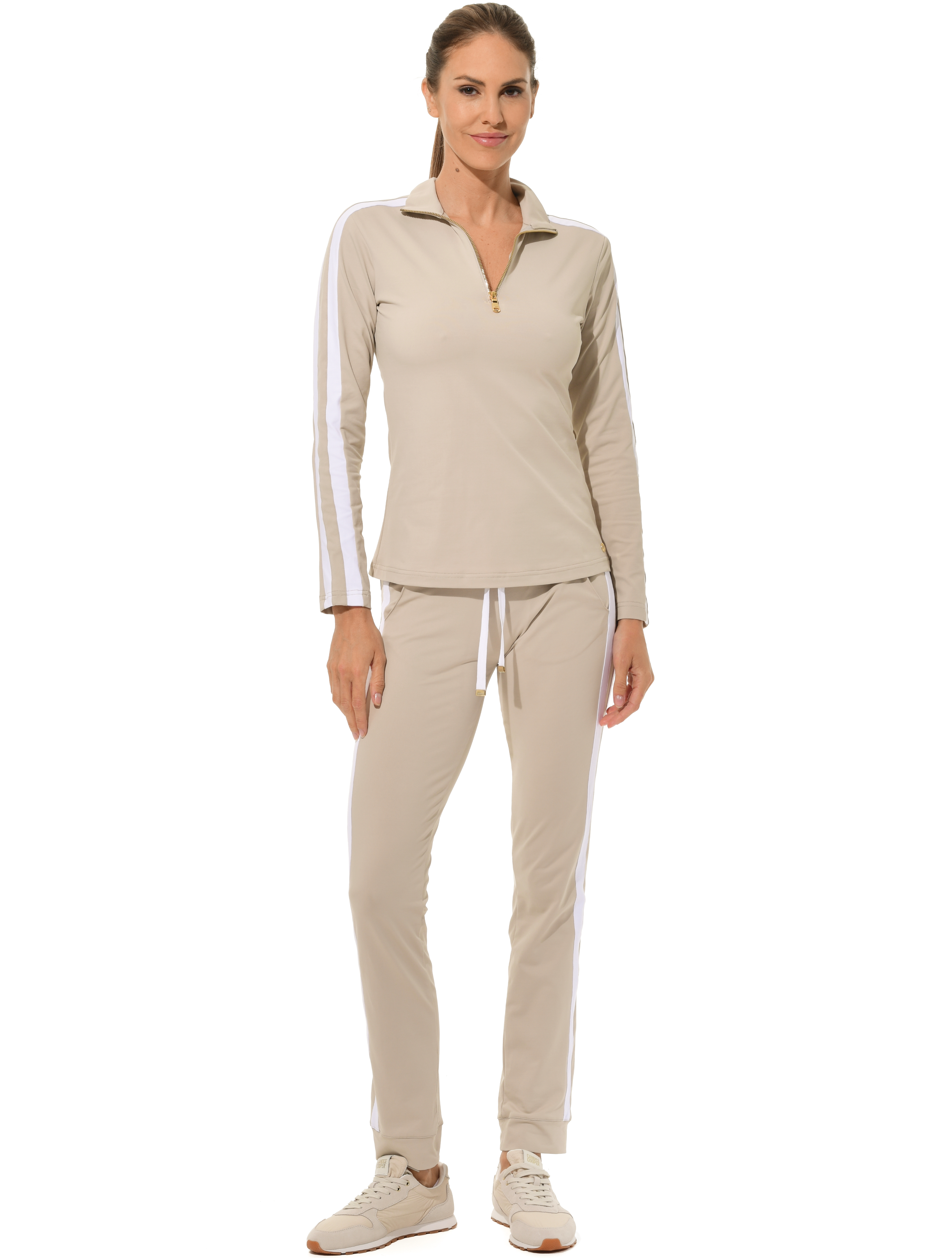 Jersey zip longsleeve light taupe/white