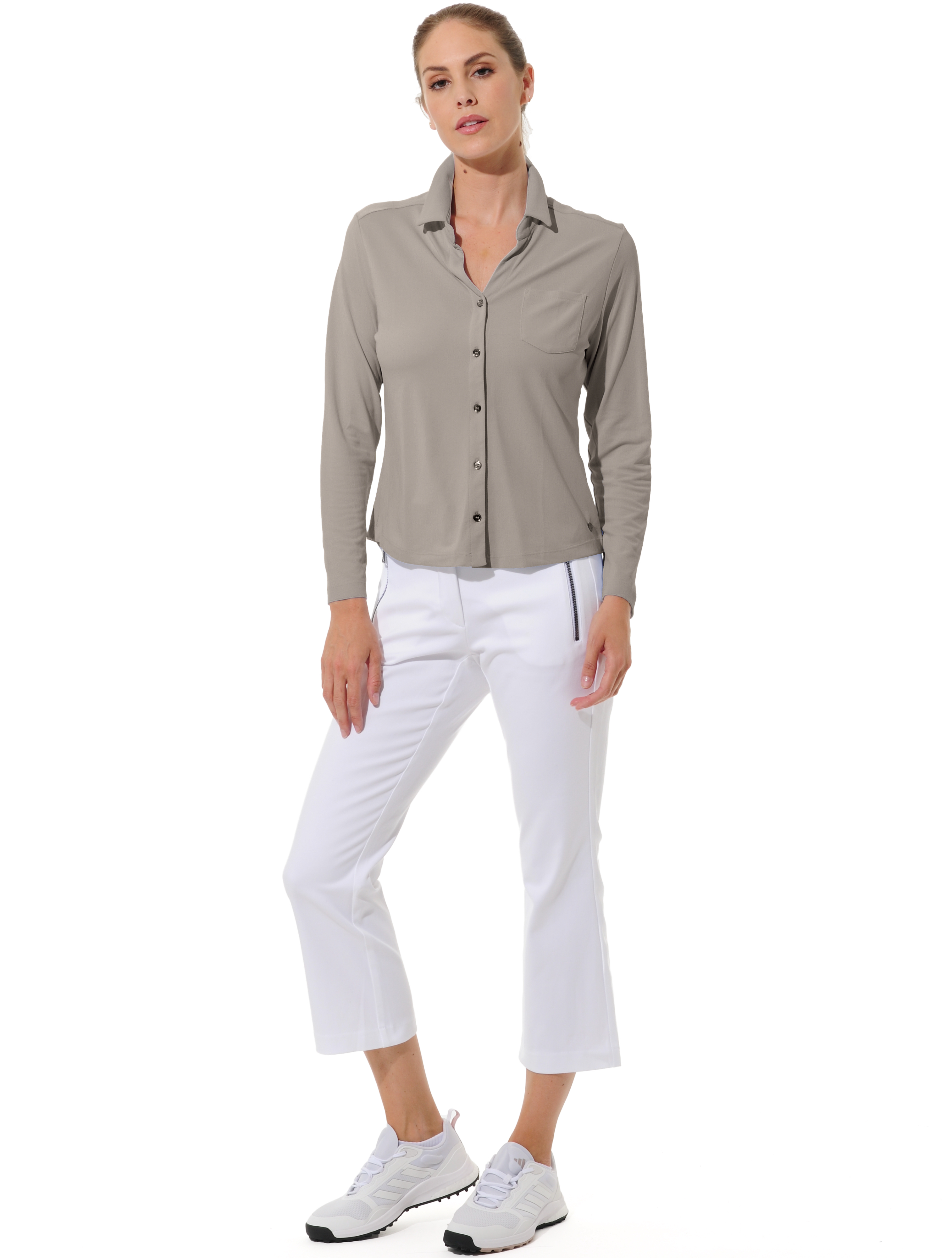 longsleeve relaxed fit silver ion Meryl pique button down golf polo shirt 90% polyamide 10% elasthane length 62 cm / 25" (EU size 36 / US size 4) |