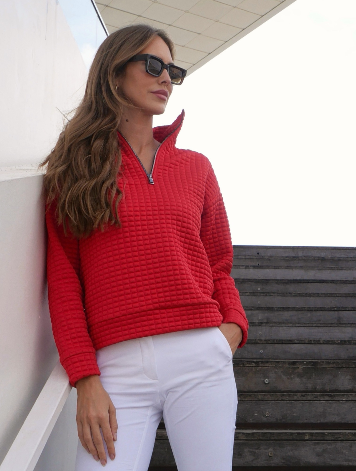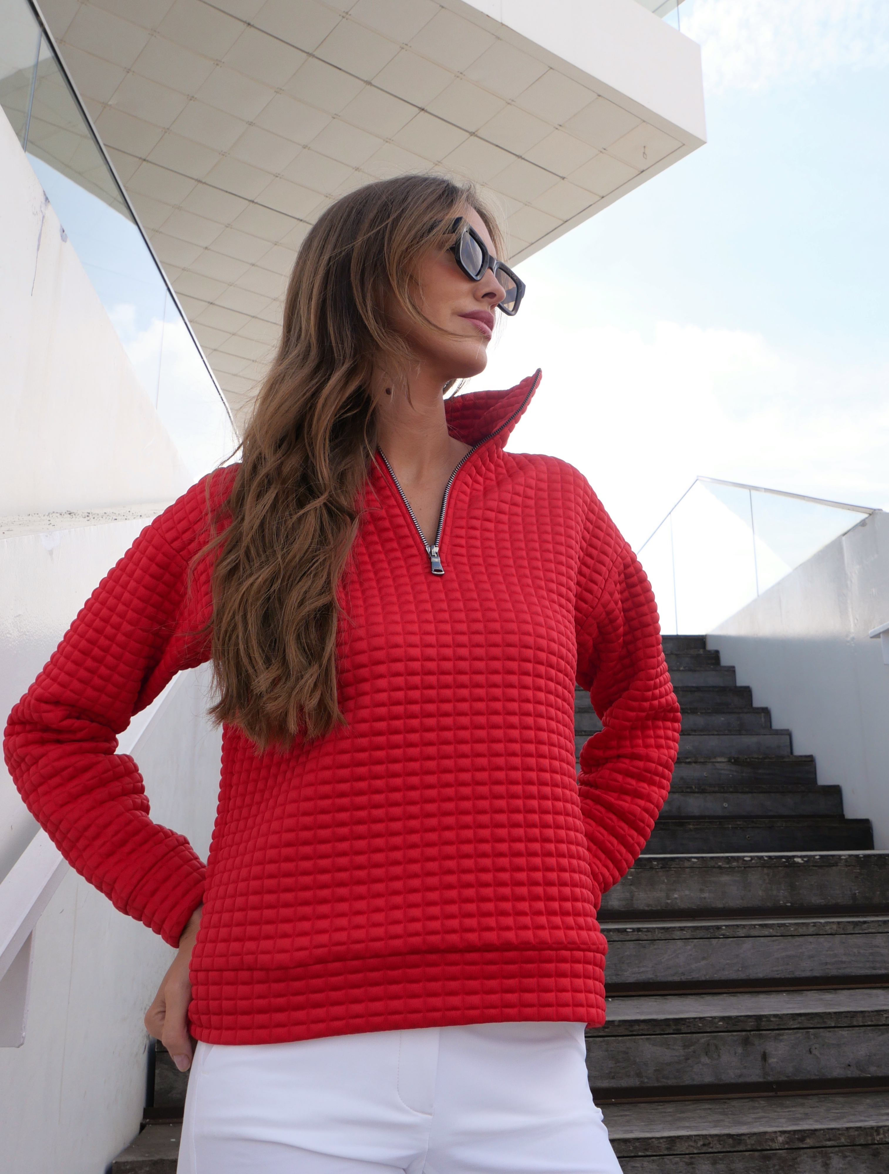 warming relaxed fit Veruno troyer with waffle structure 98% polyester 2% elasthane length 62 cm / 24" |