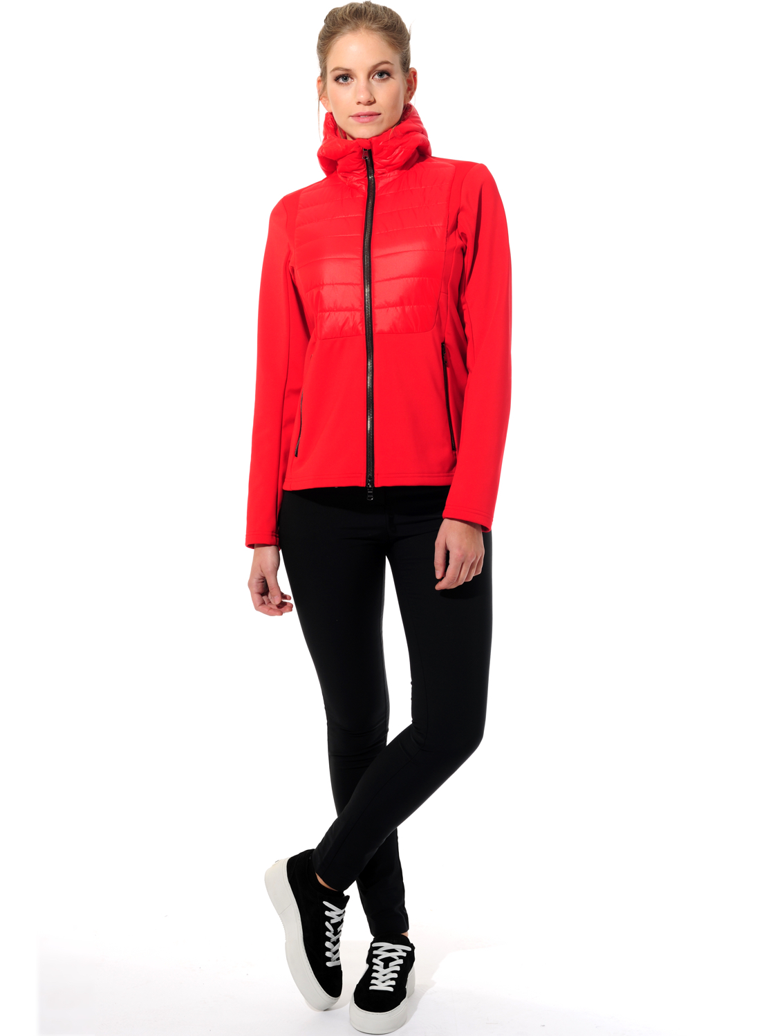 | warming waterproof power stretch hooded jacket with quilted woven insets, breathable climate membrane and 2 zip pockets 70% polyamide 20% polyester 10% elasthane length approx. 64 cm / 25" (EU size 36/US size 6) |