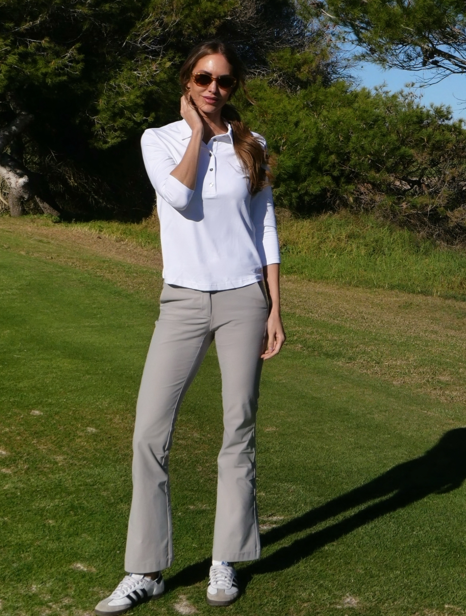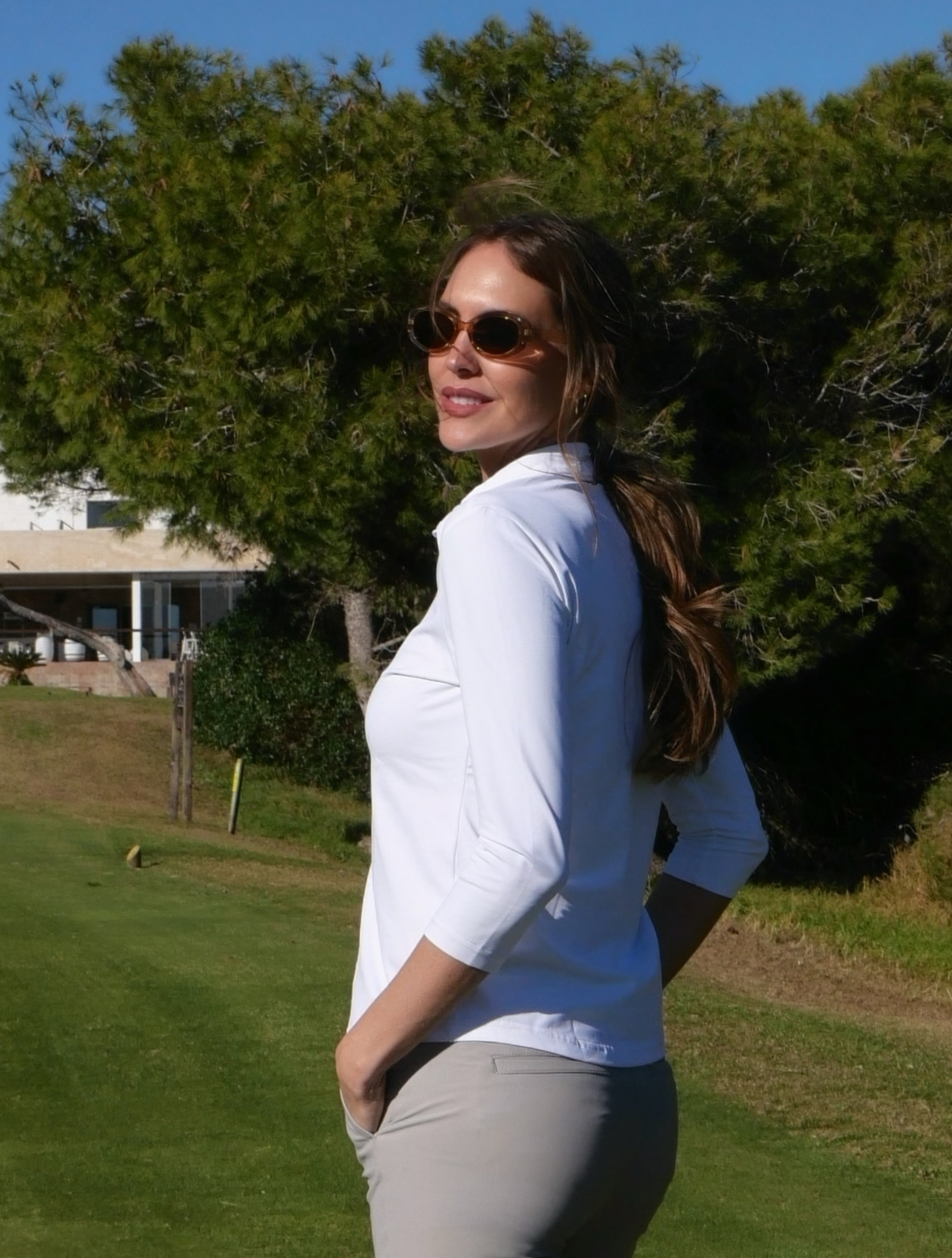 3/4 sleeve Jersey golf polo shirt with button placket 90% polyamide 10% elasthane length 65 cm / 26" |