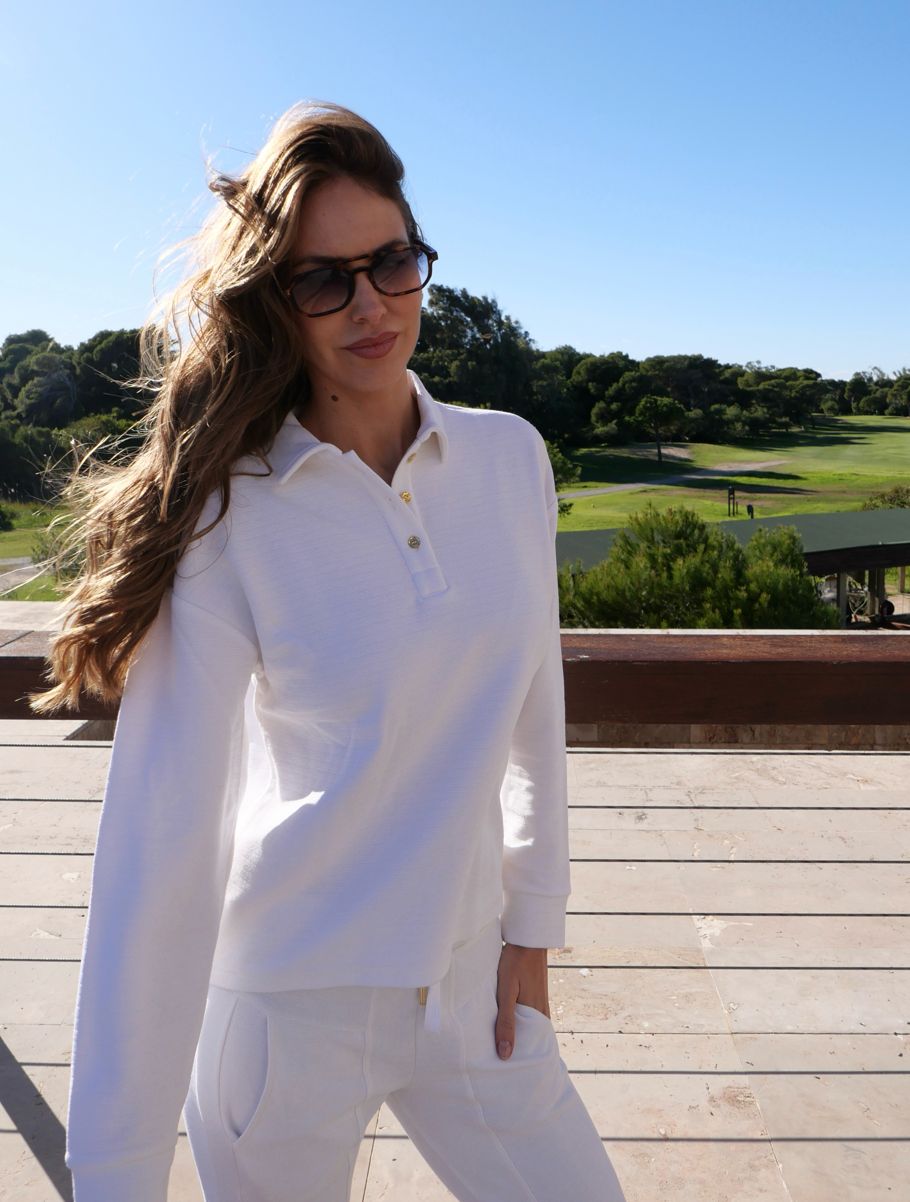 cosy longsleeve relaxed fit Viscose Ottoman Rib Jersey polo shirt with button placket 66% viscose 18% polyester 13% polyamide 3% elasthane length 64 cm / 25" |