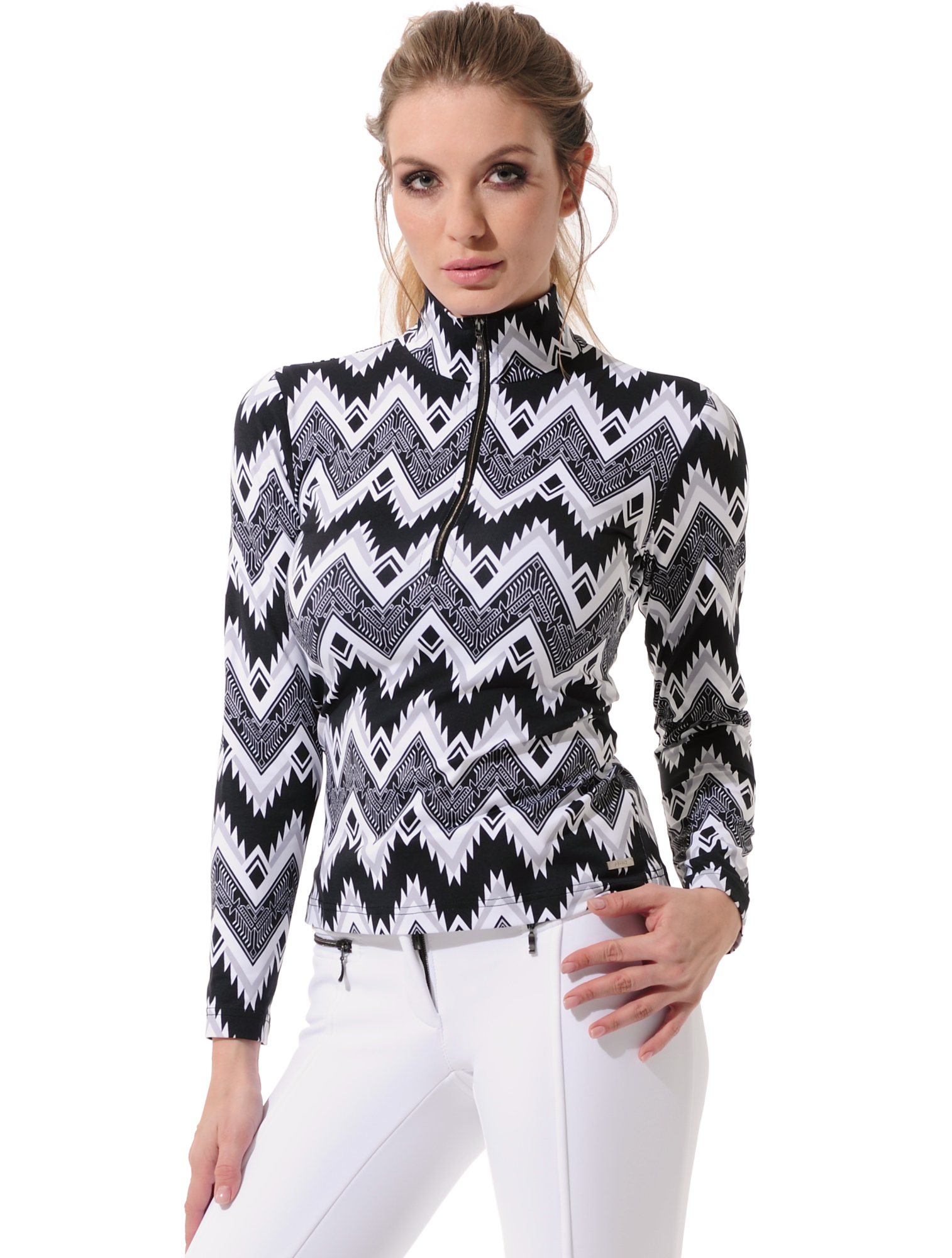 Inka print zip longsleeve black/white