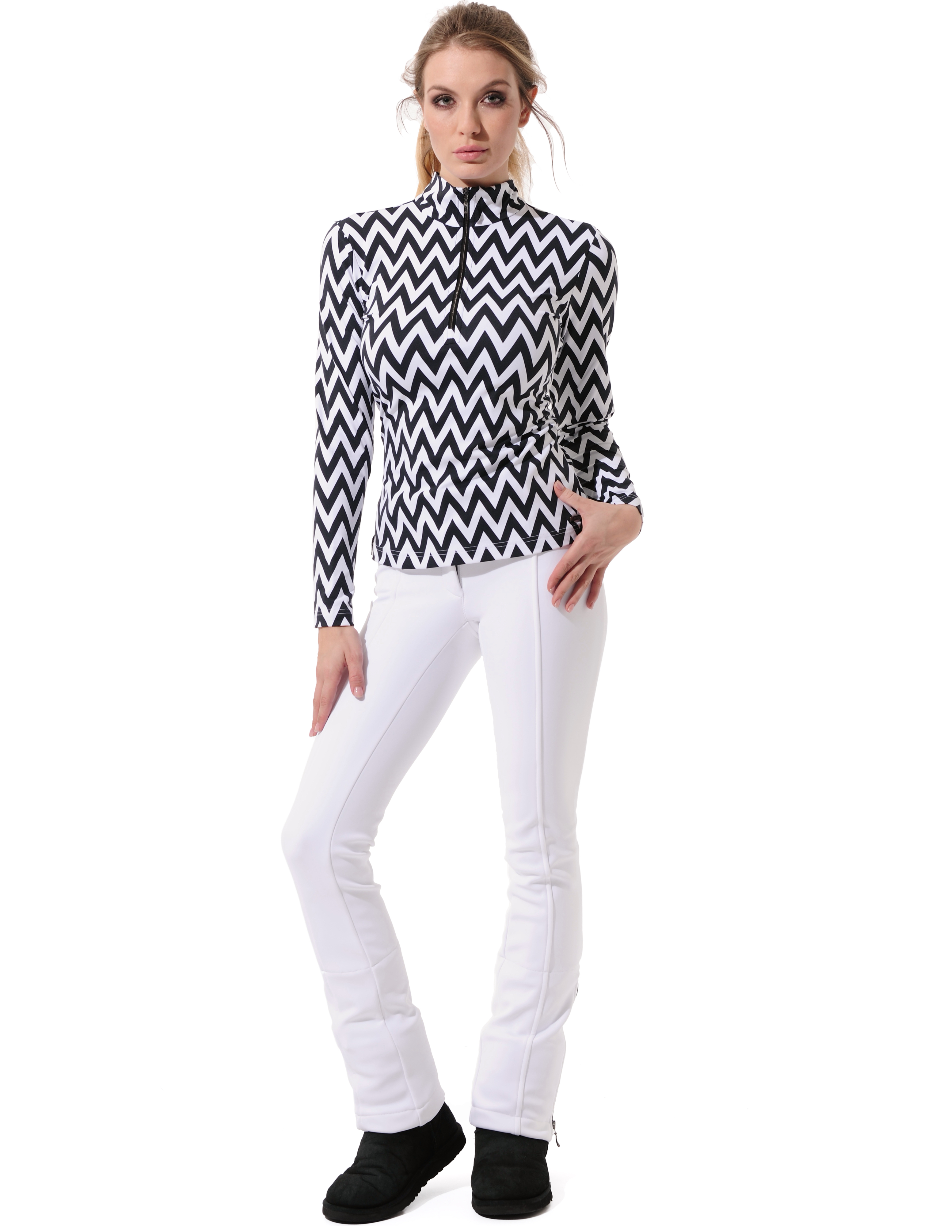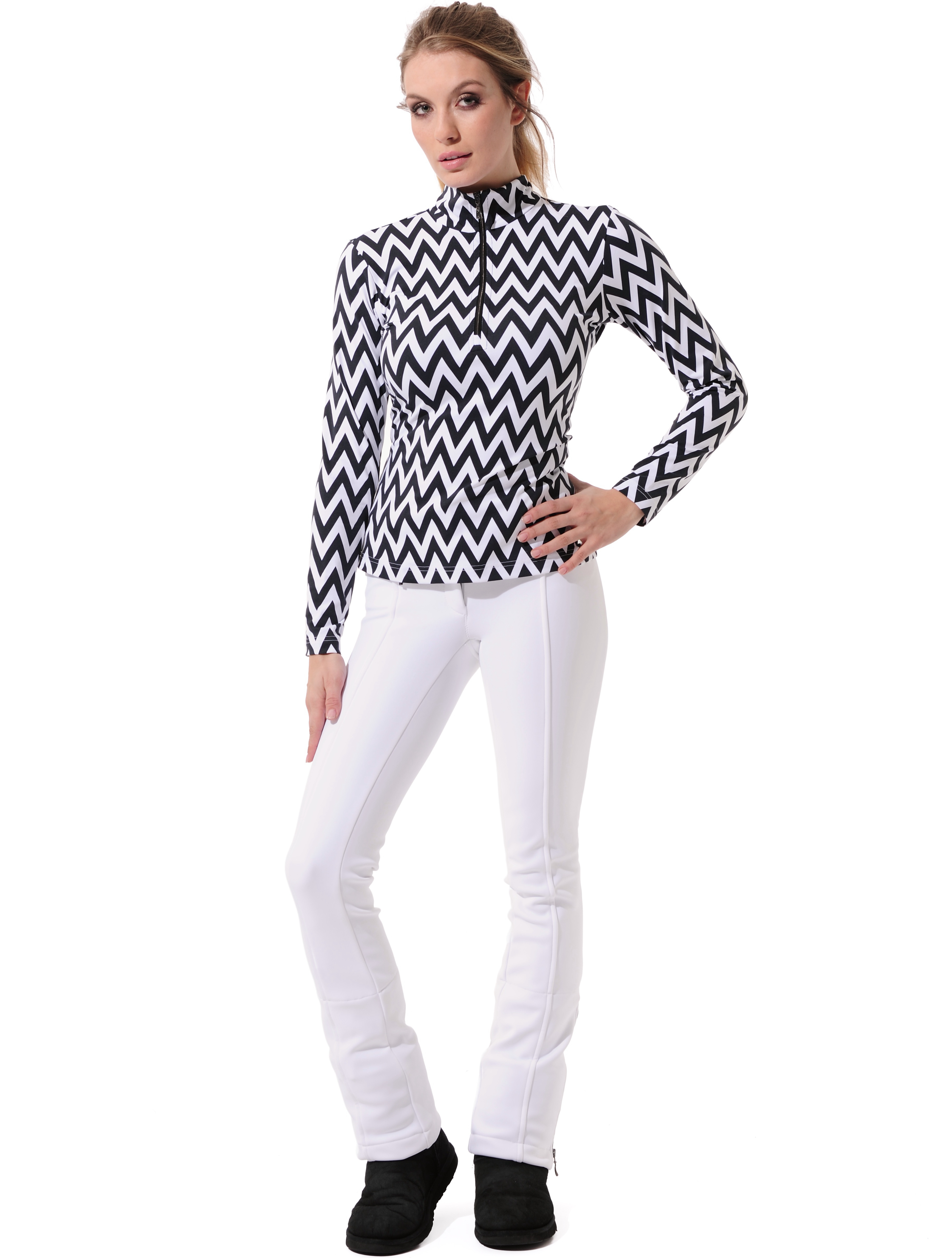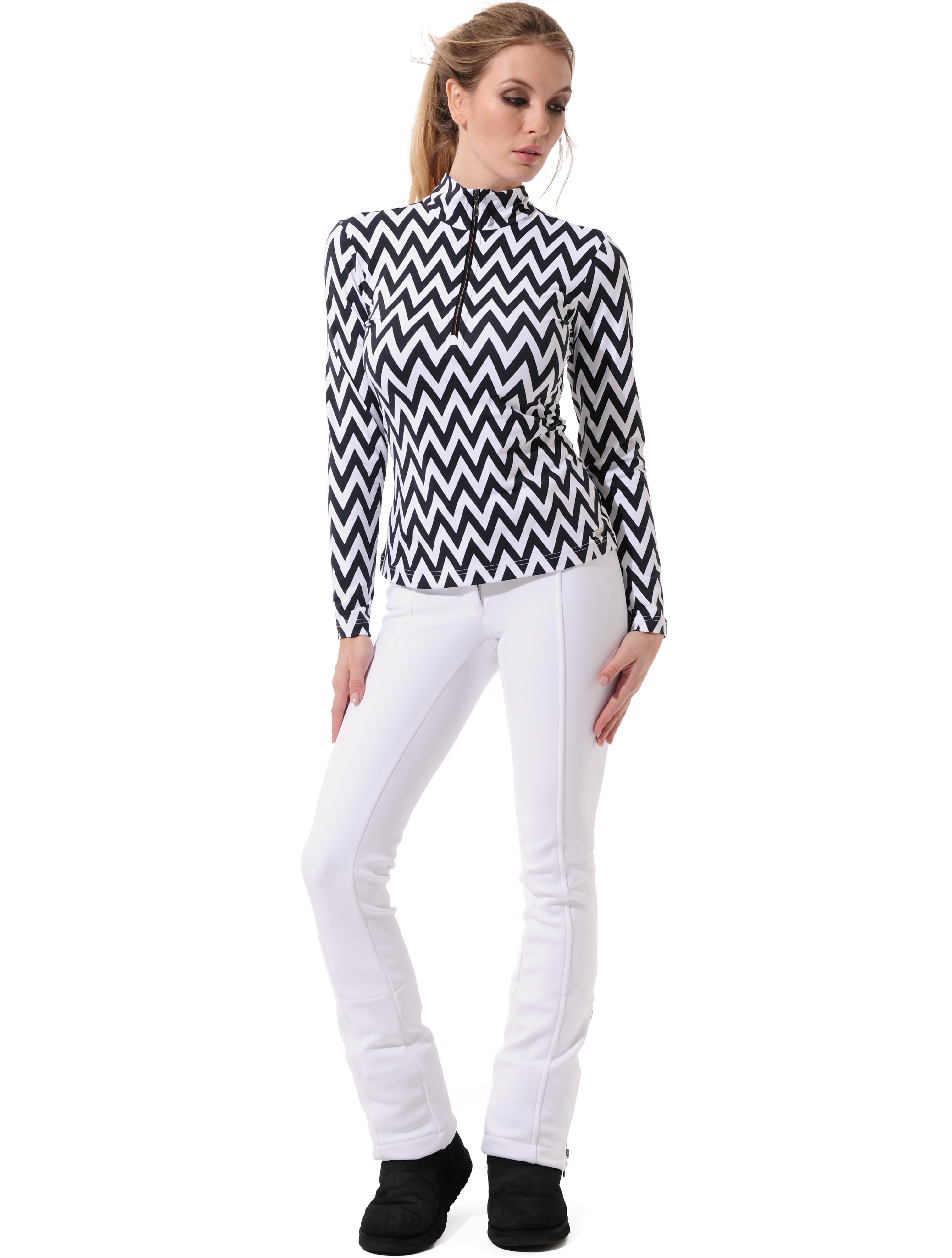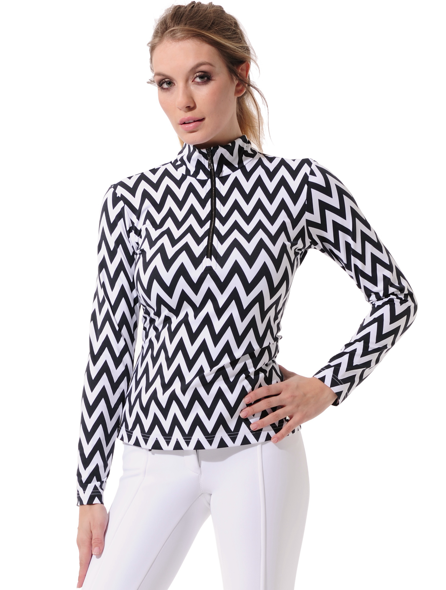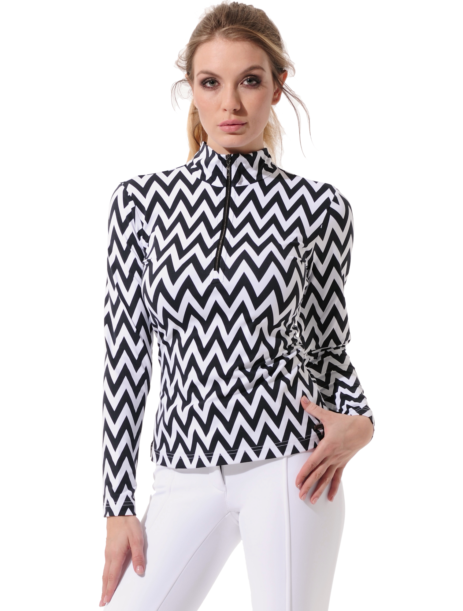 Chevron print zip longsleeve black/white