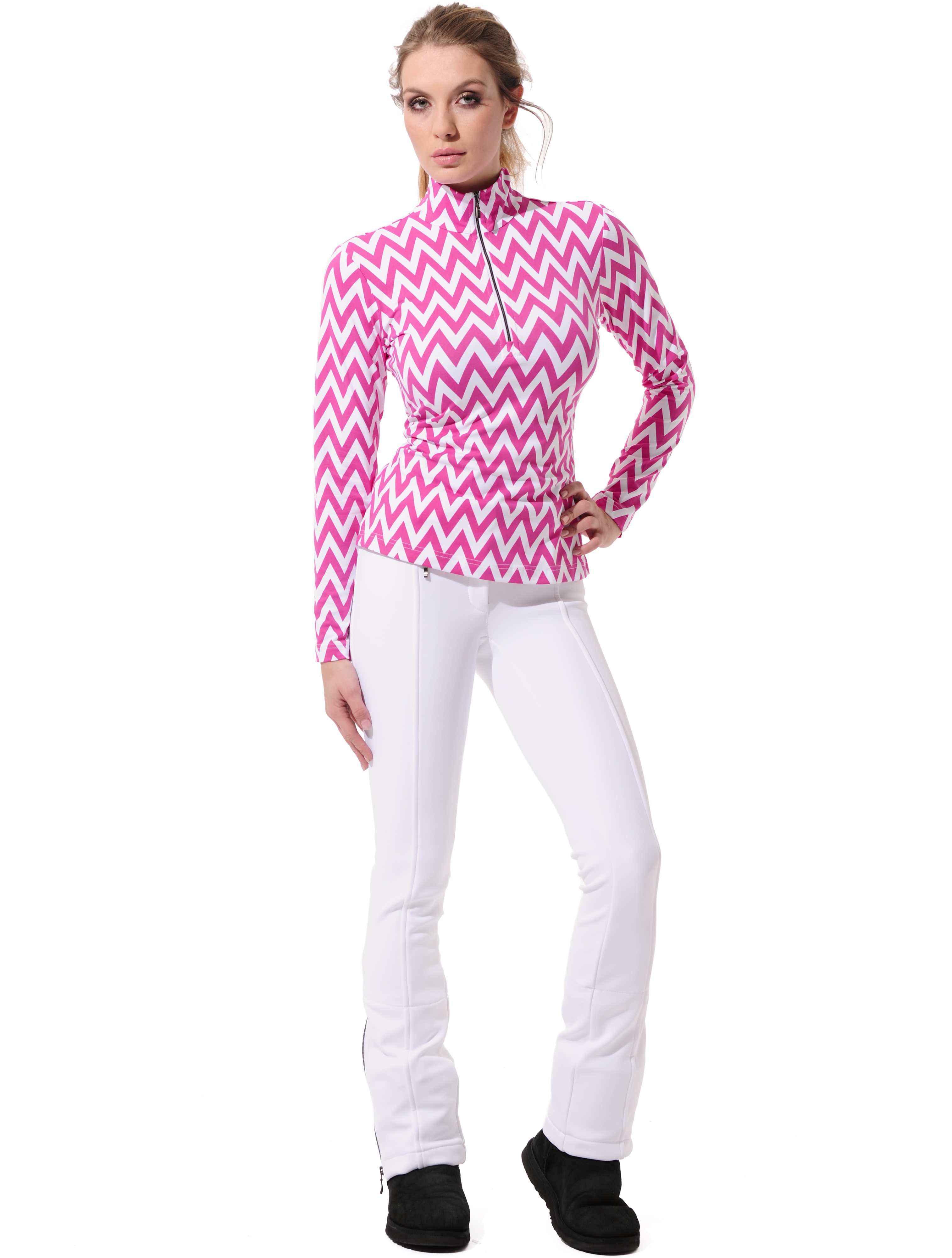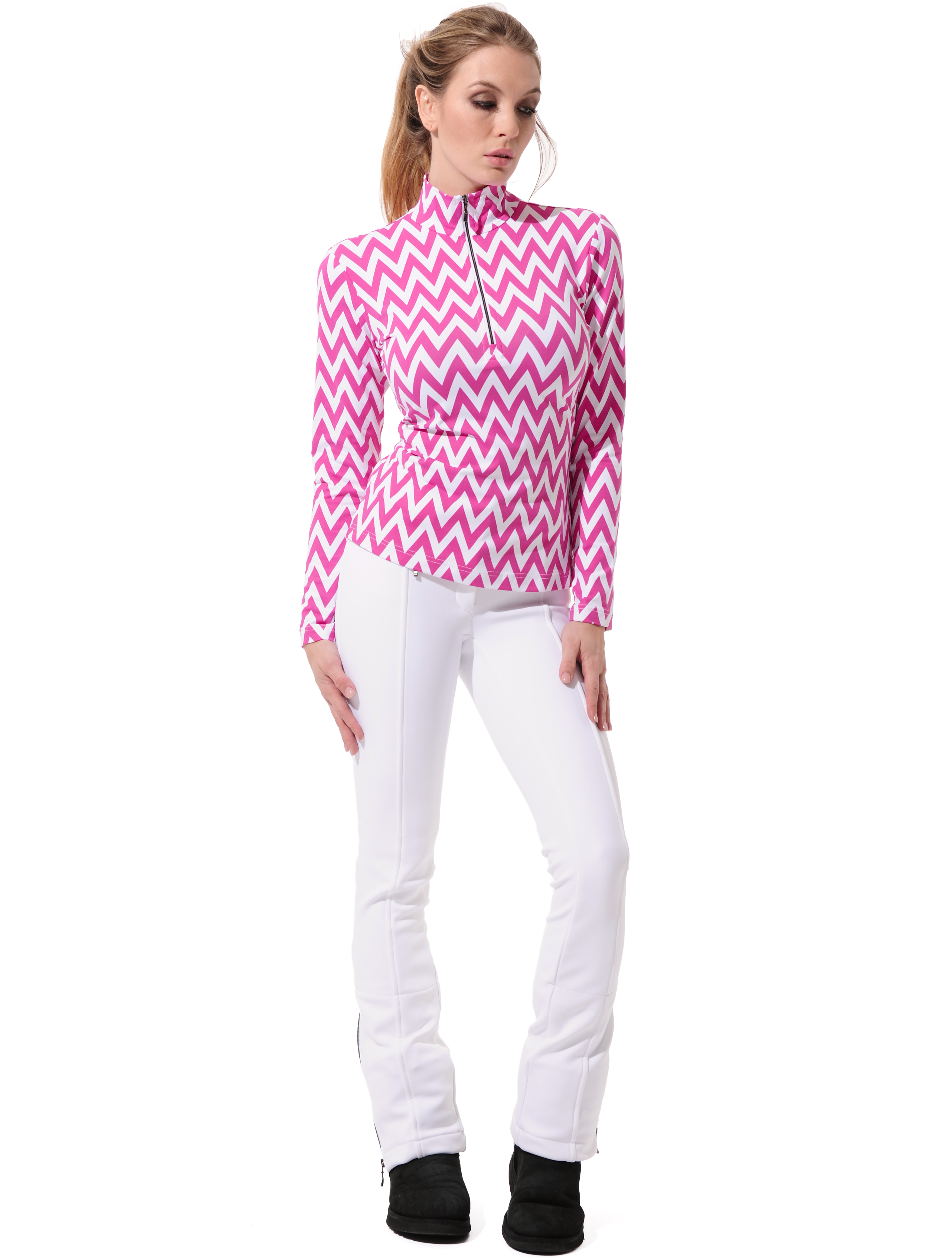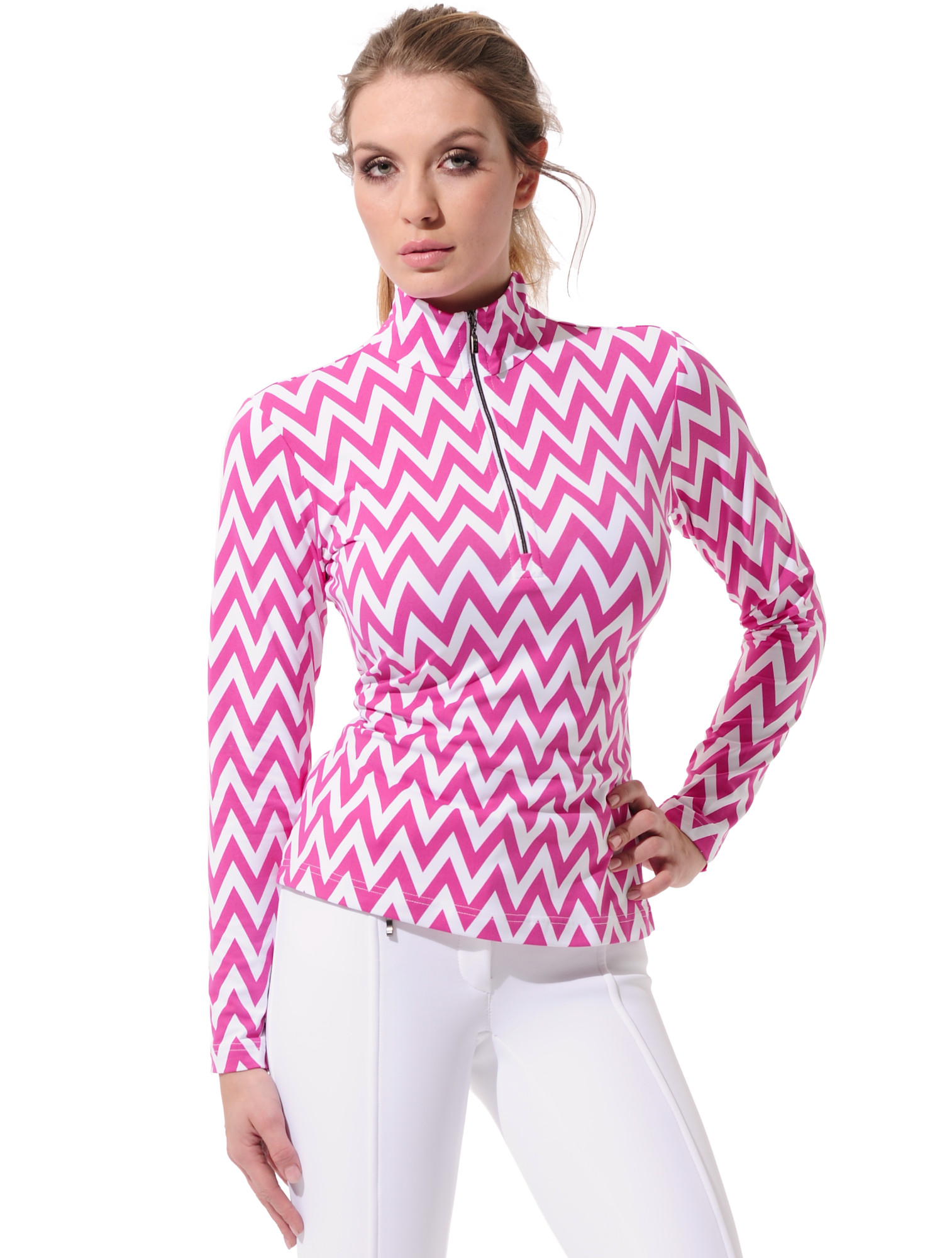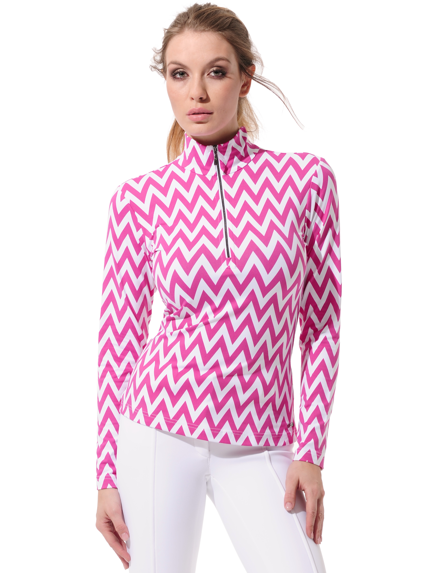 Chevron print zip longsleeve pink