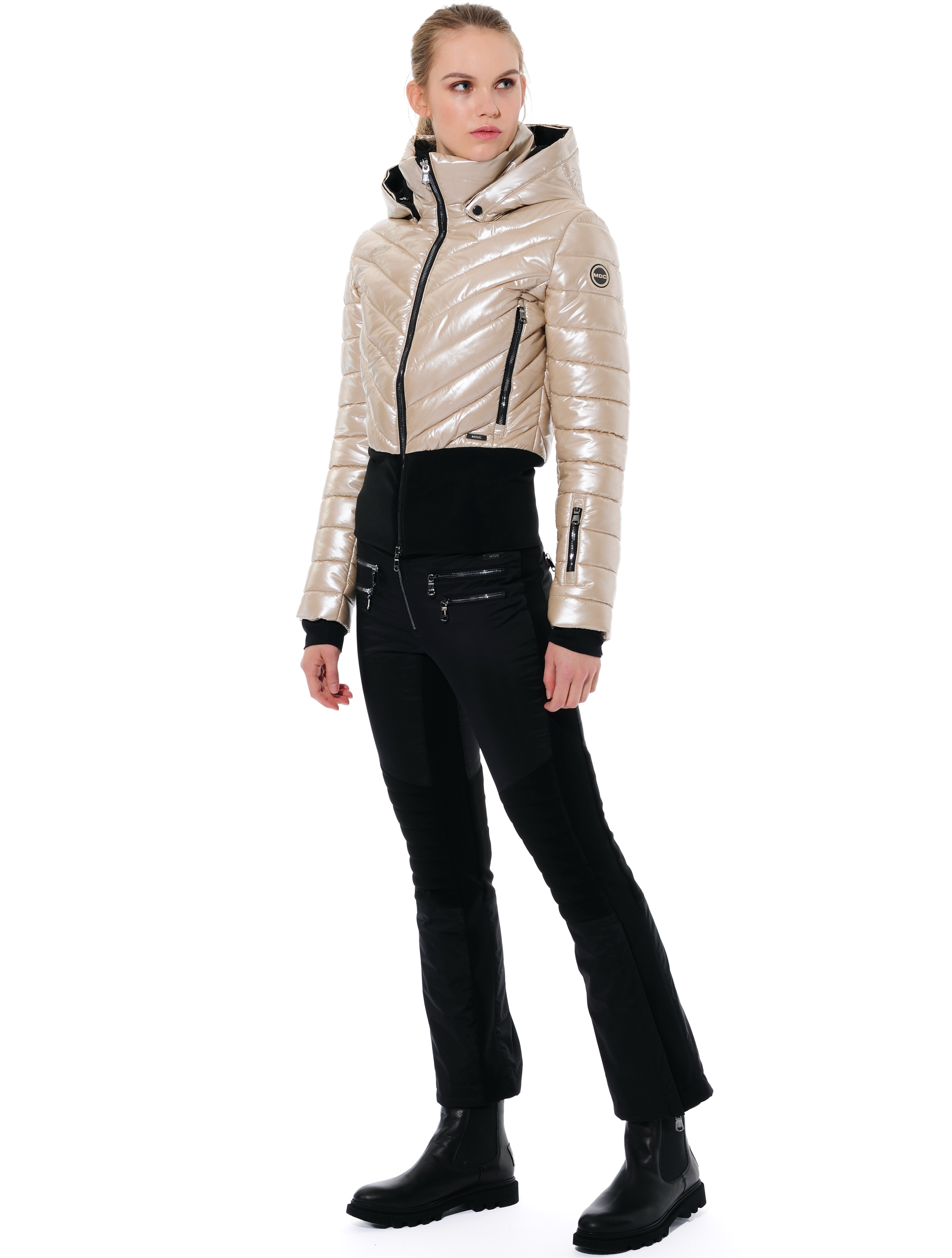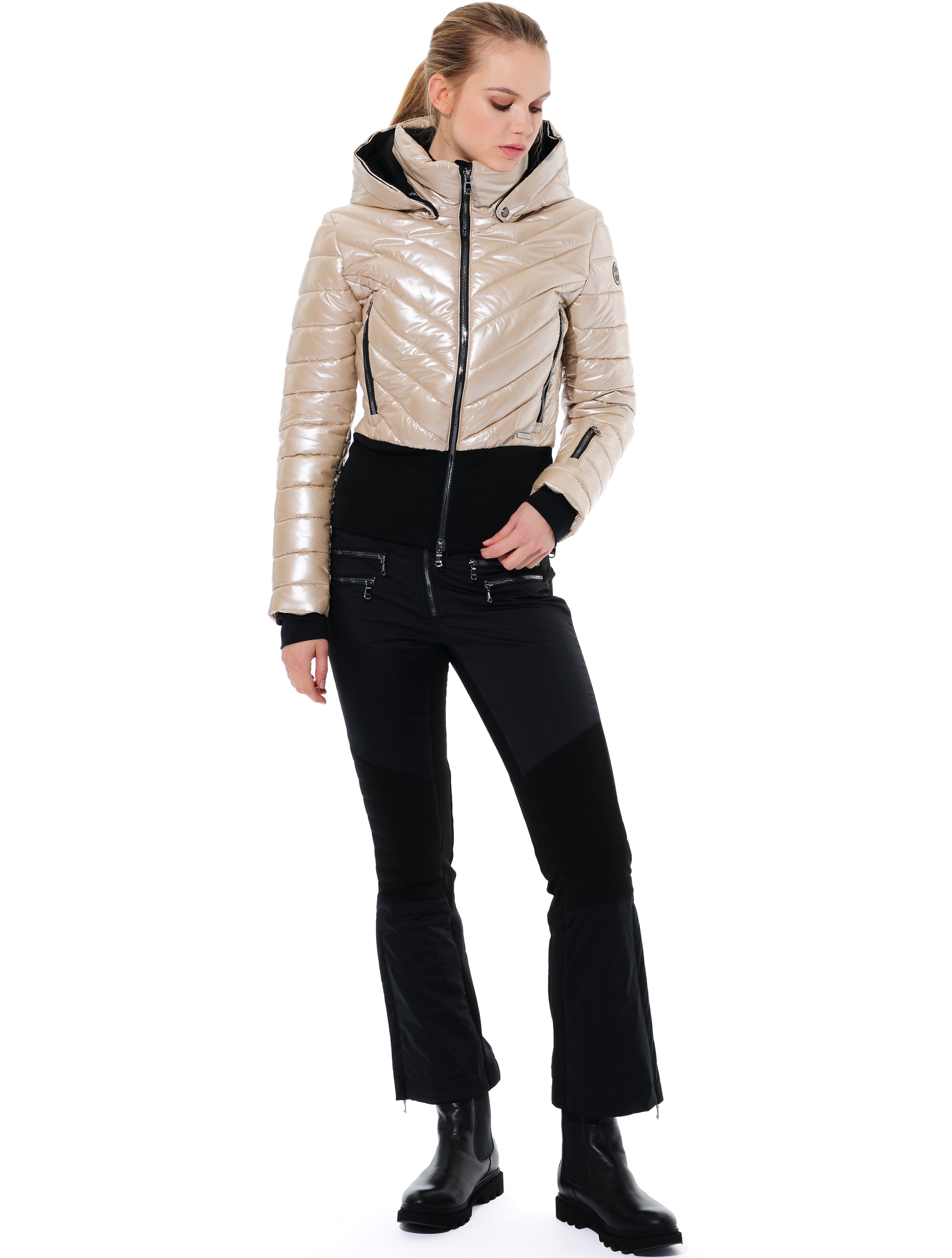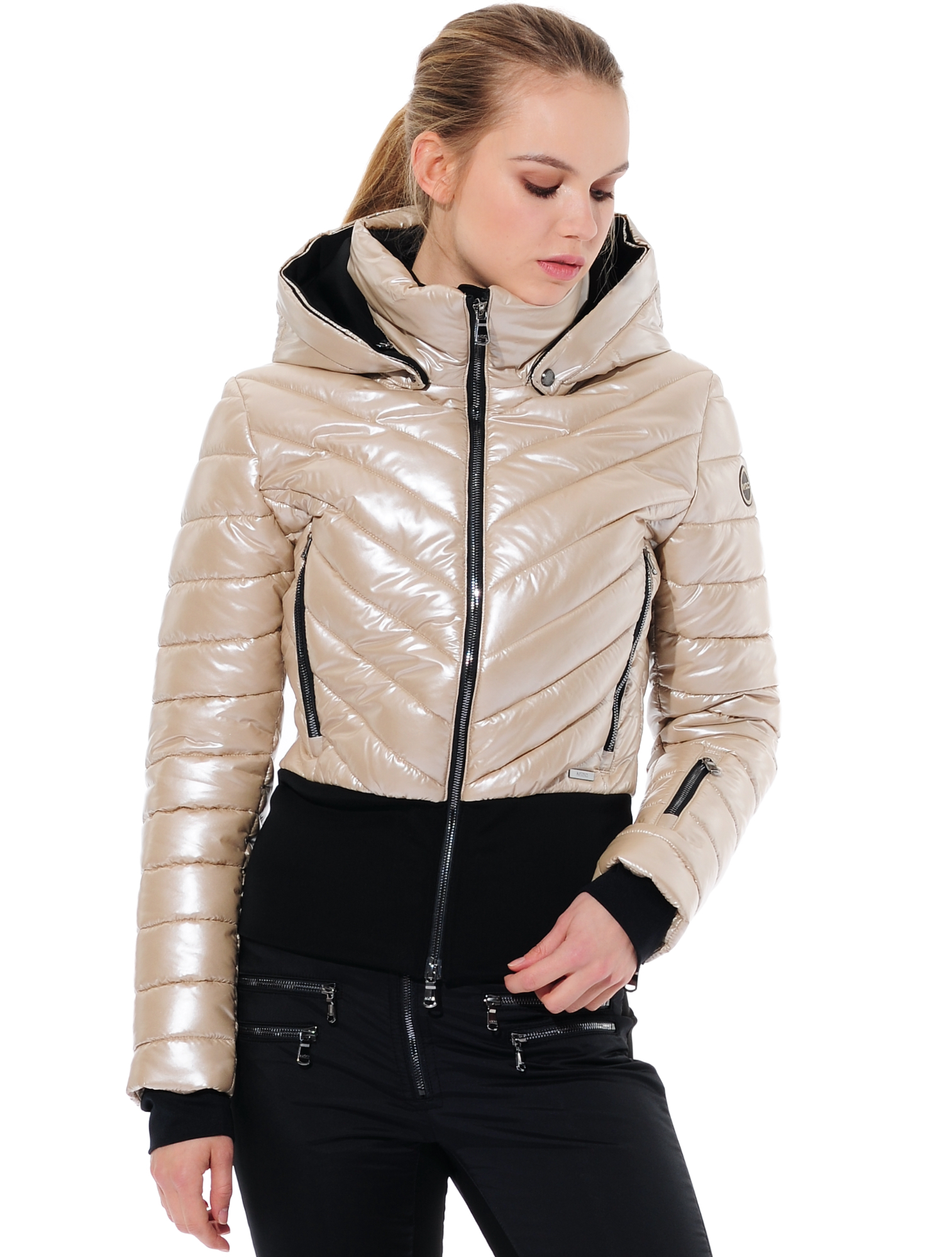 waterproof lightweight ski jacket with breathable climate membrane and Schoeller 4way stretch waistband removable, adjustable hood with hidden snaps to fix optional fur trim functional inside with cuffs and 2 zip pockets 3 outside zip pockets including zip pocket for lift pass 70% polyamide 20% polyester 10% polyurethanelength 58 cm(EU size 36 / US size 4) | ![]() |