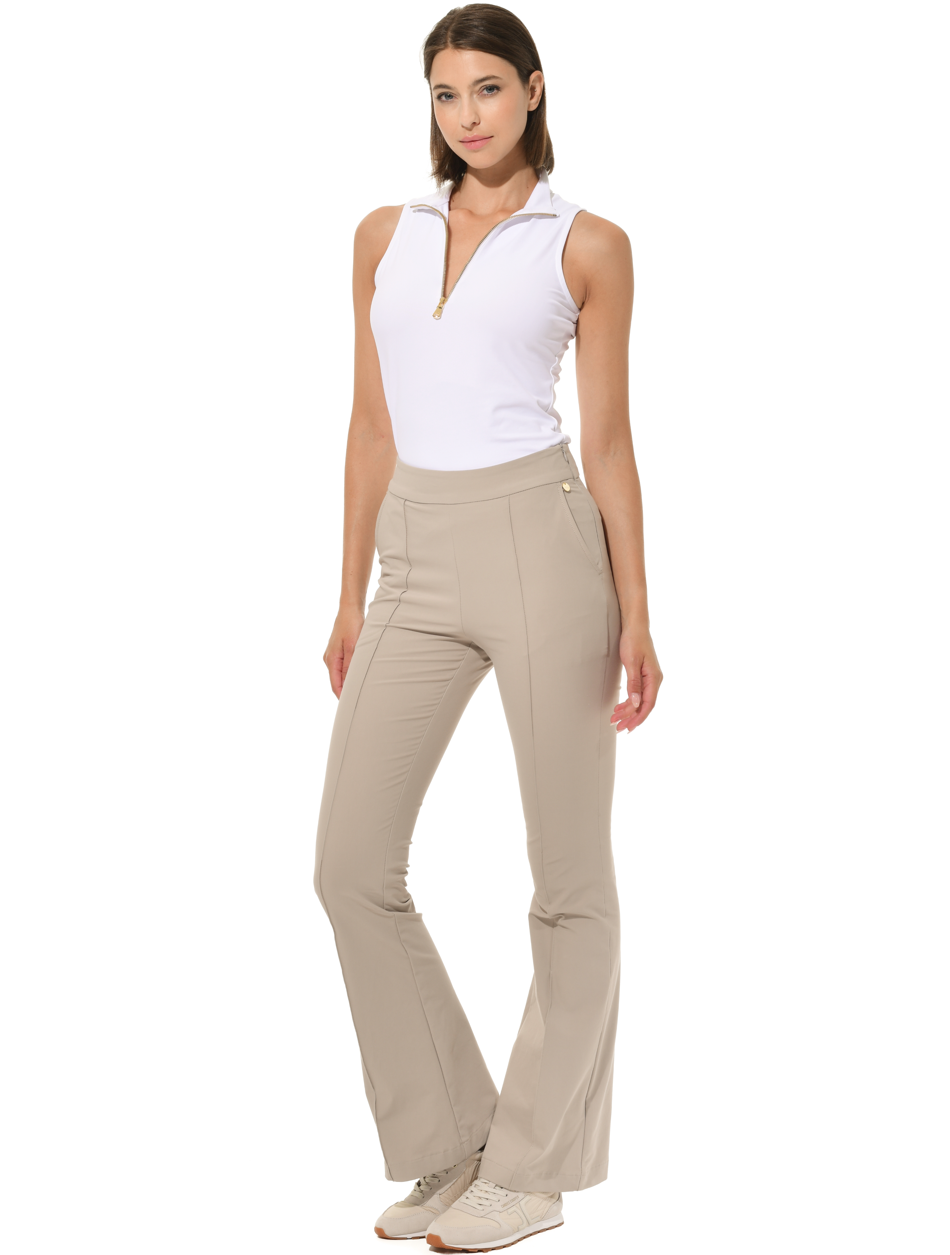 breathable 4way stretch high rise long boot cut pants with side zipper