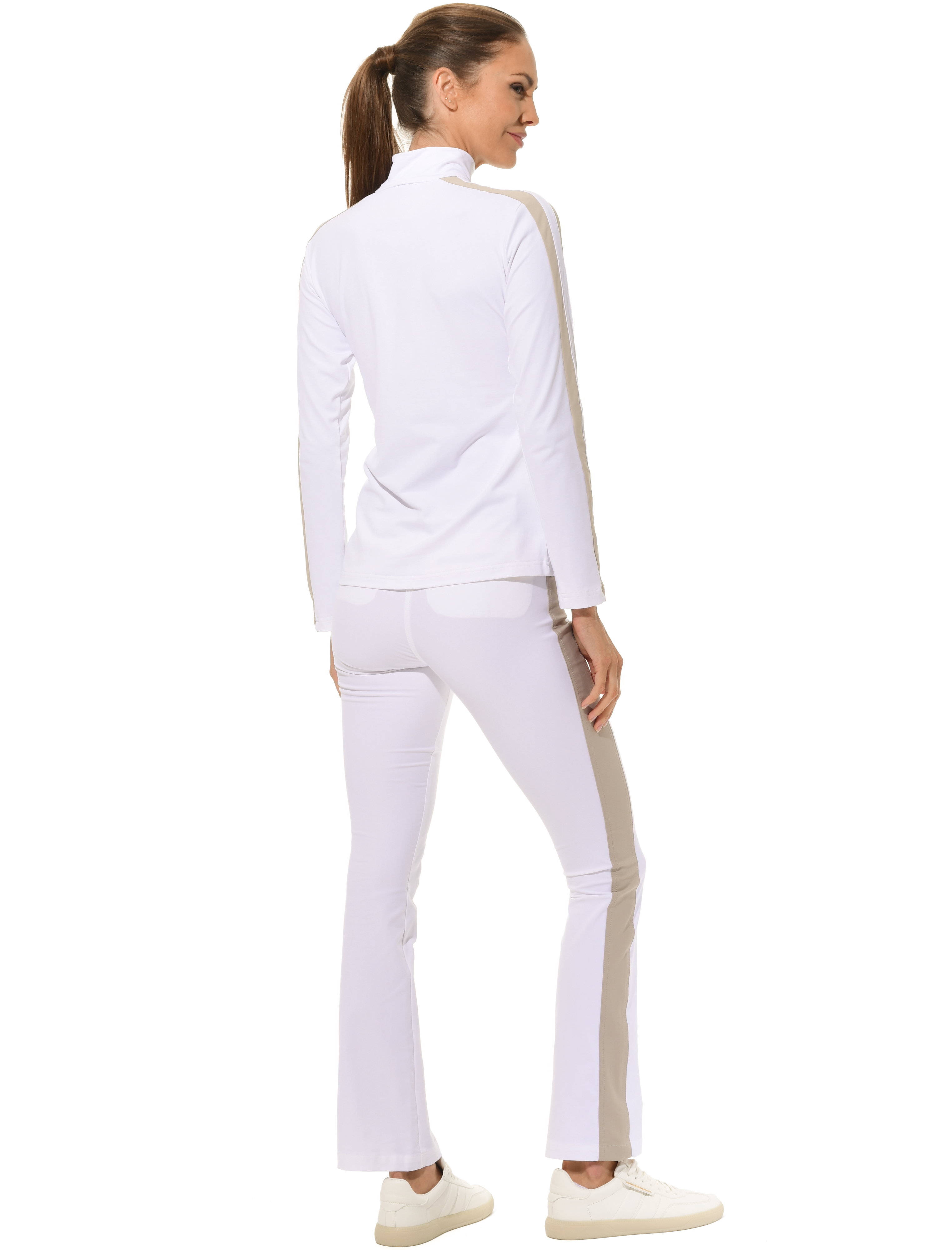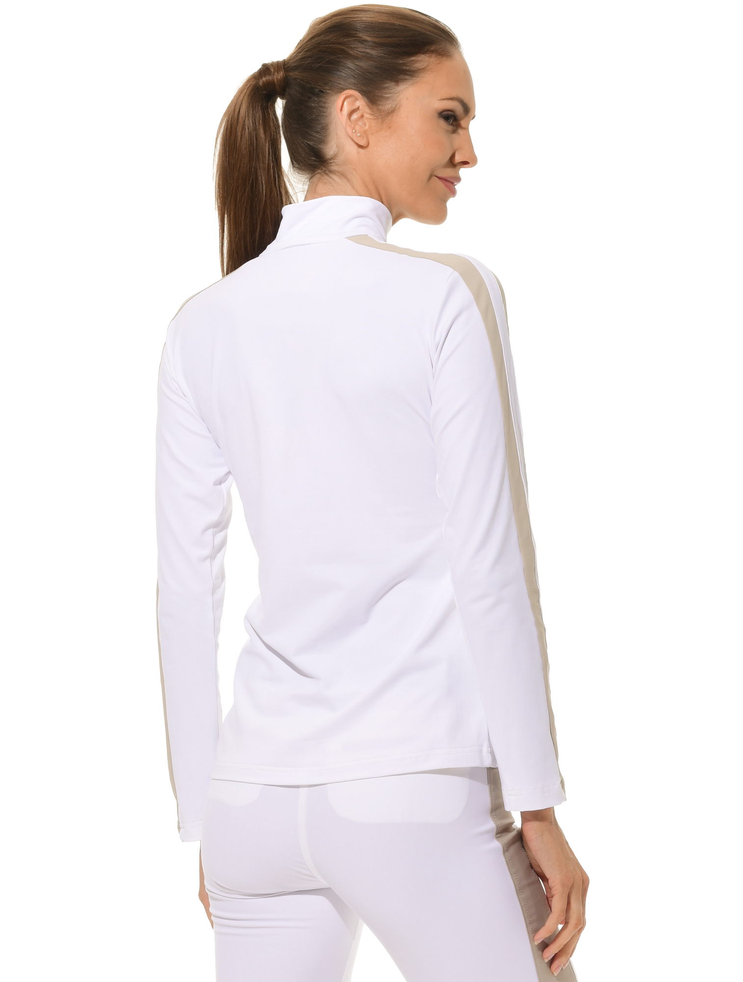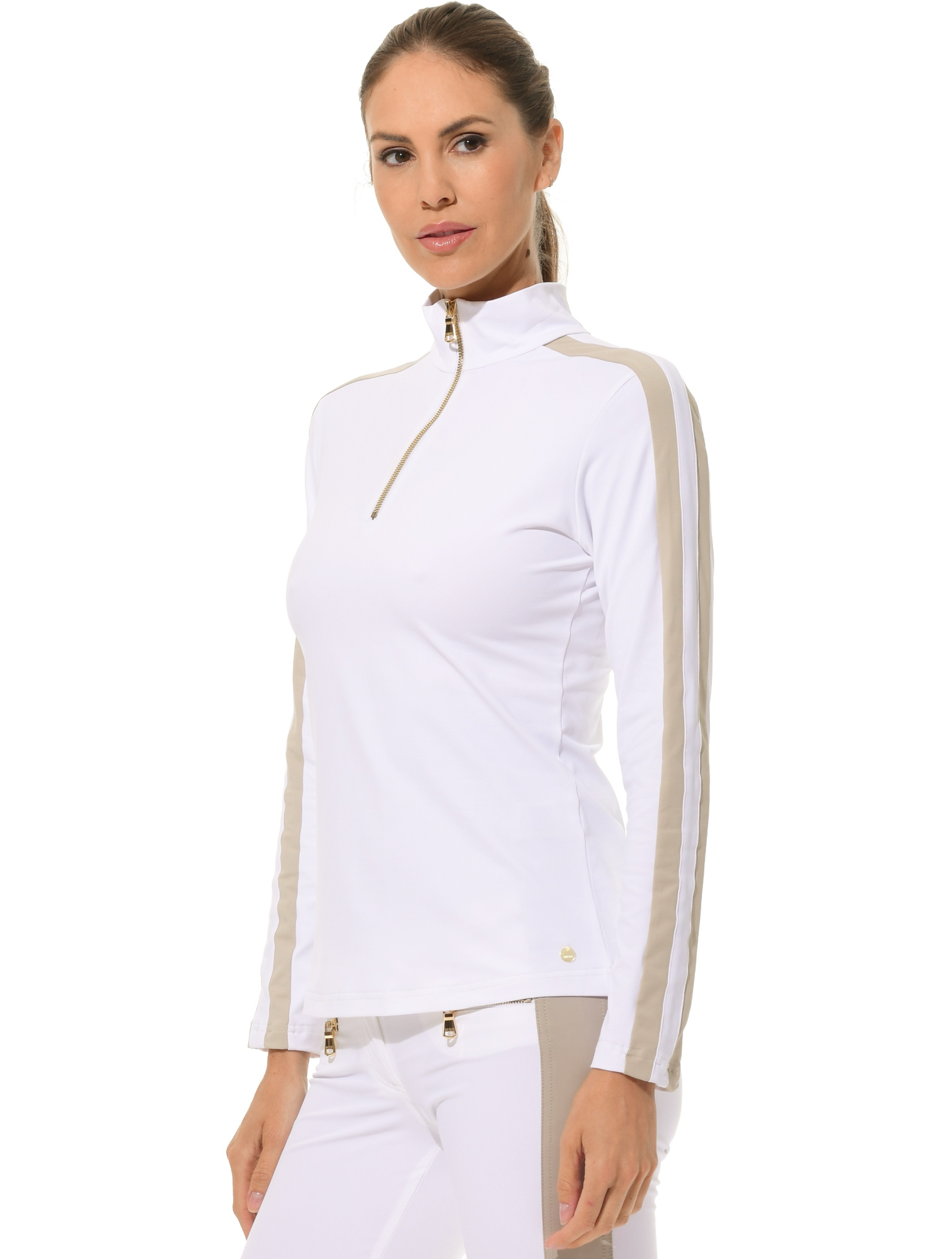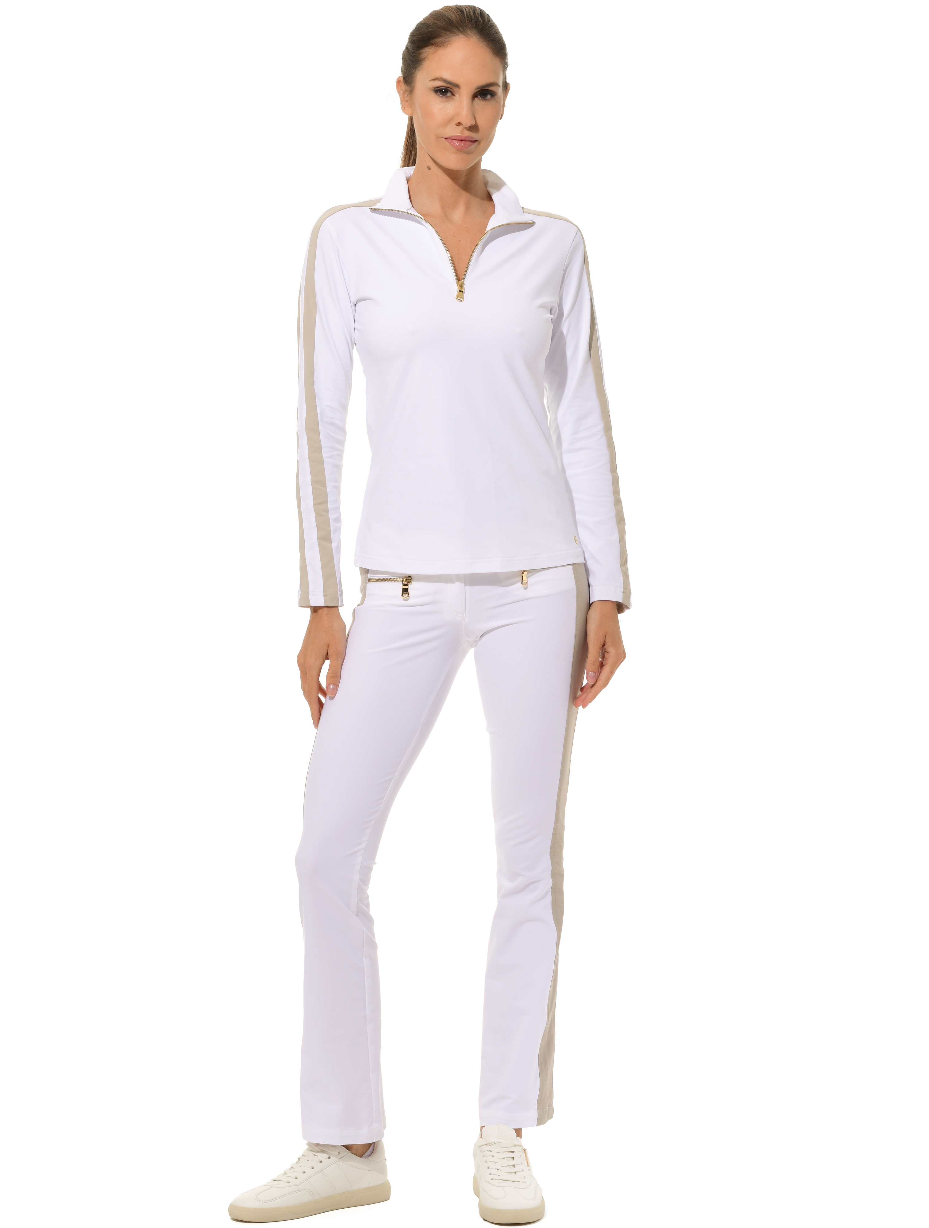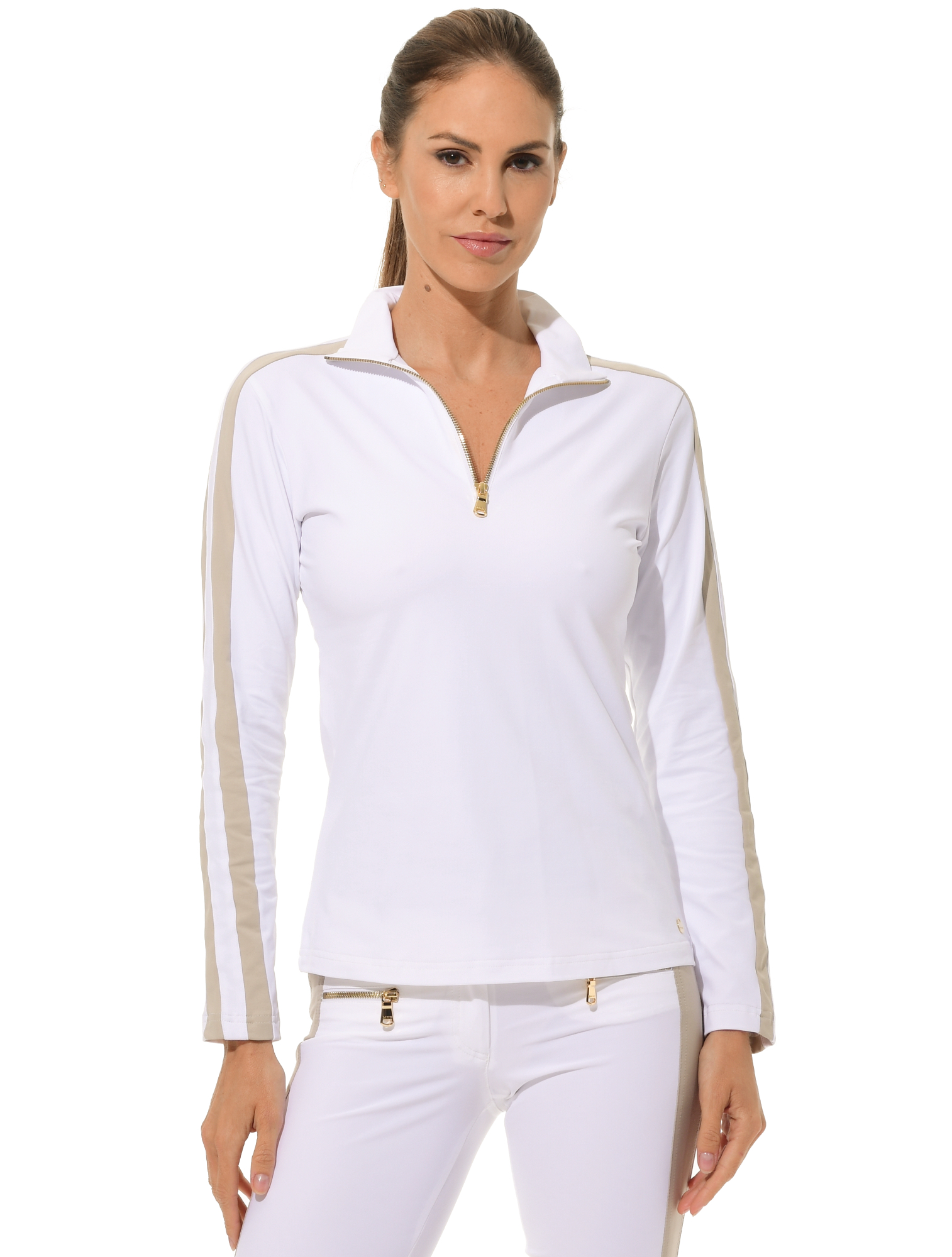 Jersey zip longsleeve white/light taupe