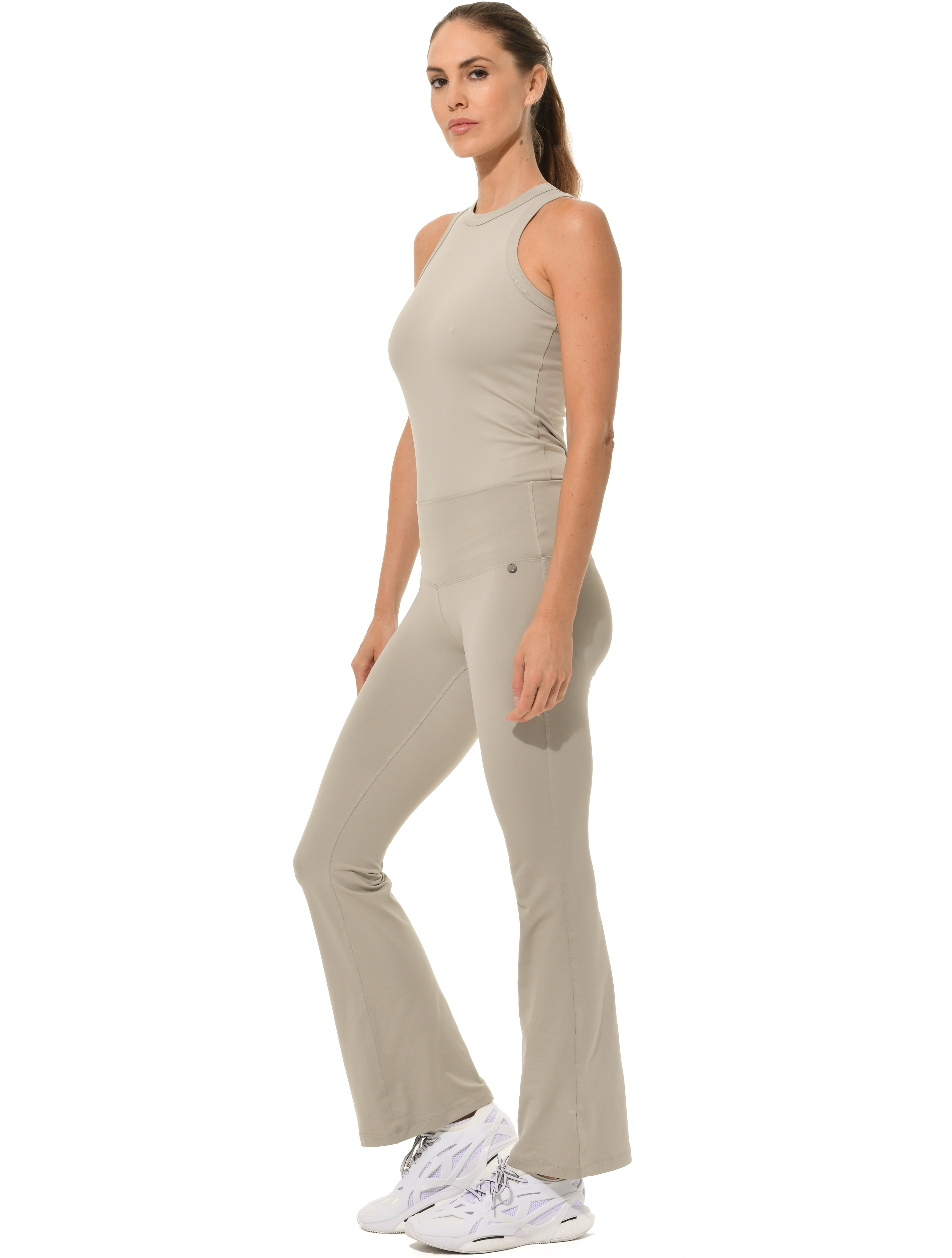 Jersey flared yoga pants sage grey