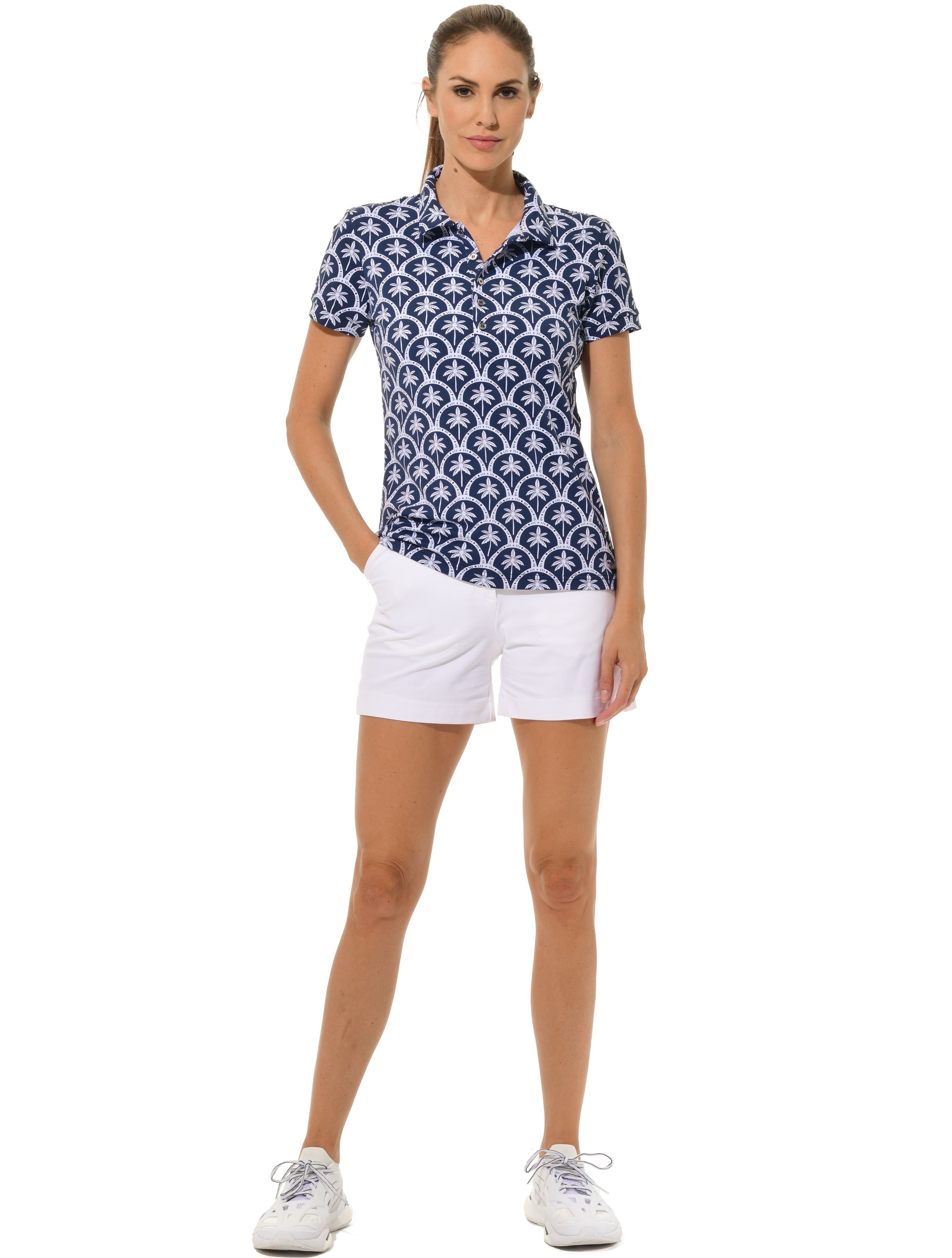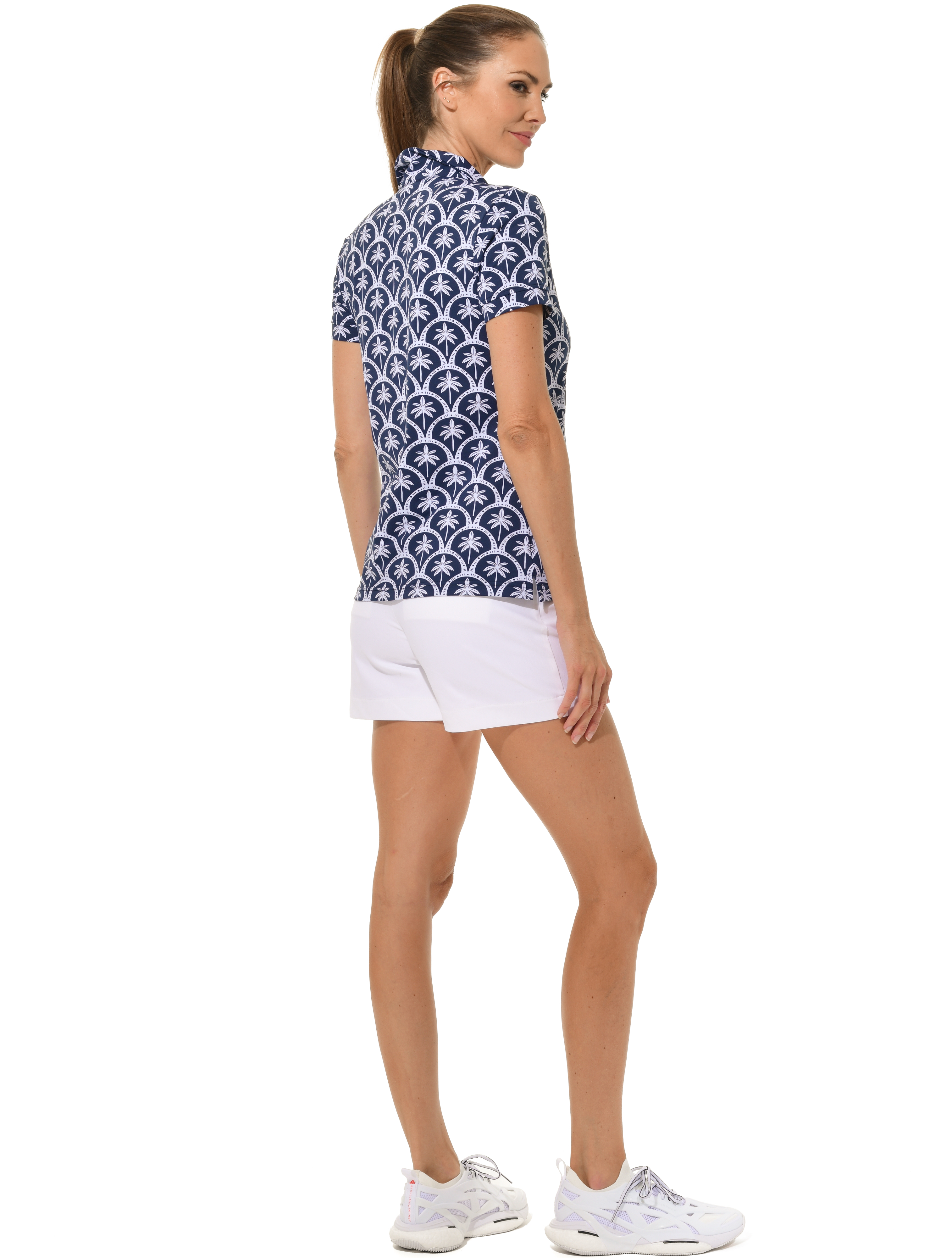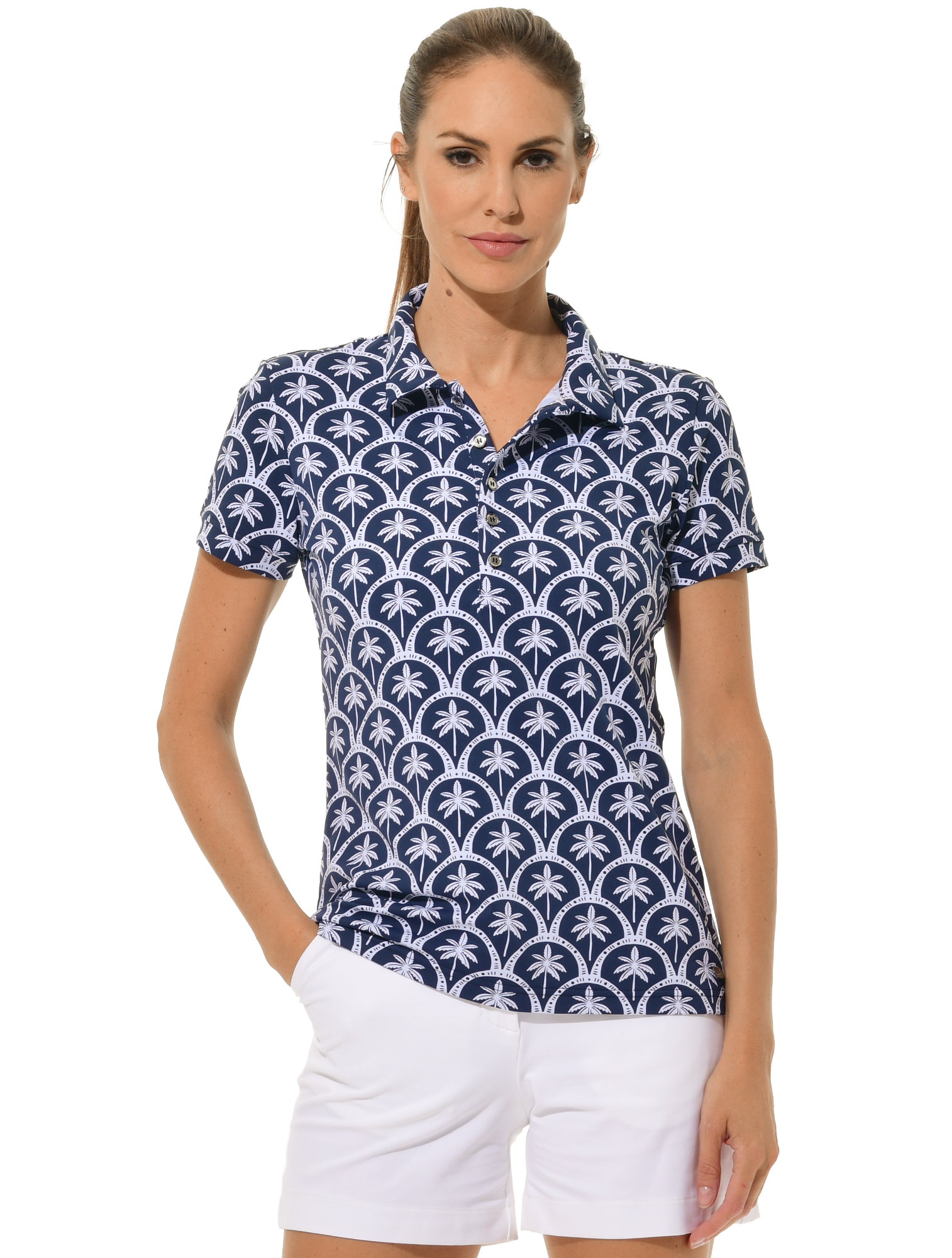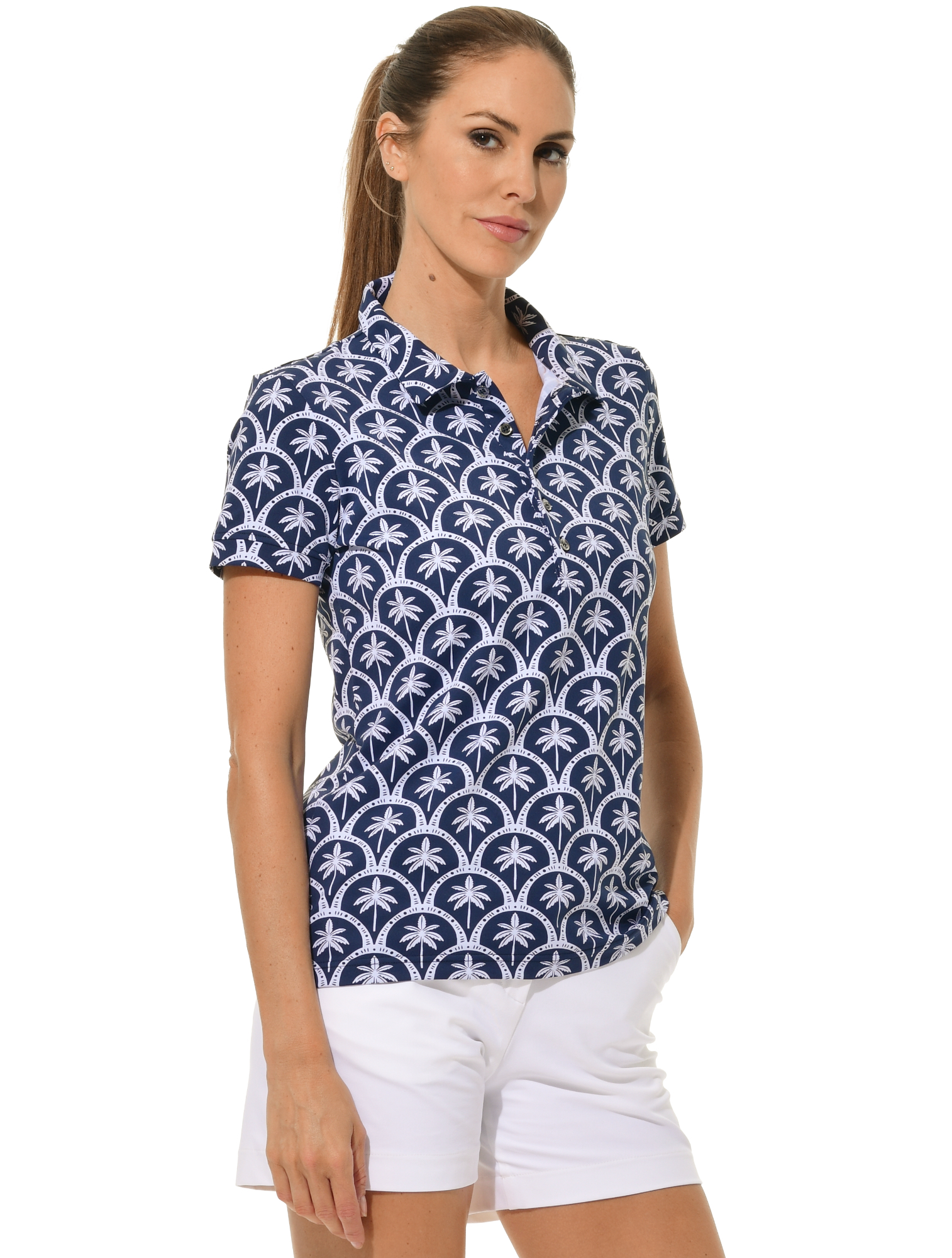 Barbados print golf polo shirt navy
