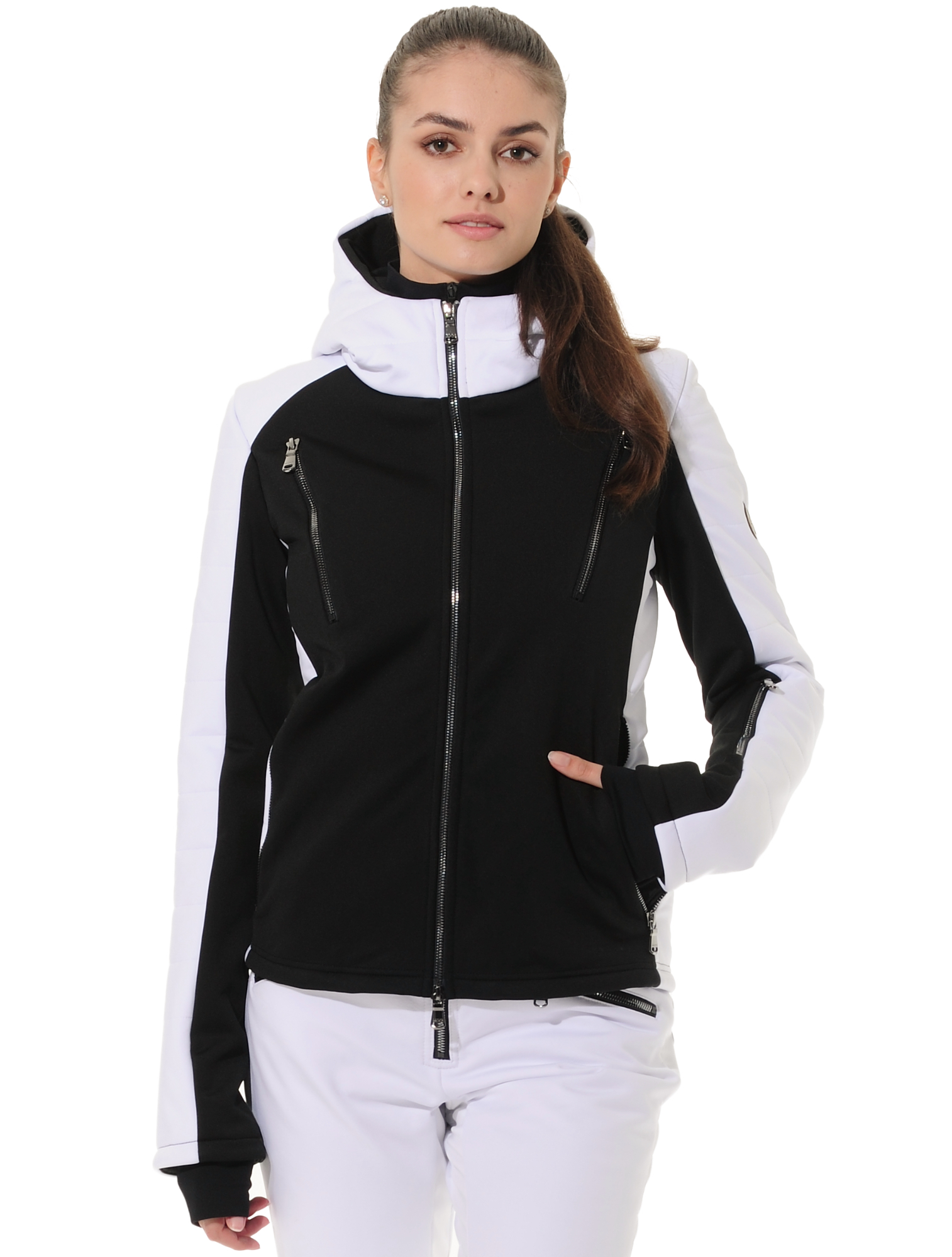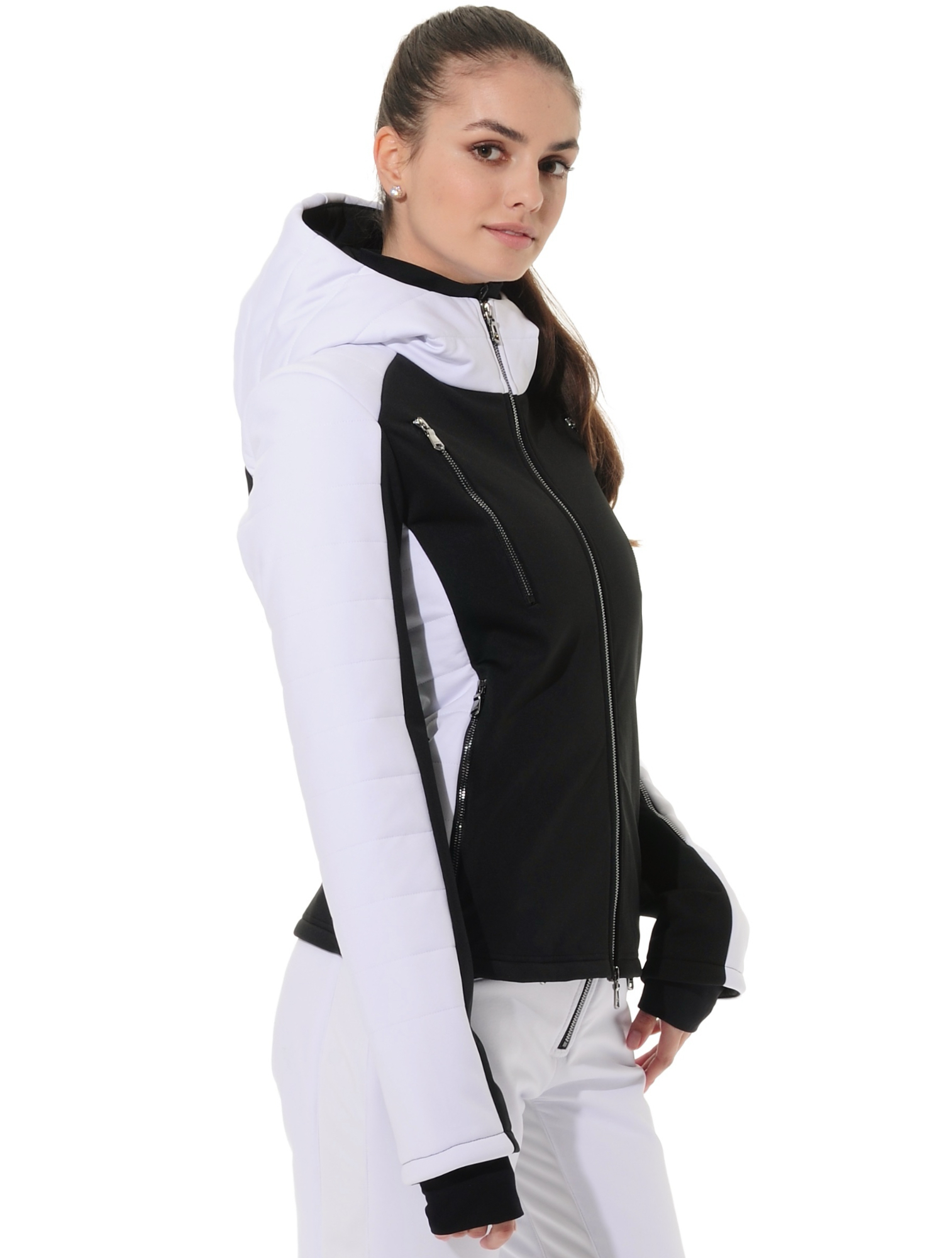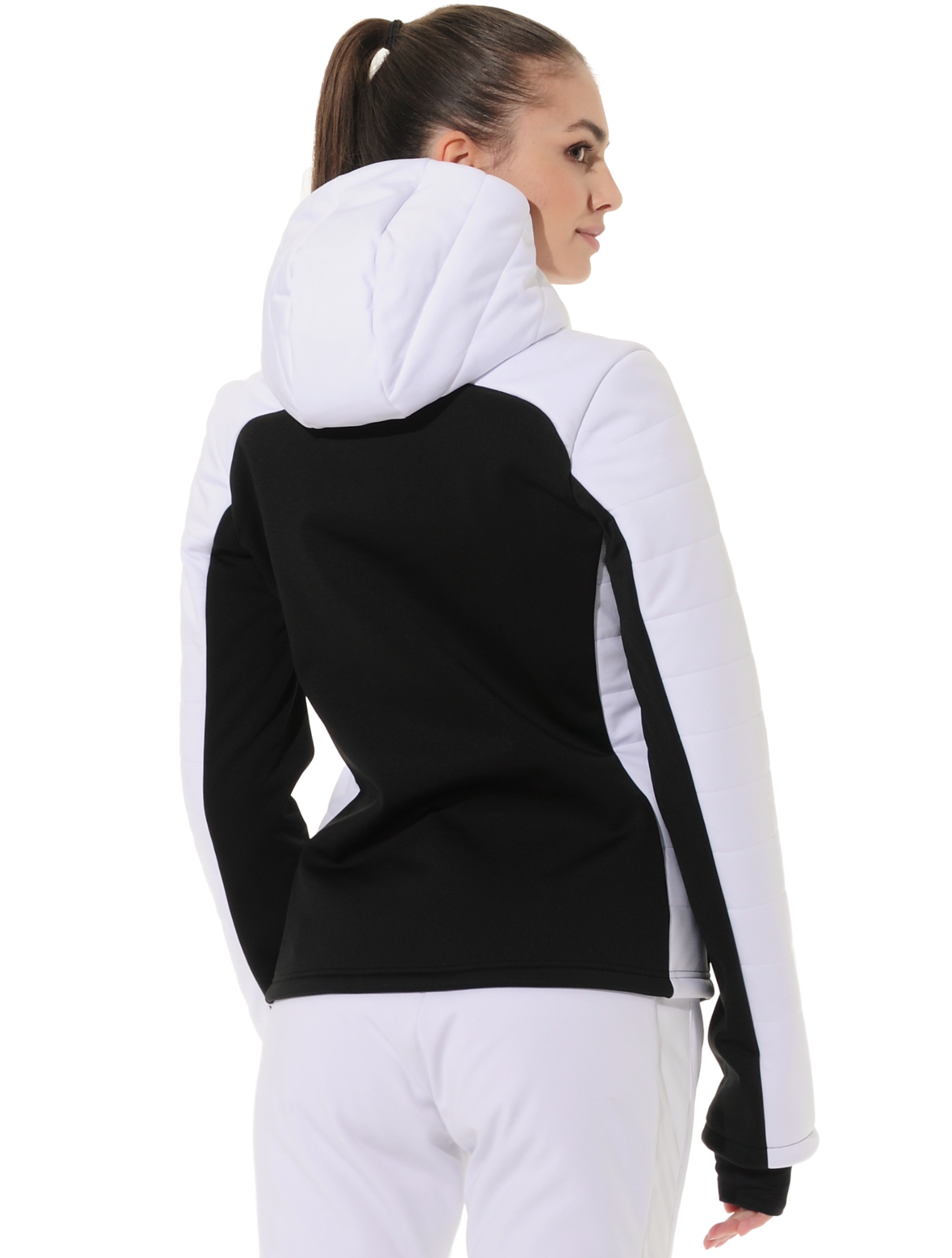 warming, breathable and waterproof power stretch hooded jacket with breathable climate membrane waterproof zips quilted woven insets soft Meryl cuffs 4 zip pockets 70% polyamide 20% polyester 10% elasthane length 62 cm / 24" (EU size 36 / US size 4) |